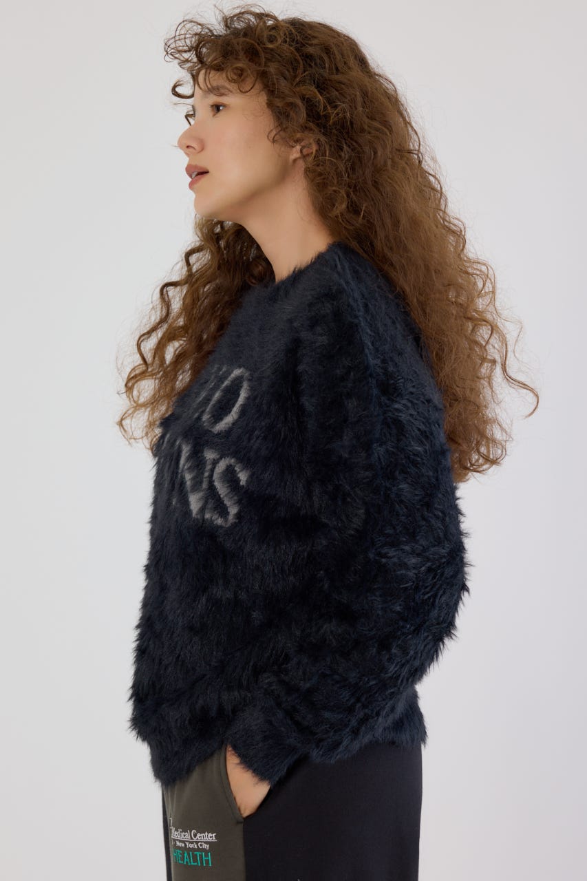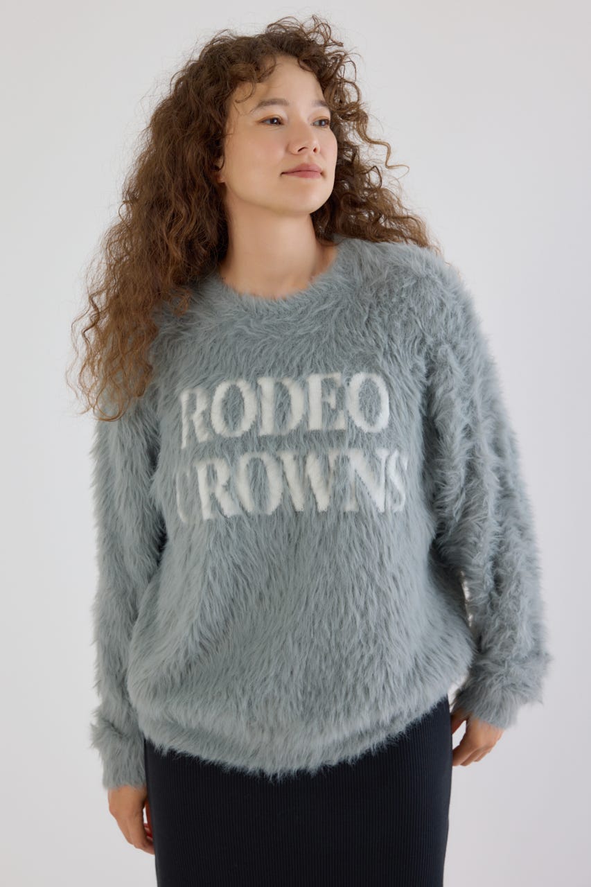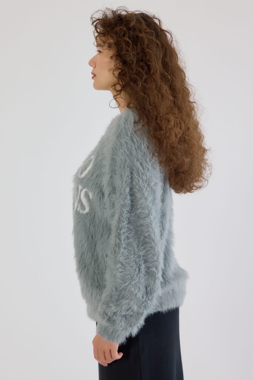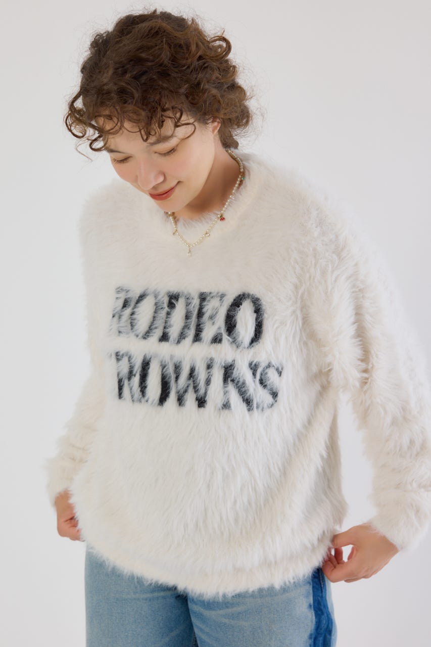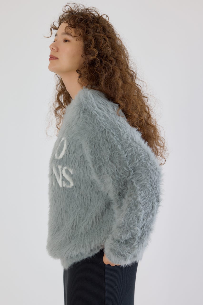 柔らかく着心地の良いシャギーニットでロゴを表現した一着。