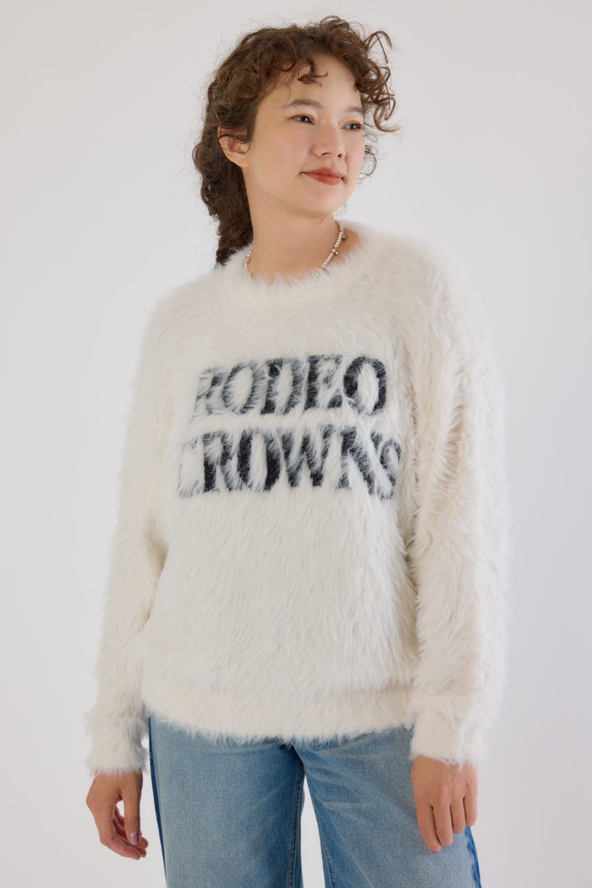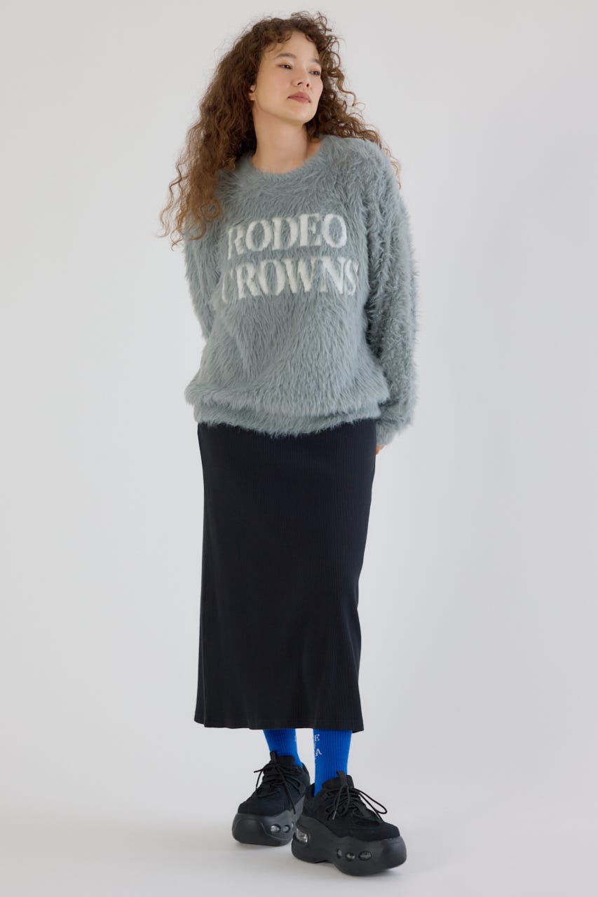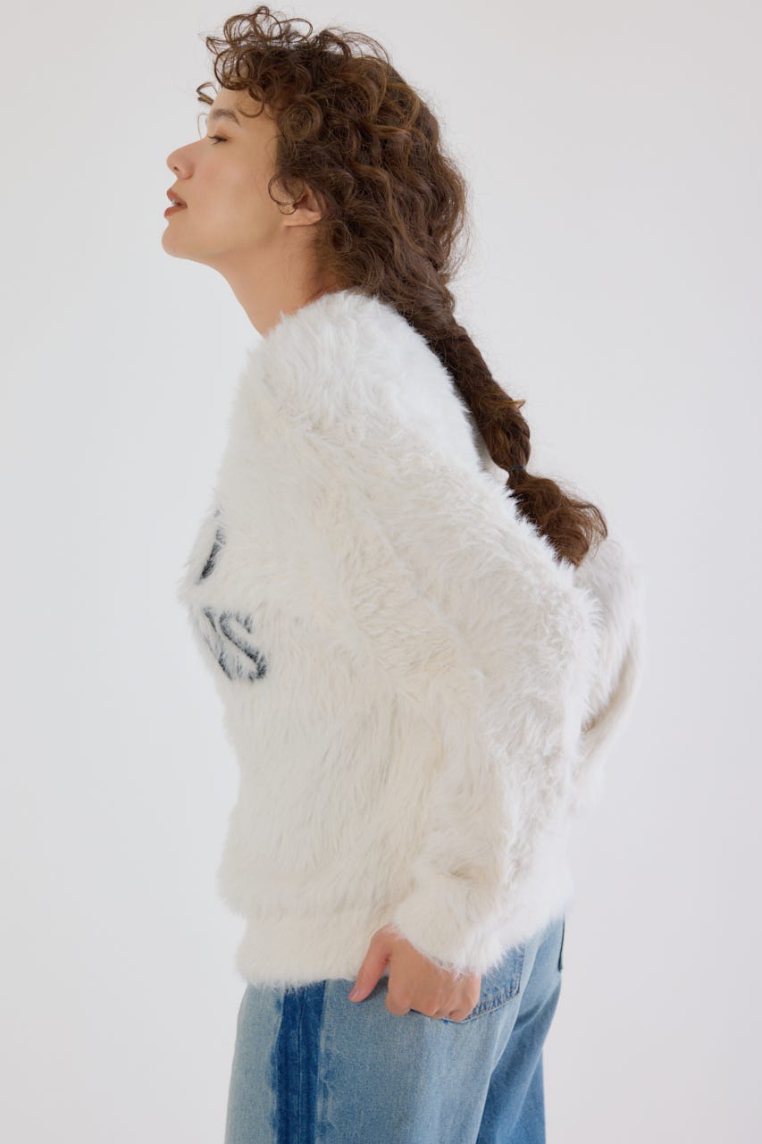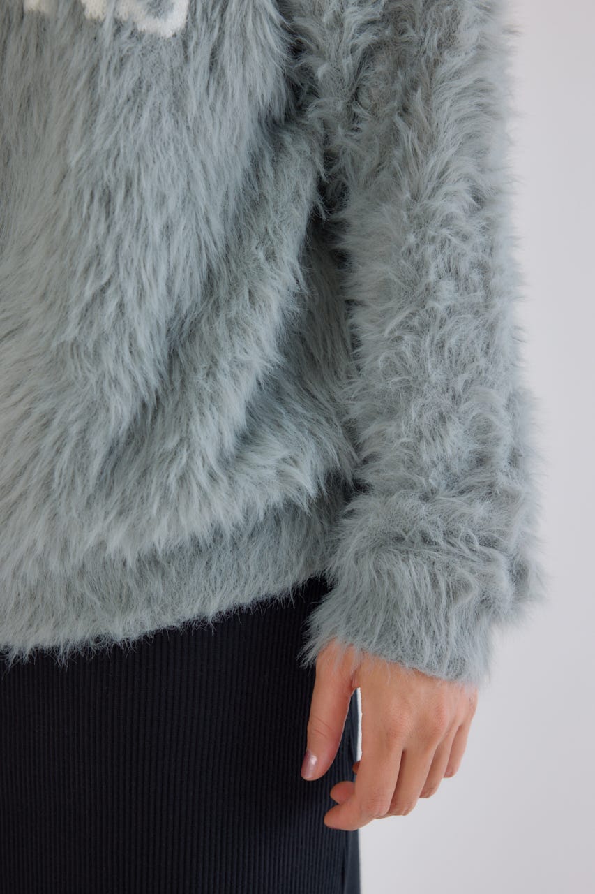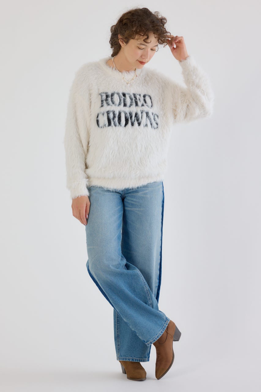 柔らかく着心地の良いシャギーニットでロゴを表現した一着。