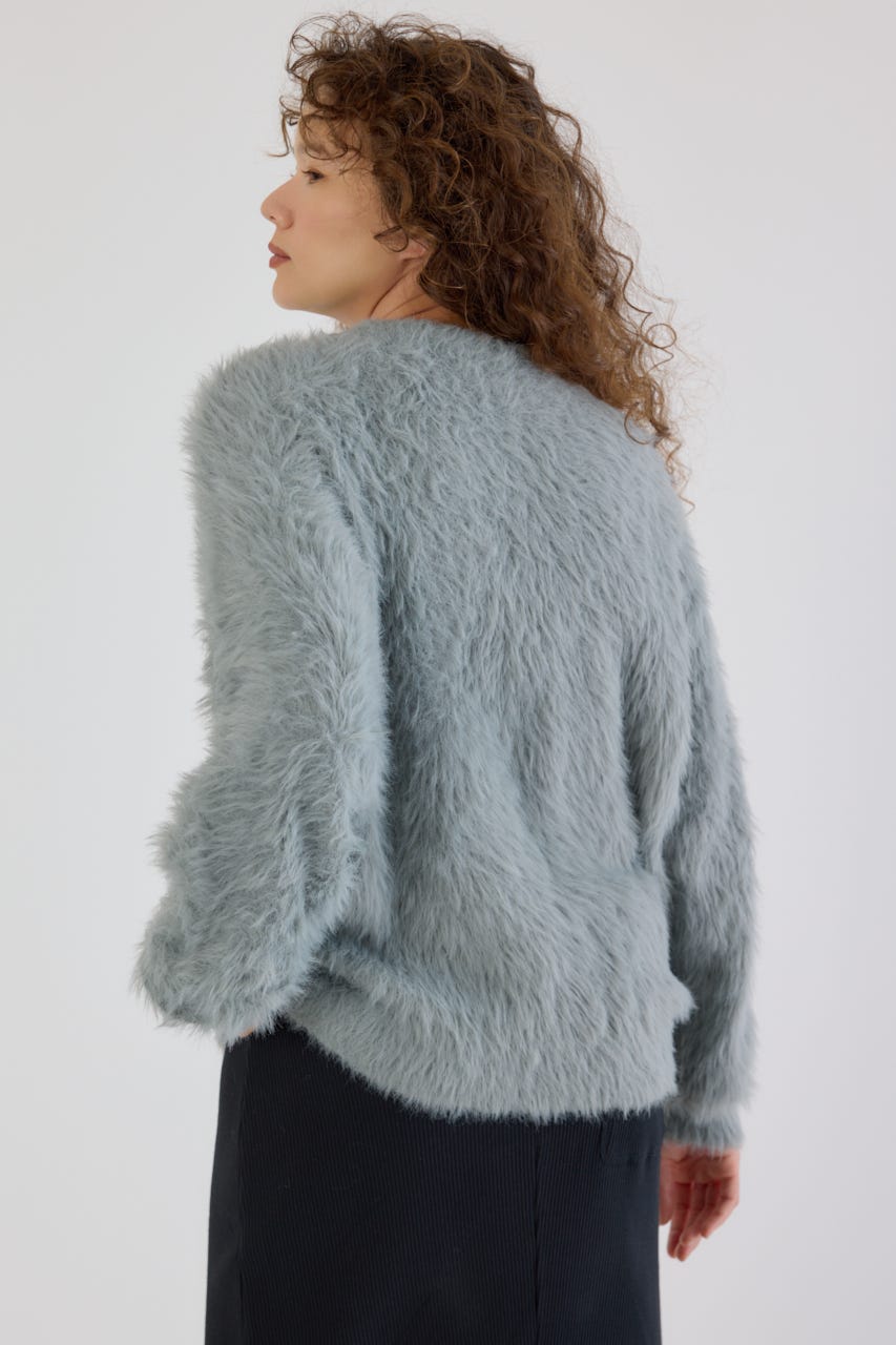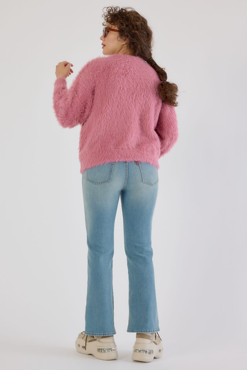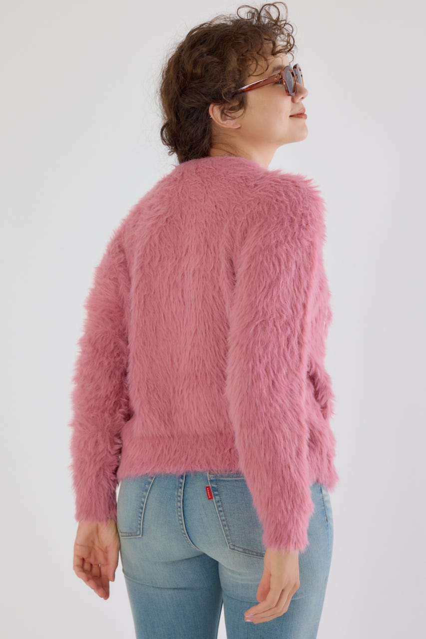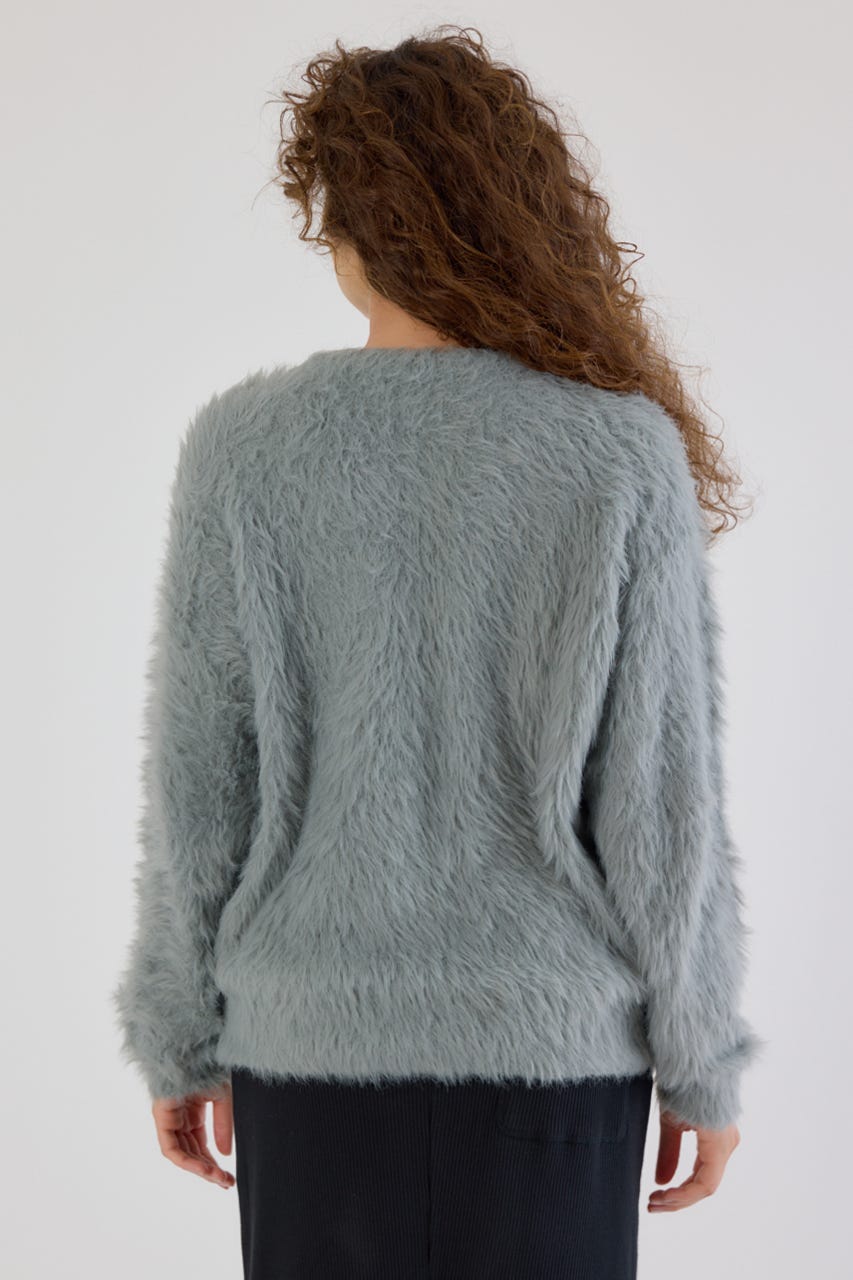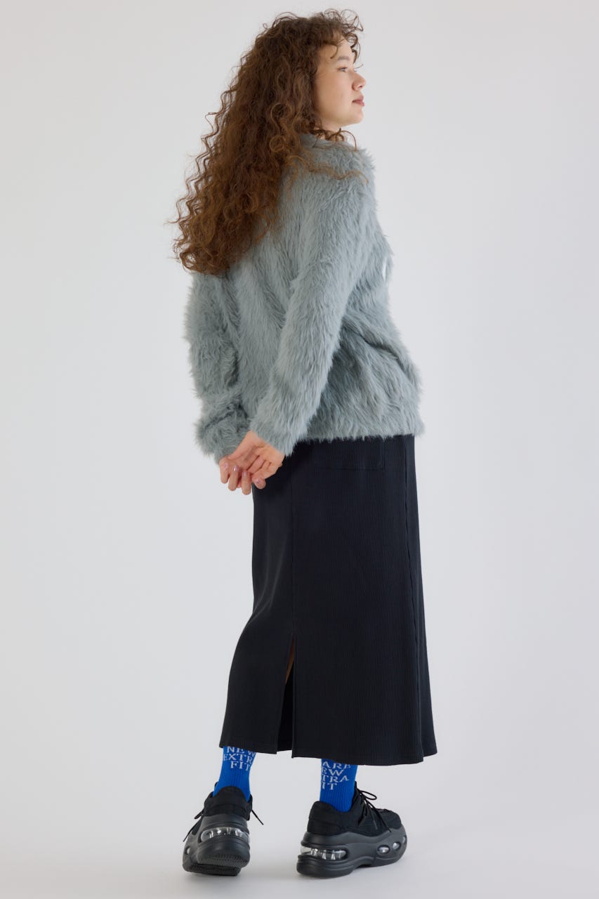 柔らかく着心地の良いシャギーニットでロゴを表現した一着。