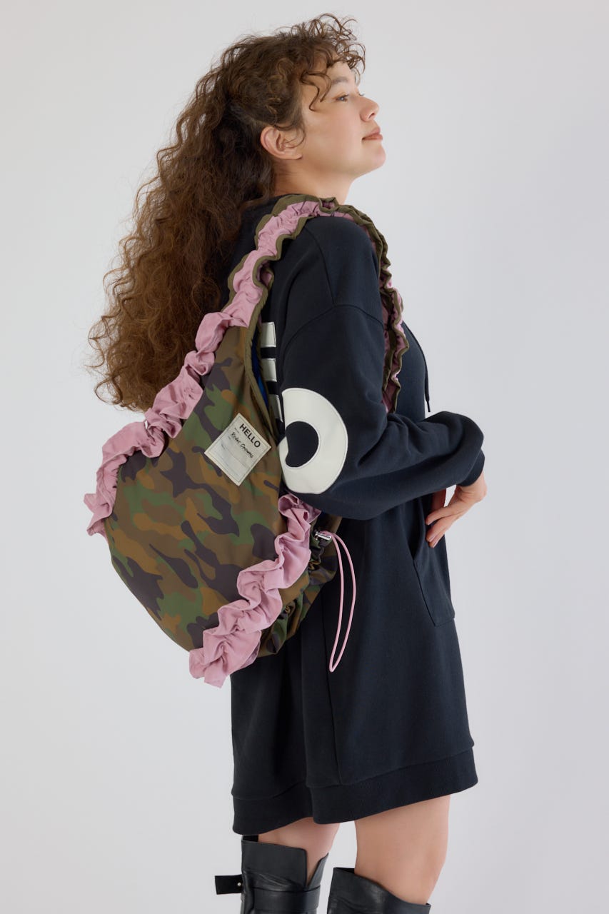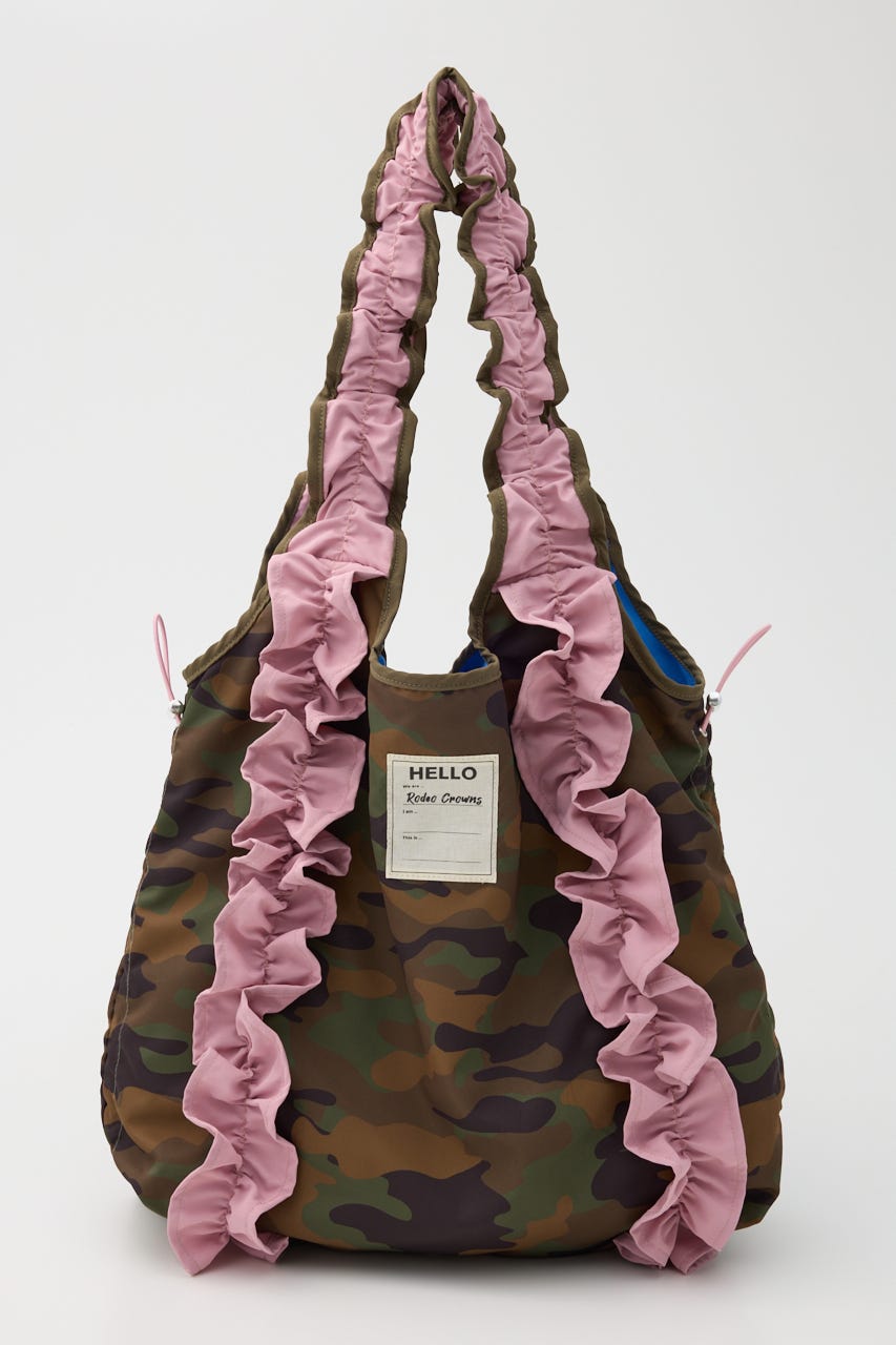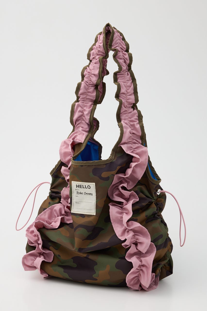 レオパード柄とカモフラージュ柄にフリルが重なった甘辛ミックスなデザイン。