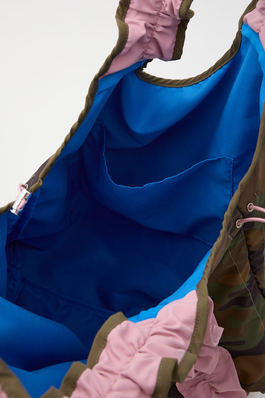 くしゅくしゅとしたハンドルがポイントで、甘くなりすぎないプリント柄が、コーディネートをワンランクアップしてくれます。