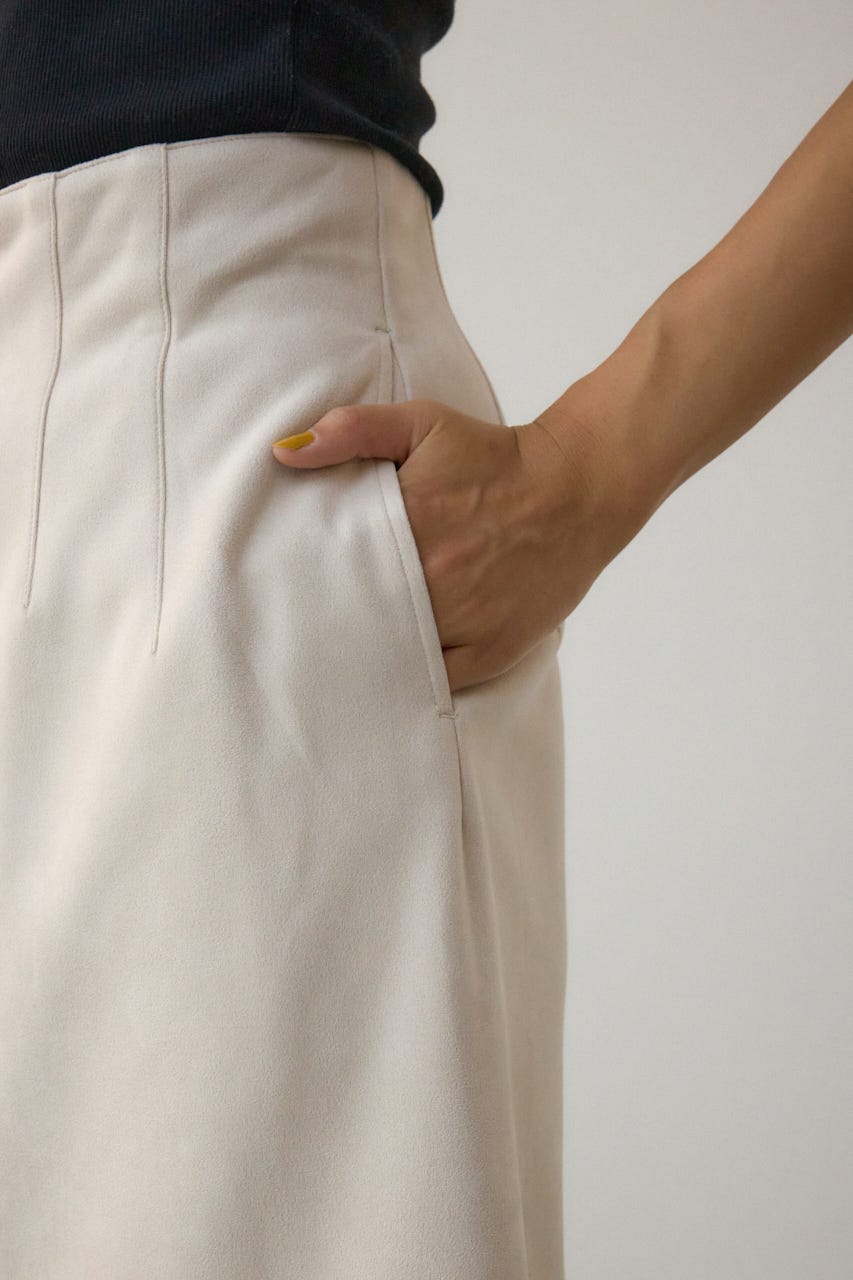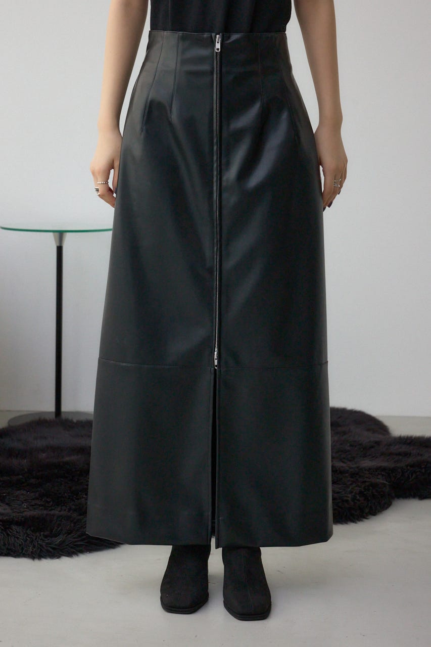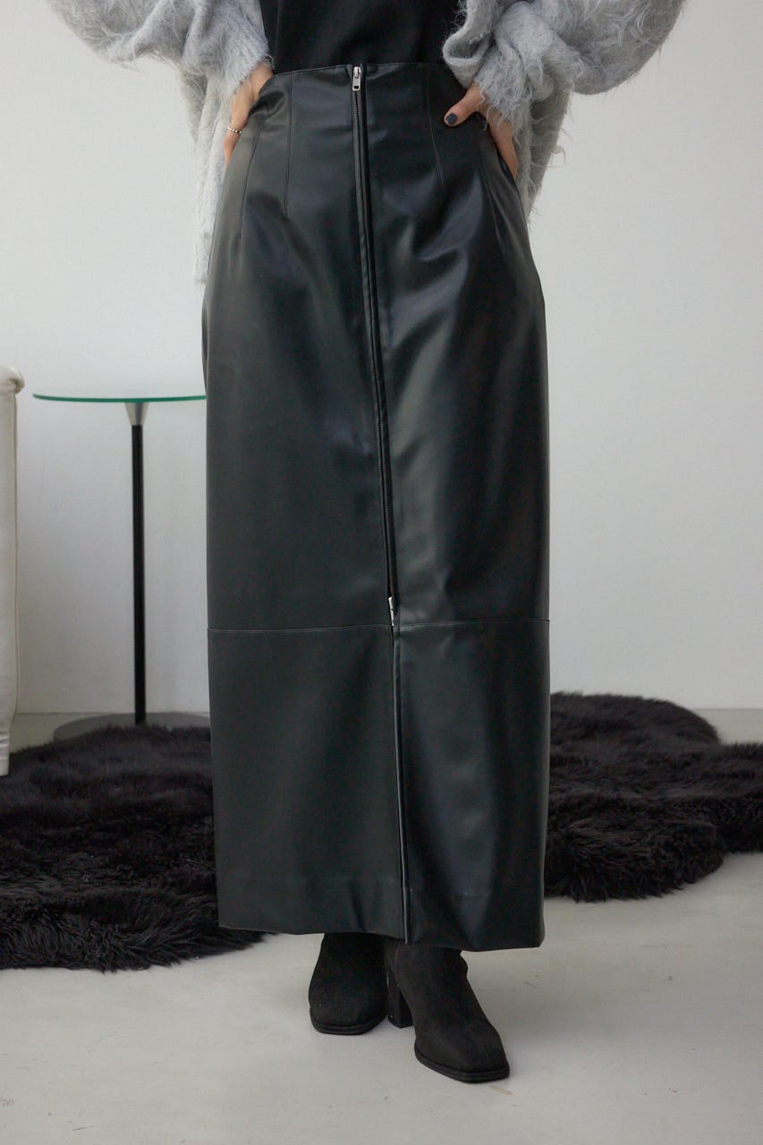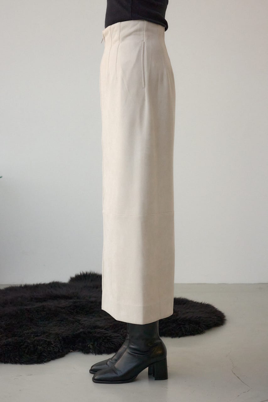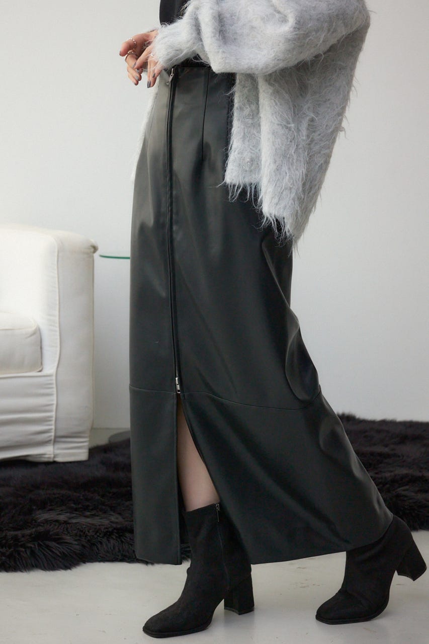 フェイクレザー/スエードの表情×フロントジップで、縦ラインが際立つ大人のタイトスカート。