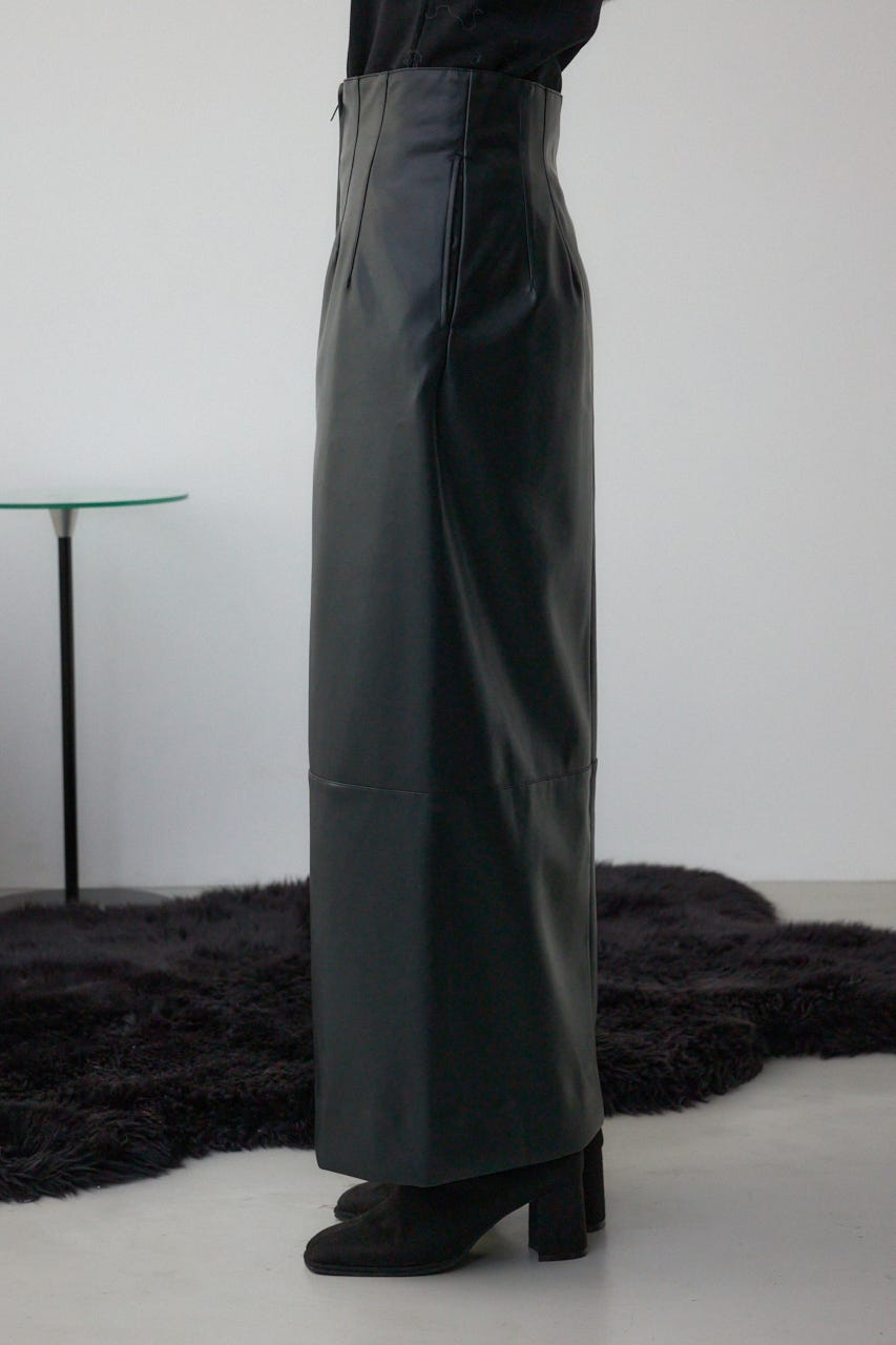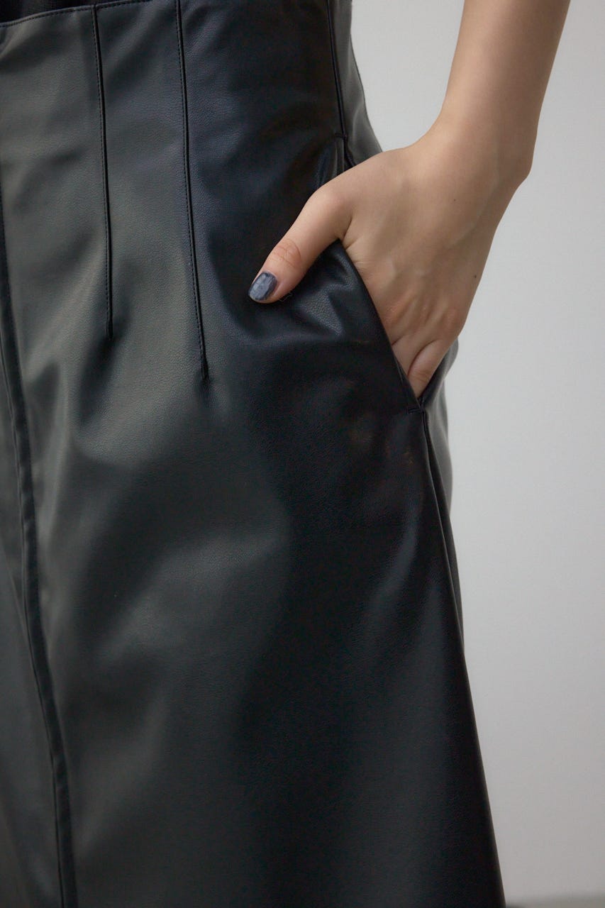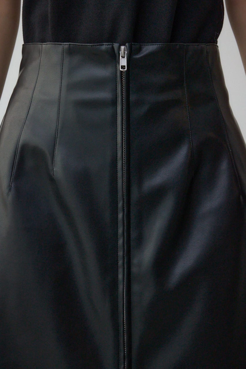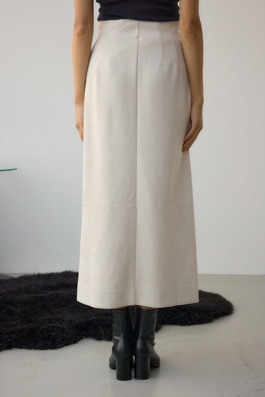 フェイクレザー/スエードの表情×フロントジップで、縦ラインが際立つ大人のタイトスカート。