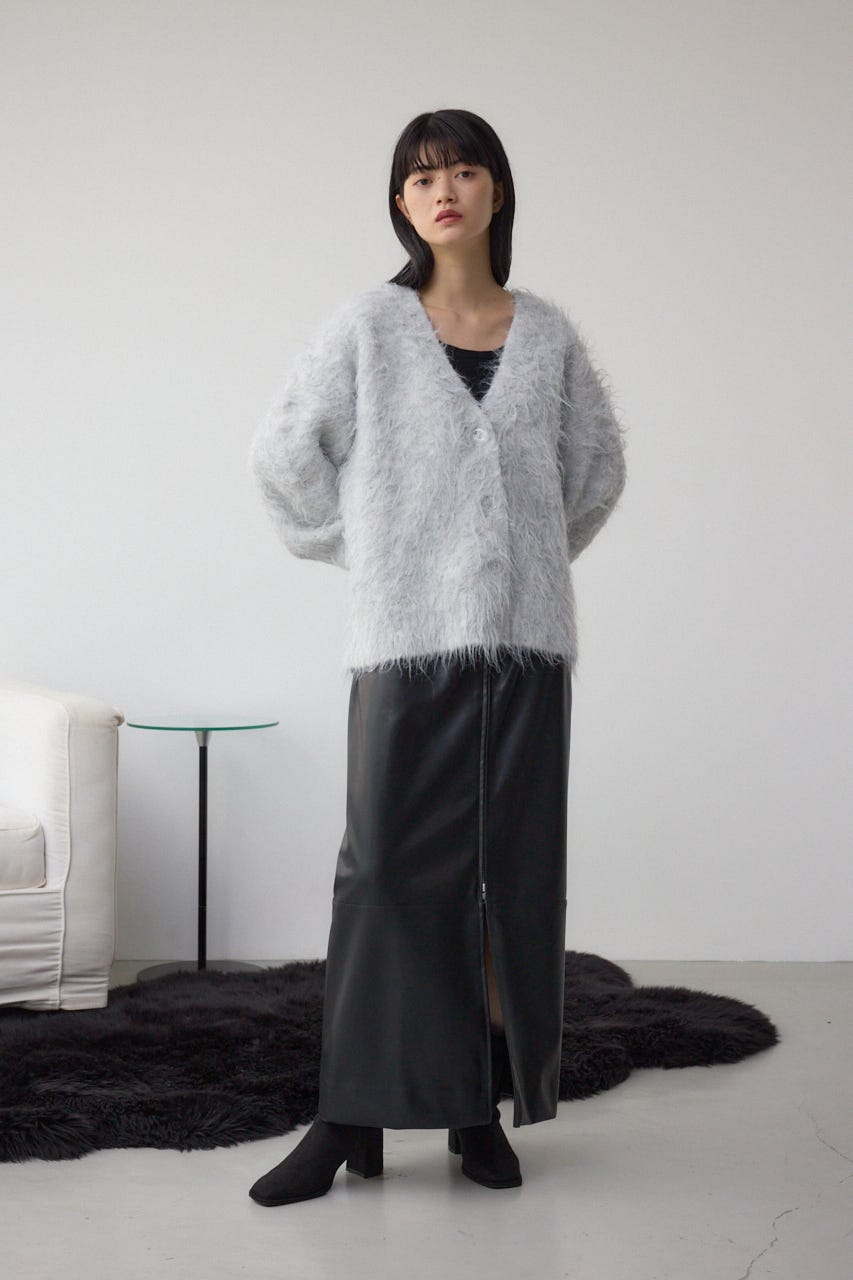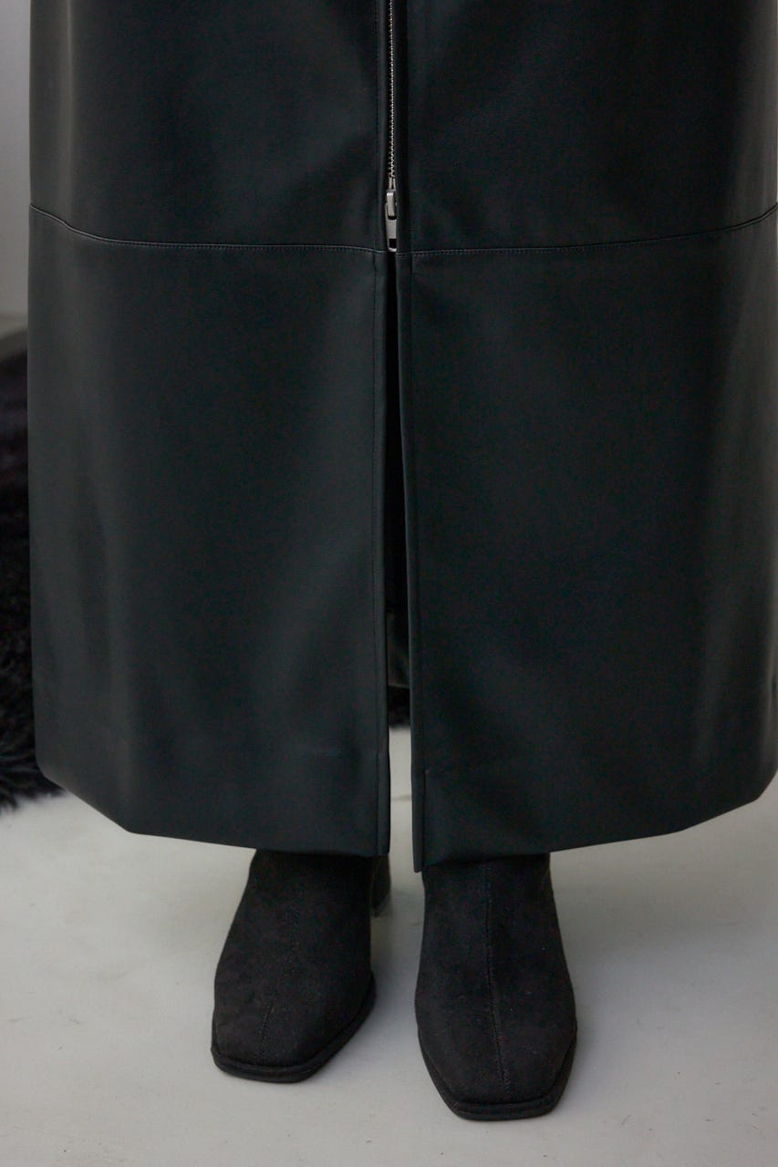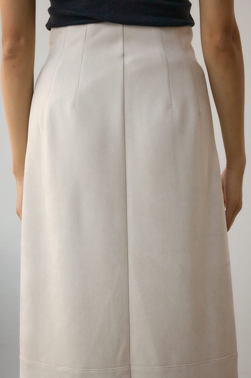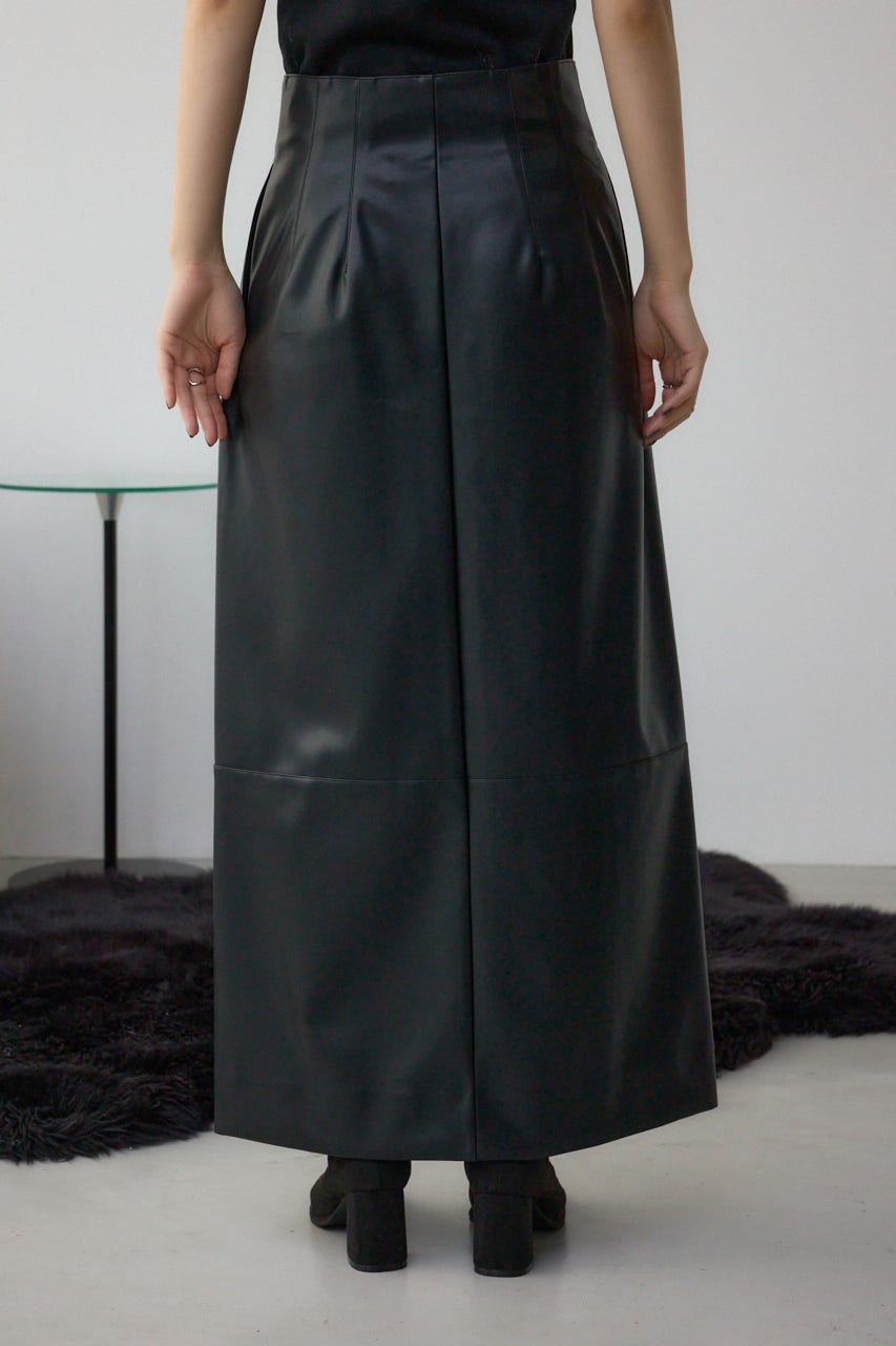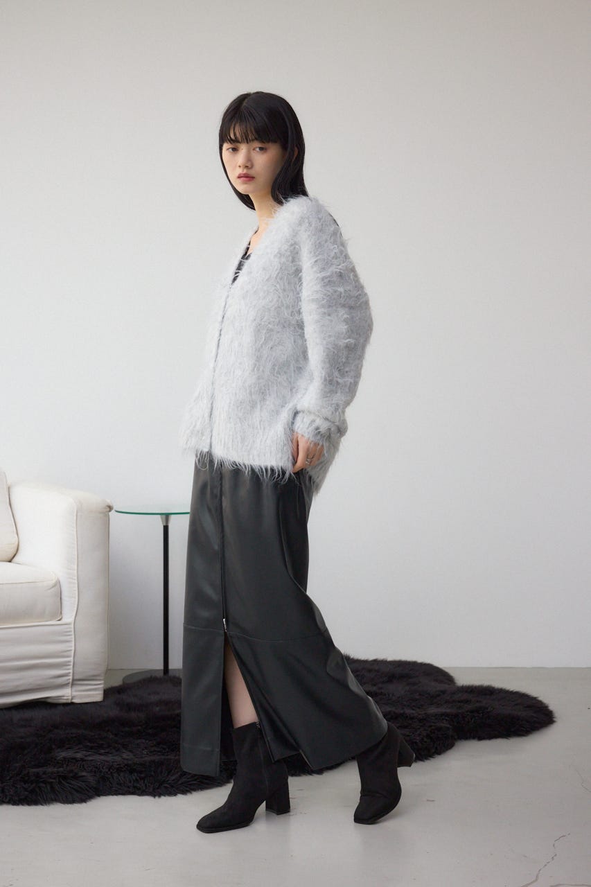 フェイクレザー/スエードの表情×フロントジップで、縦ラインが際立つ大人のタイトスカート。