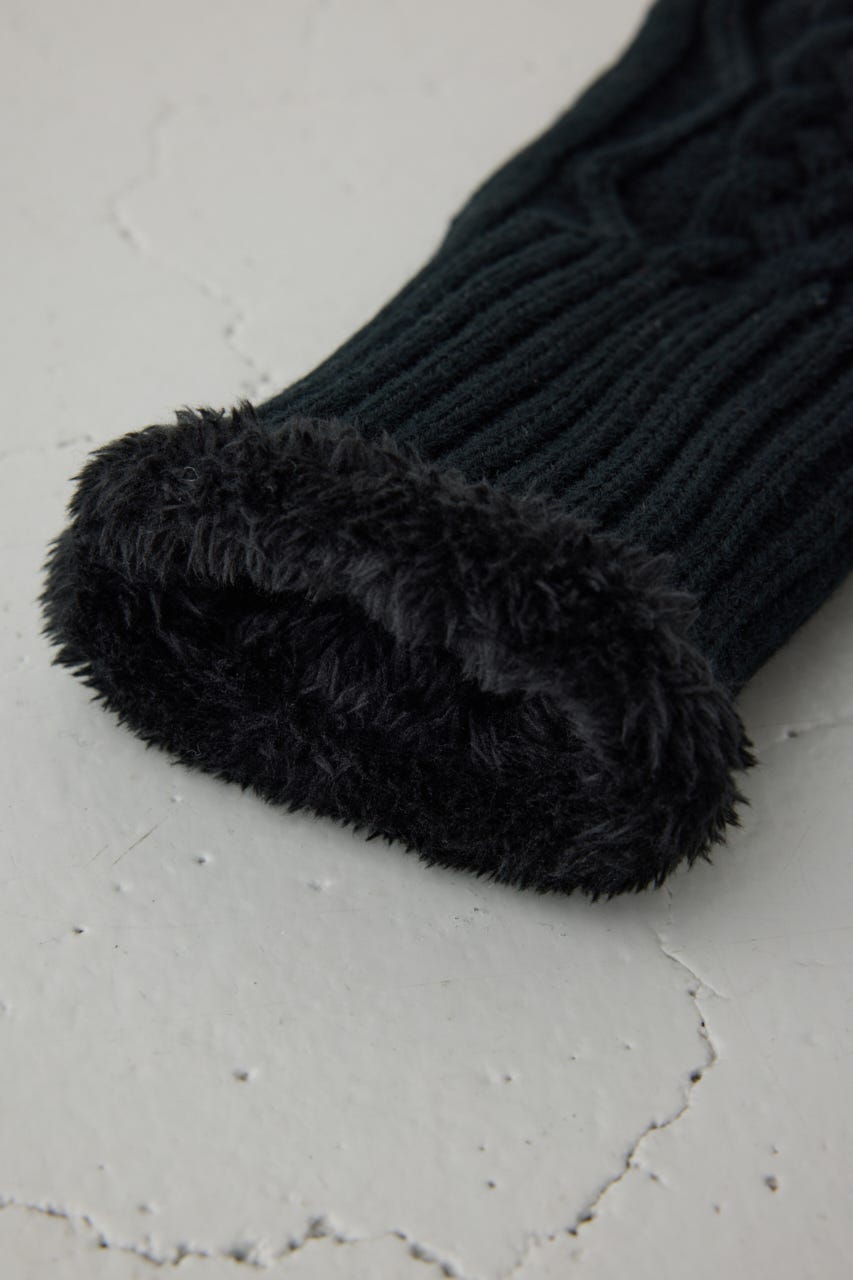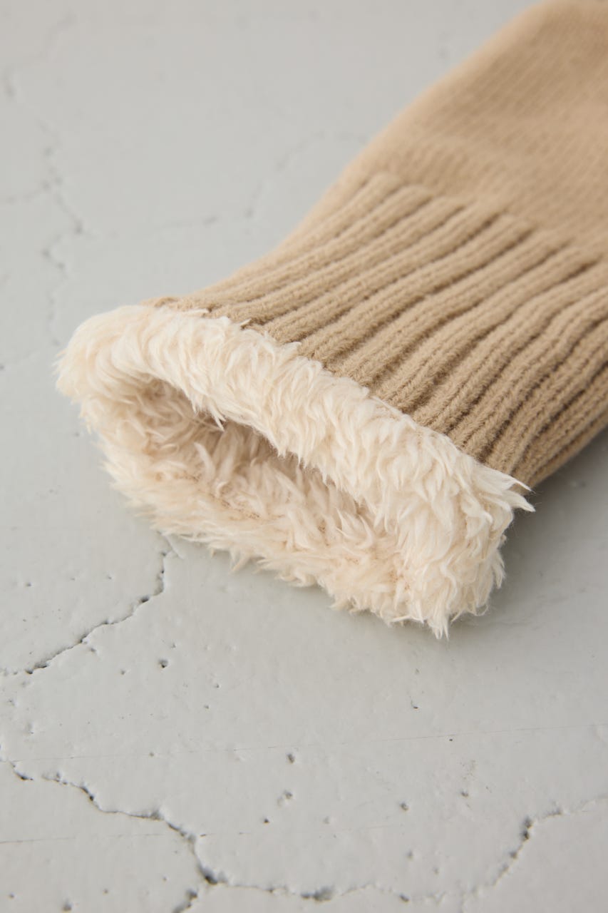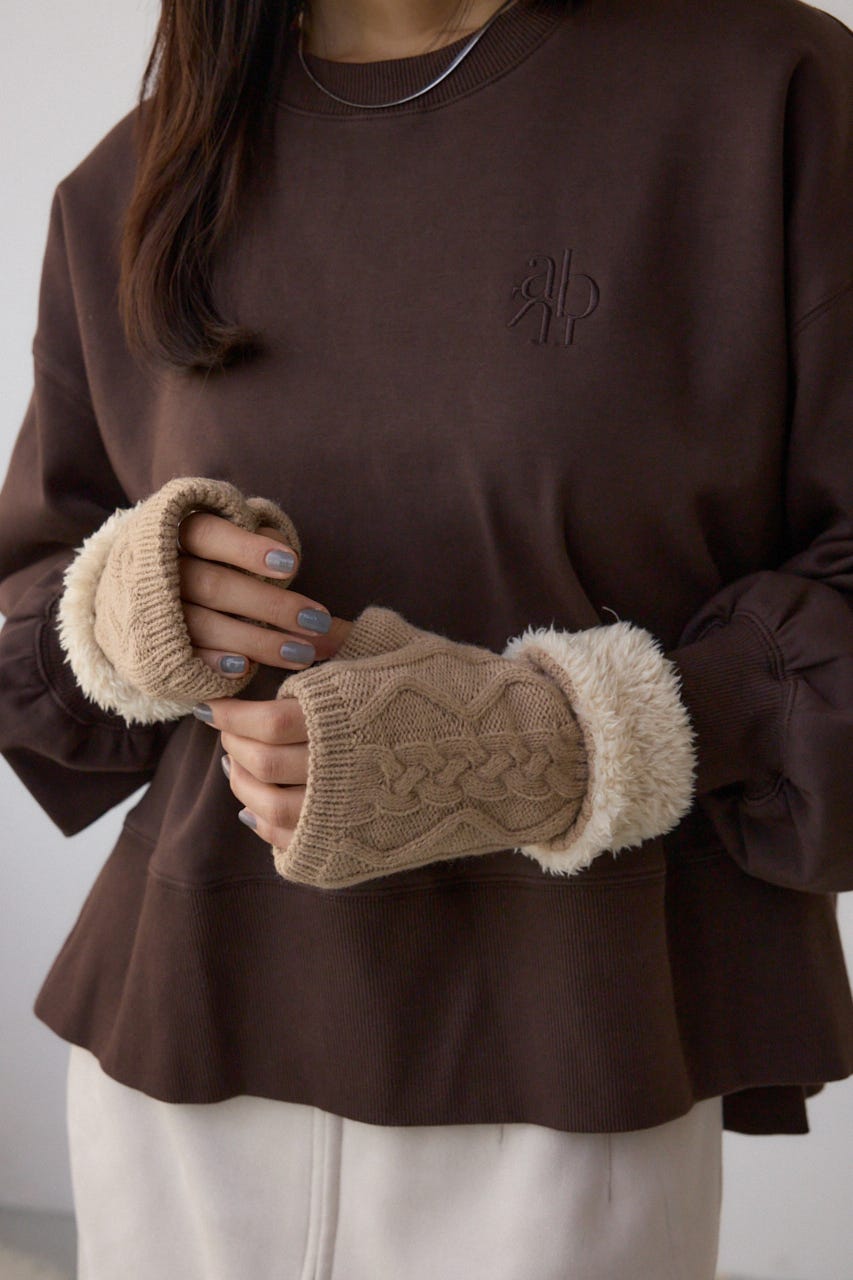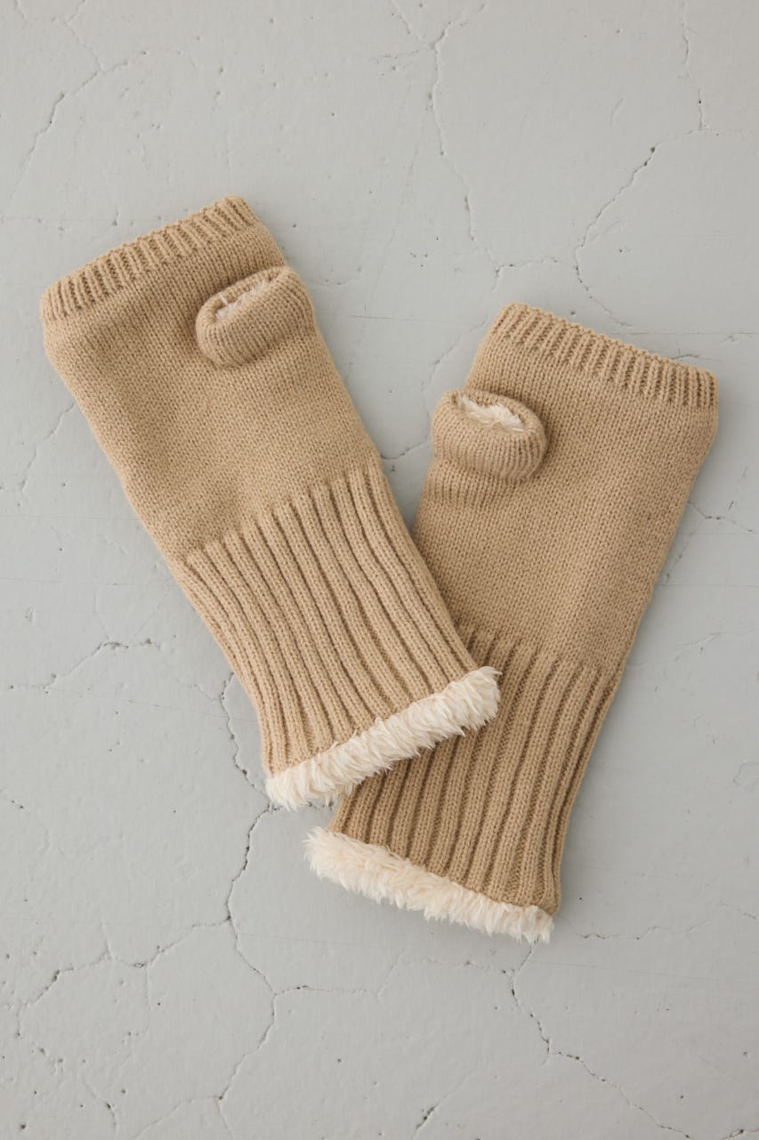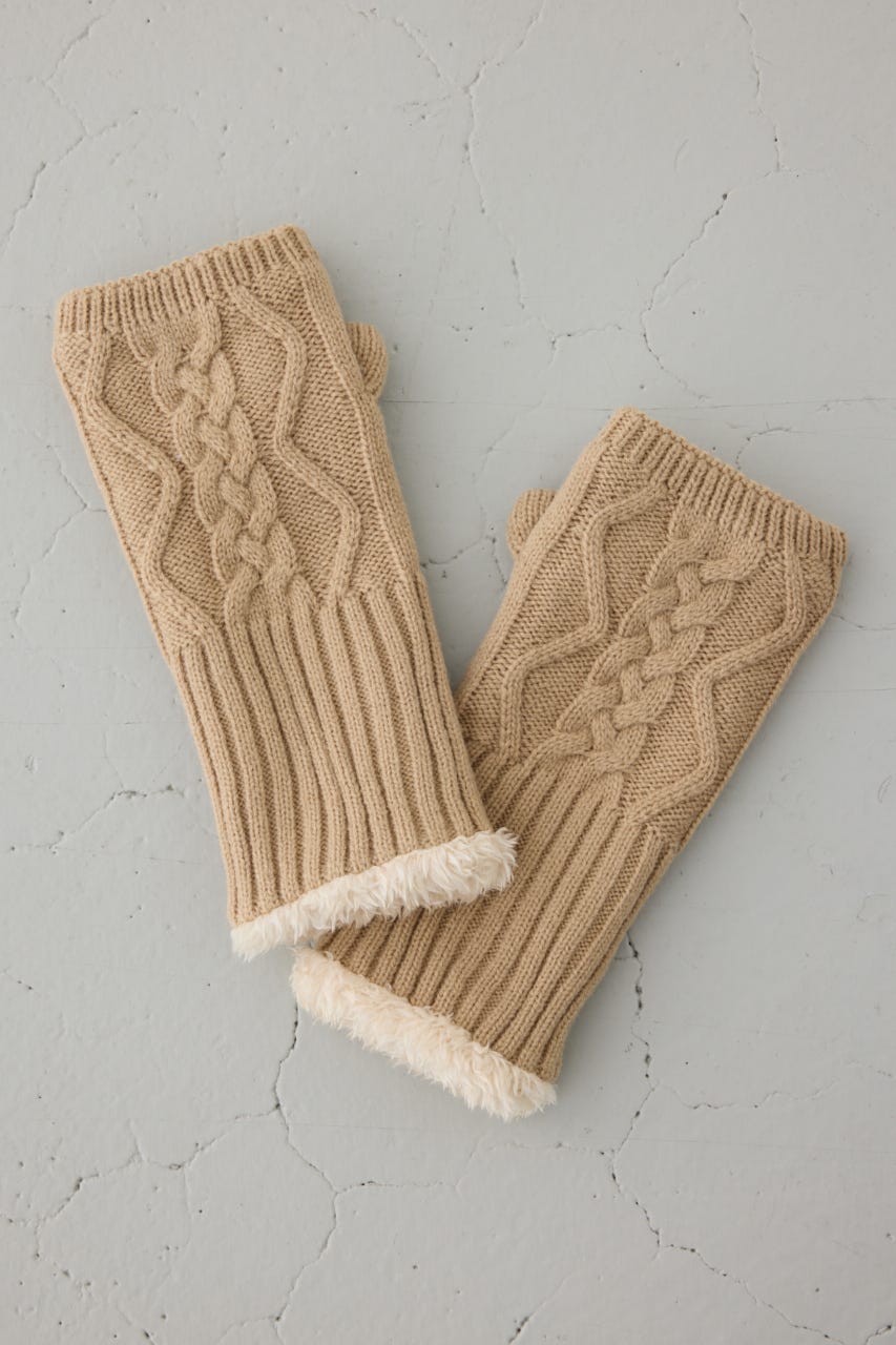 ファーとニットの編地切り替えがポイントの手袋です。