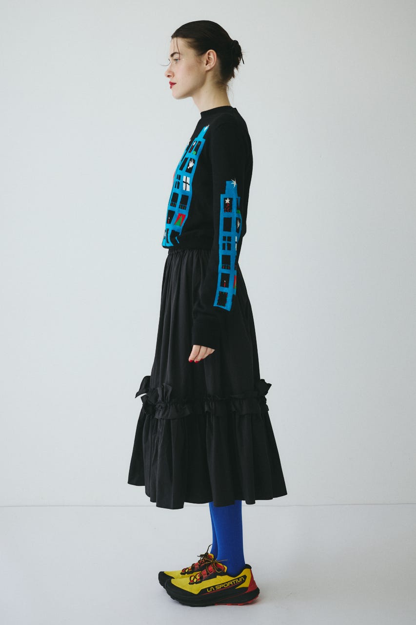 軽やかな素材感で、着心地はやわらかく、1枚で主役になるニットです。