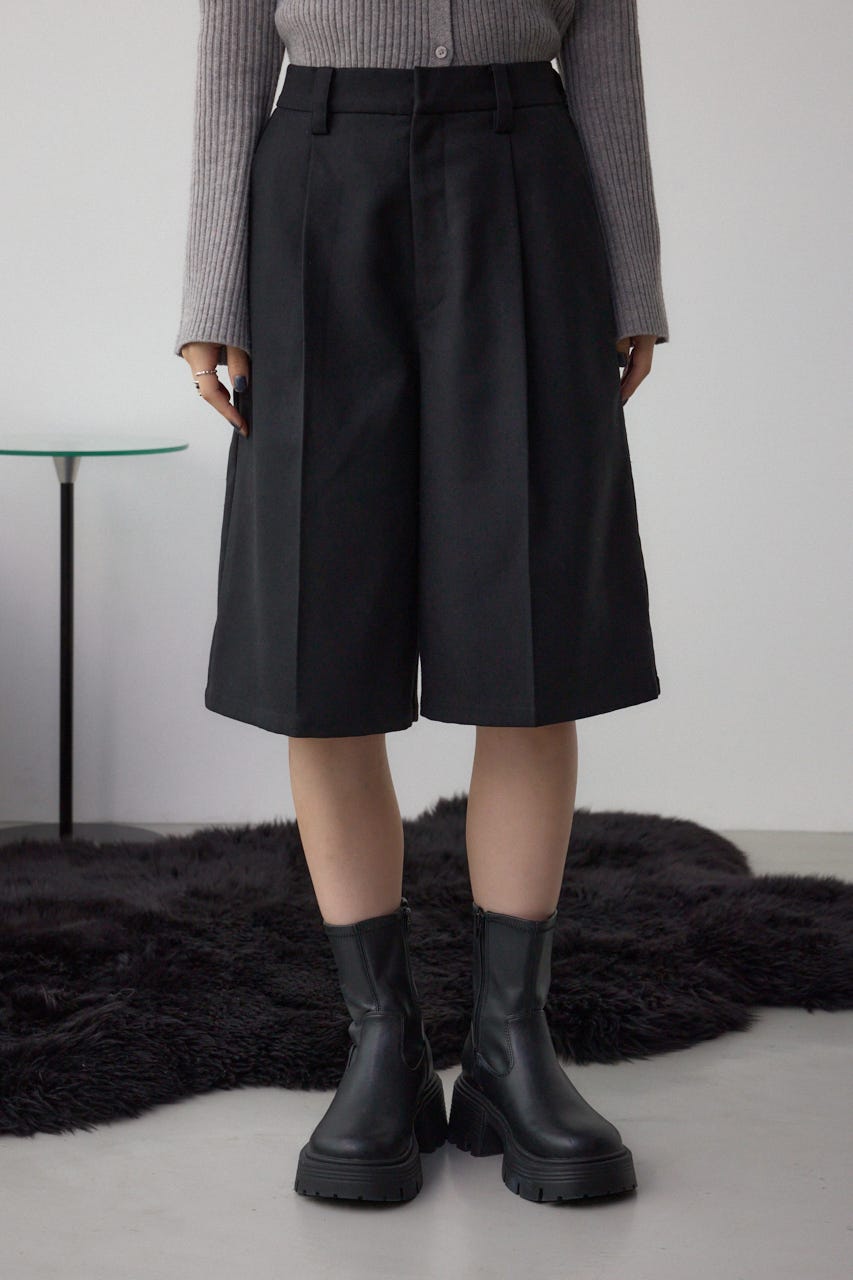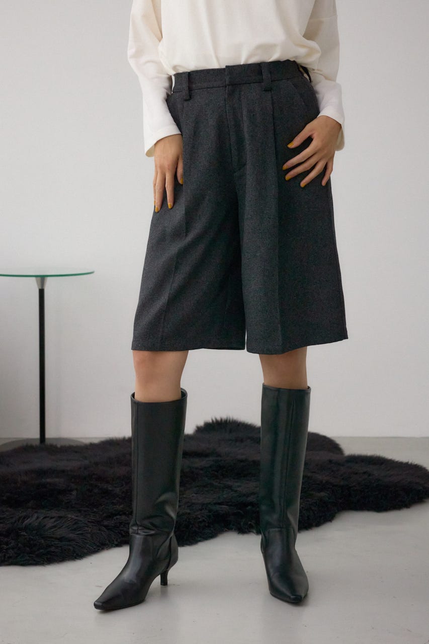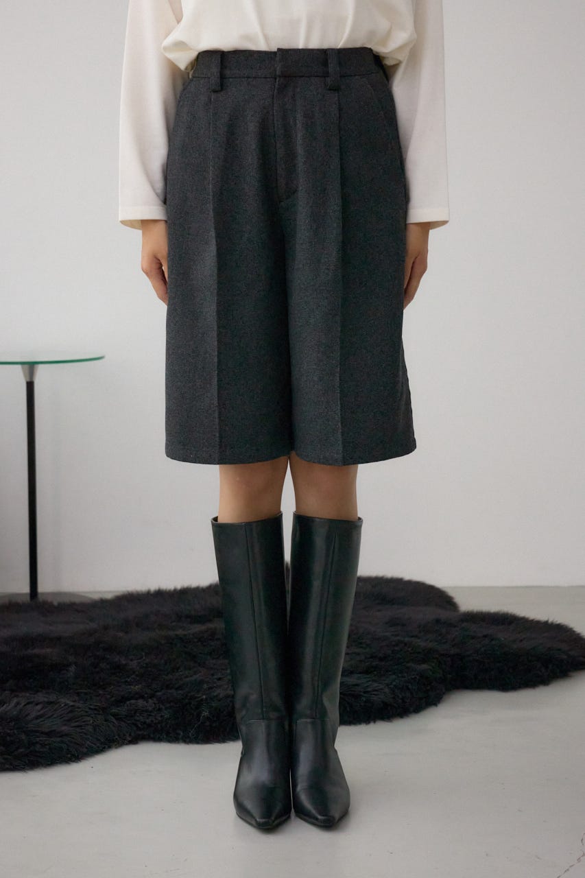 上品な起毛感のウールライク生地×ハーフ丈で、大人にちょうどいい抜け感をつくるきれいめハーフパンツ。