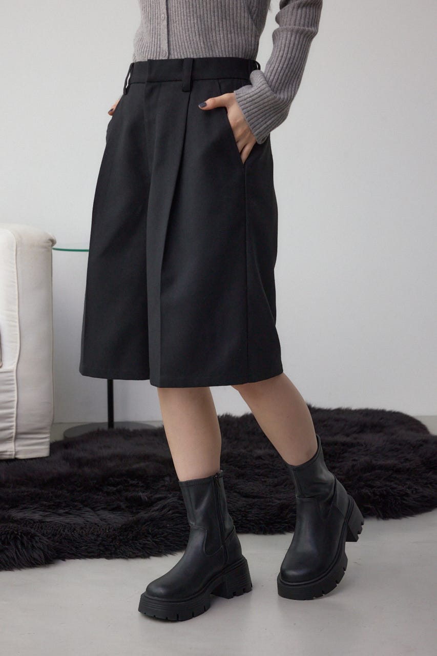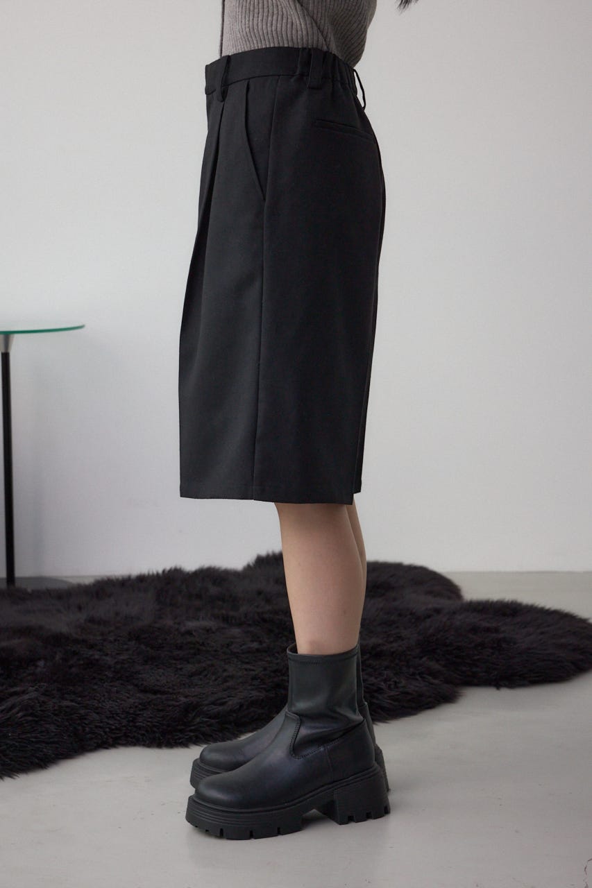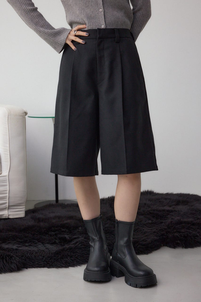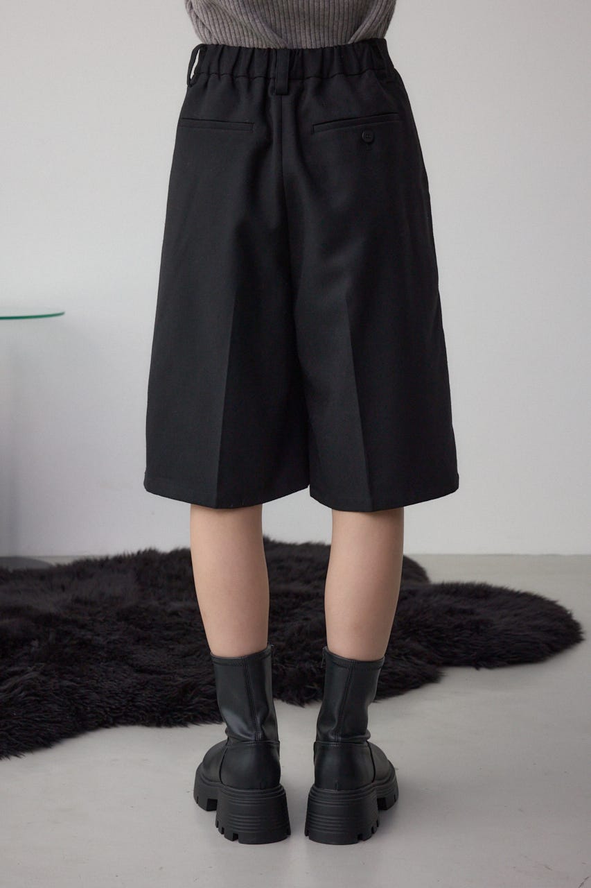 上品な起毛感のウールライク生地×ハーフ丈で、大人にちょうどいい抜け感をつくるきれいめハーフパンツ。