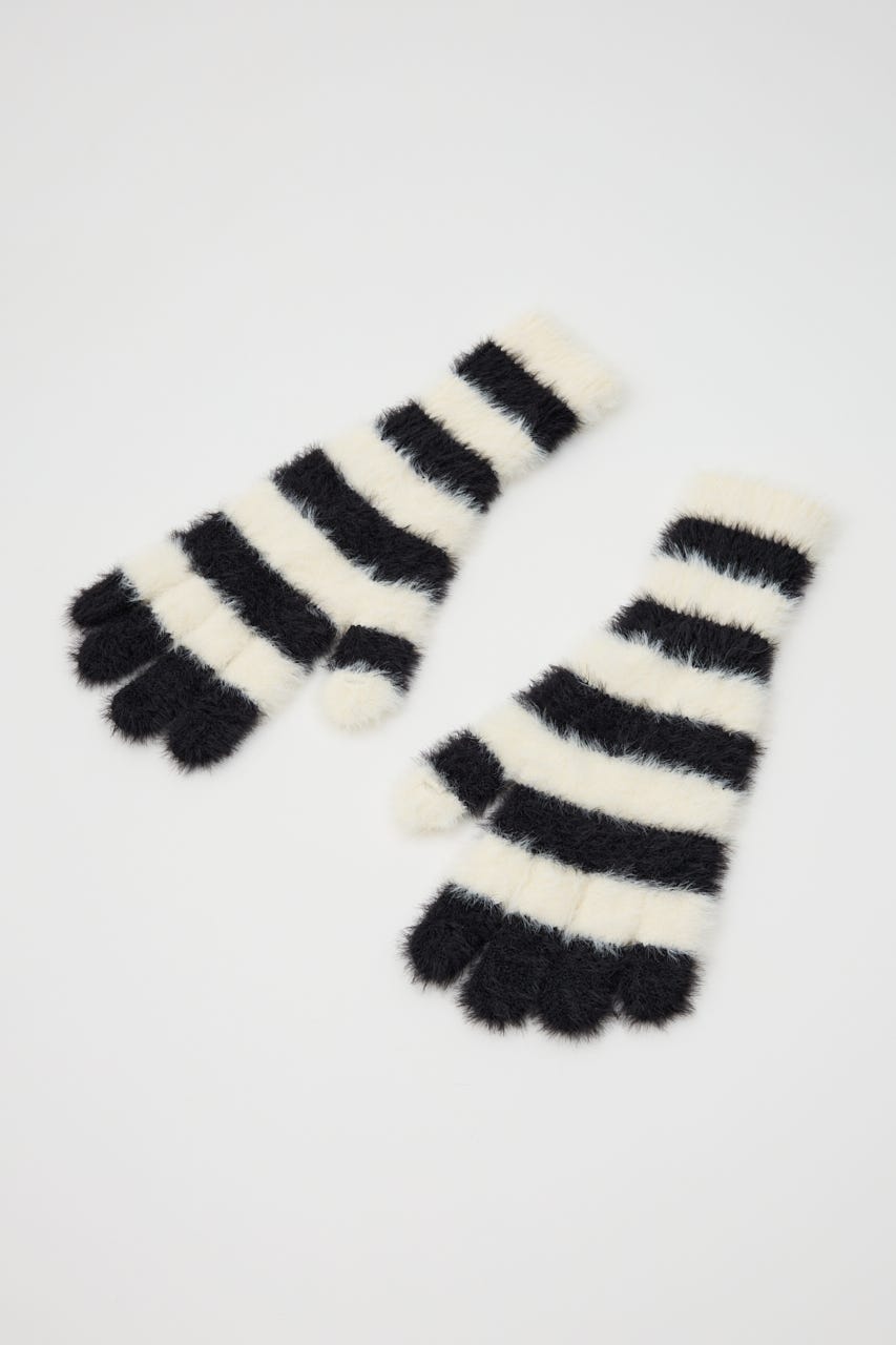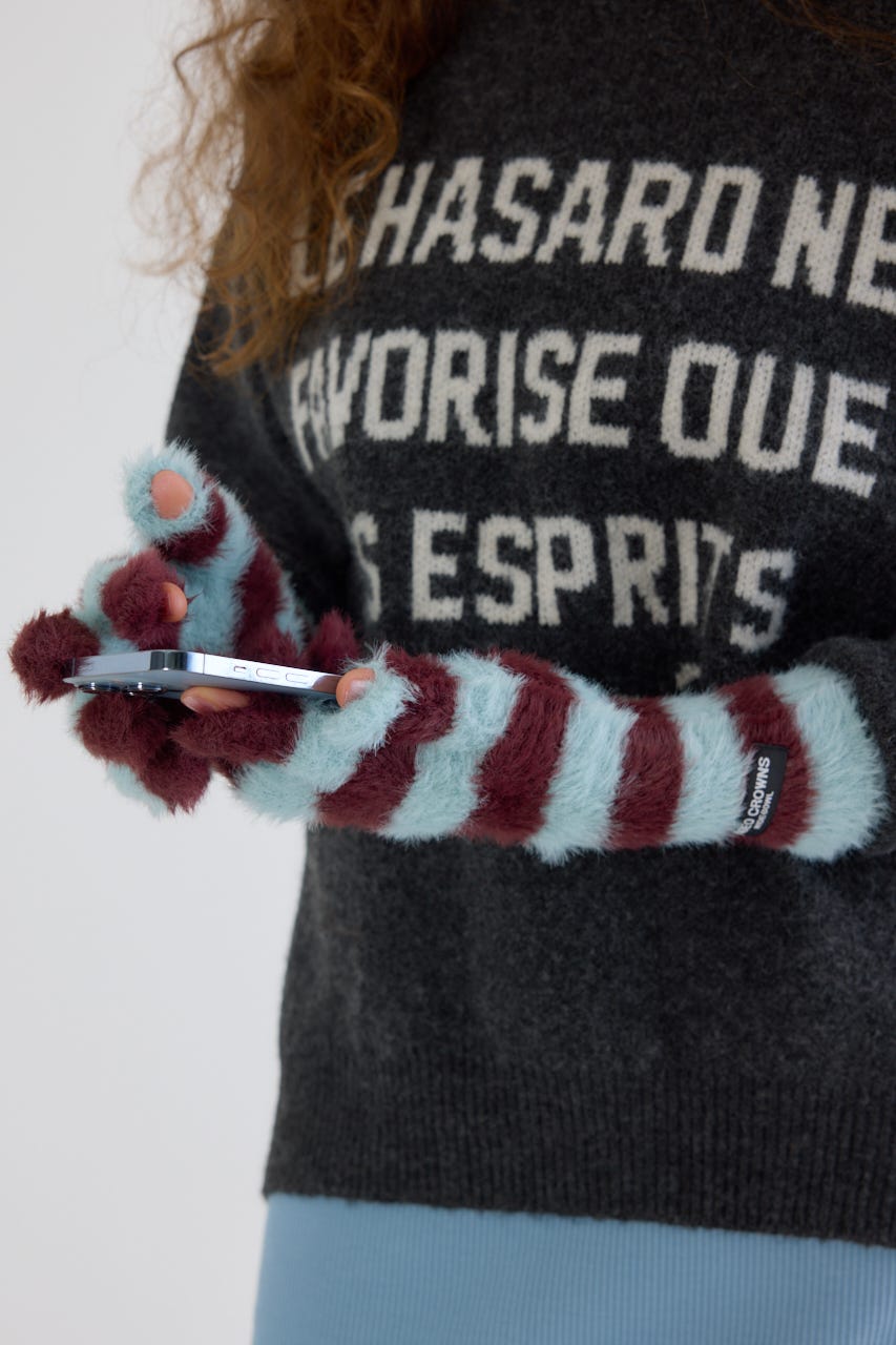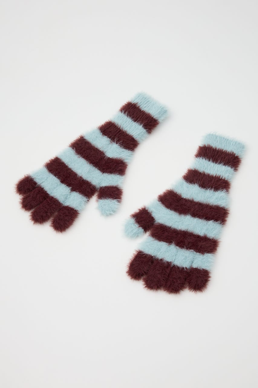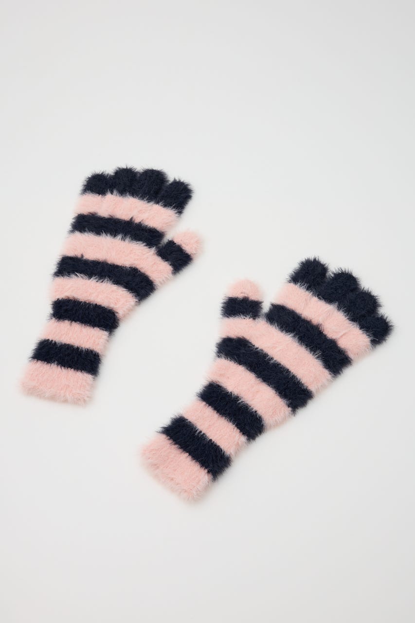ふわふわと柔らかく、手に馴染むシャギー素材で仕立てた指ありニットグローブ。