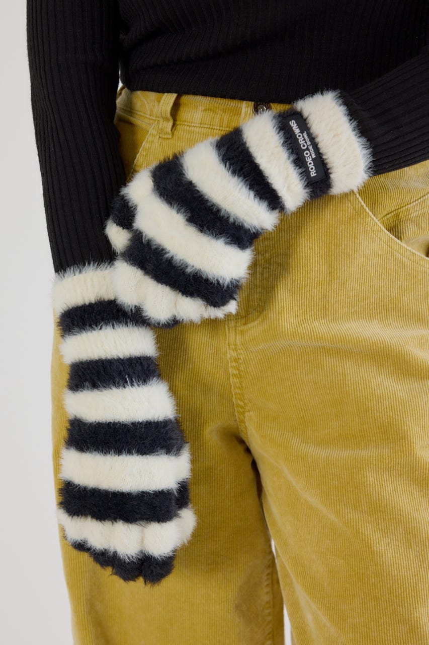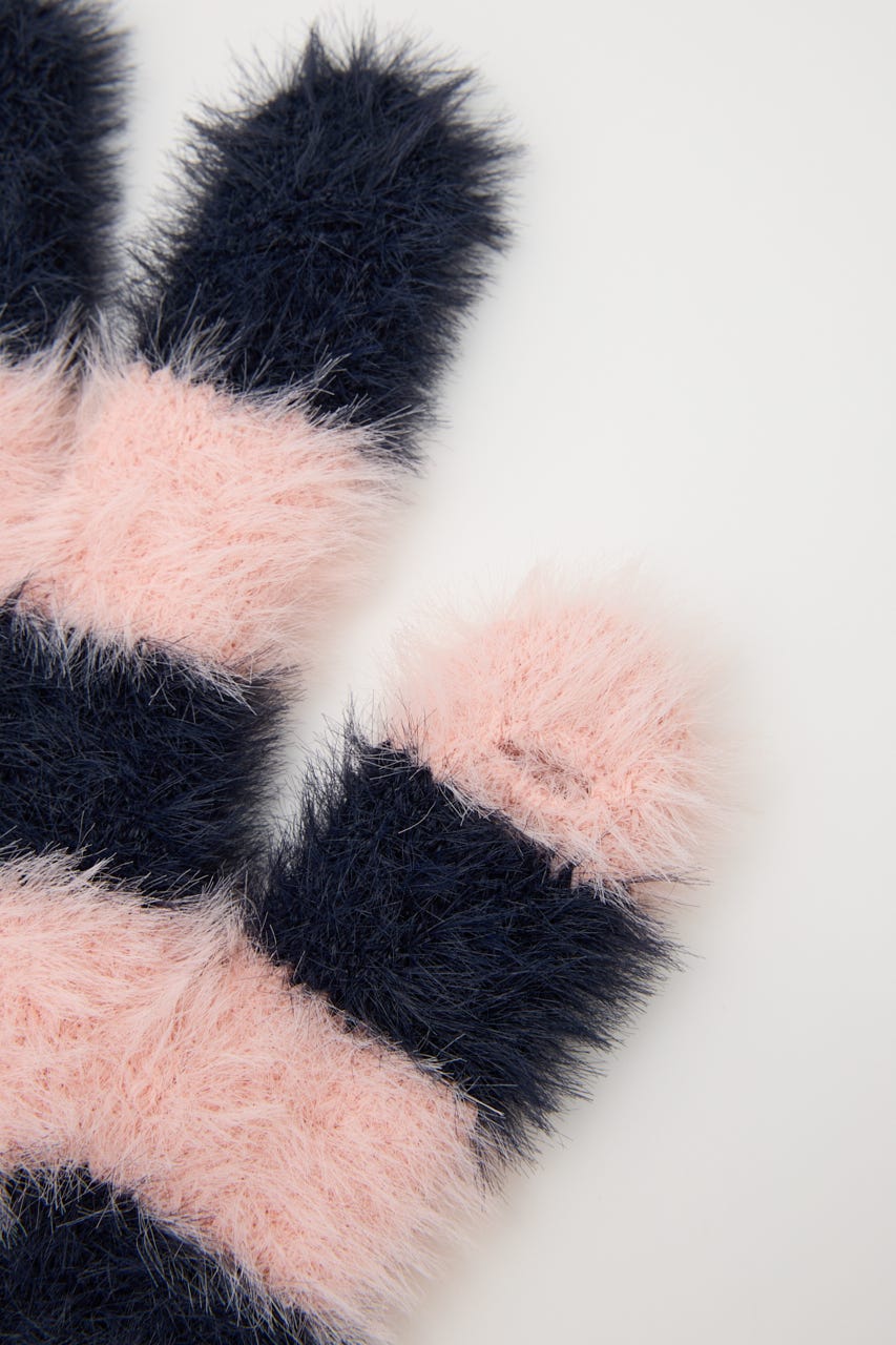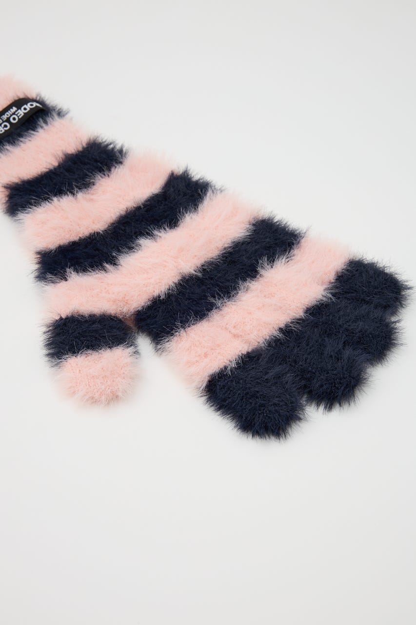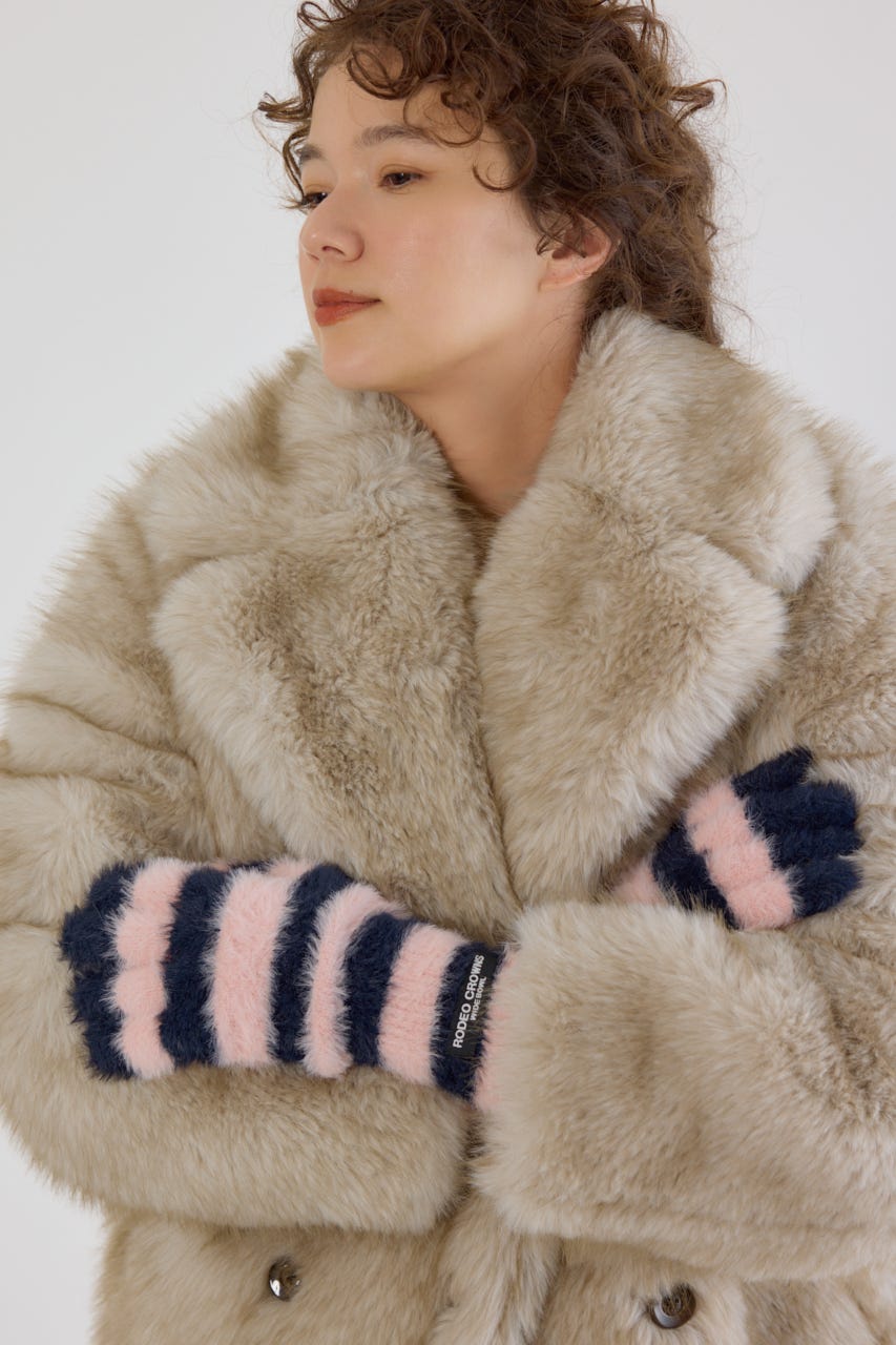 ふわふわと柔らかく、手に馴染むシャギー素材で仕立てた指ありニットグローブ。