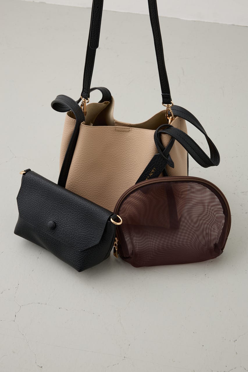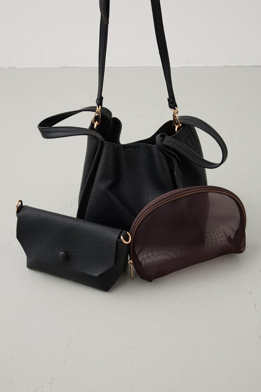 本体ハンドBAGとショルダーBAG、メッシュポーチの3つがセットになったお得なBAG。