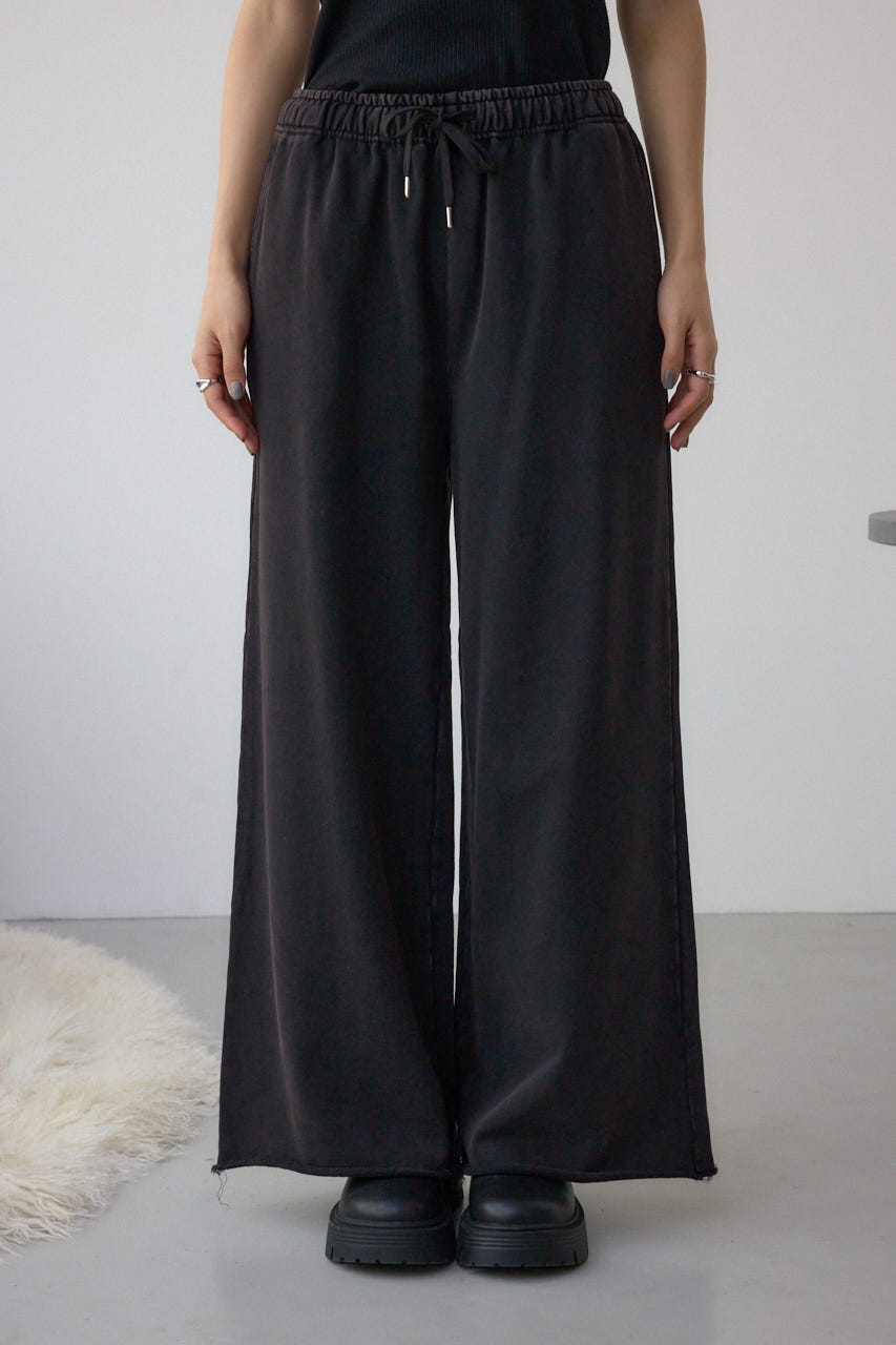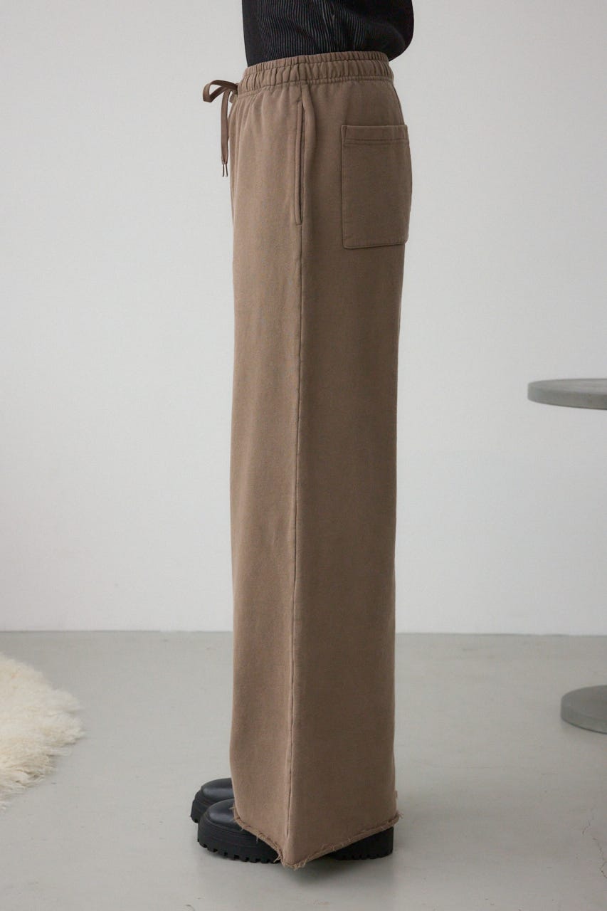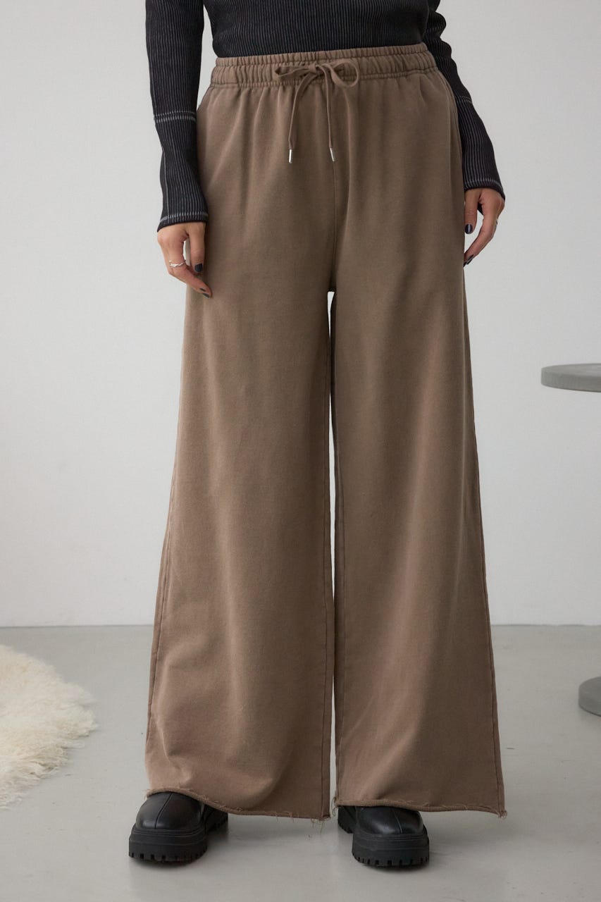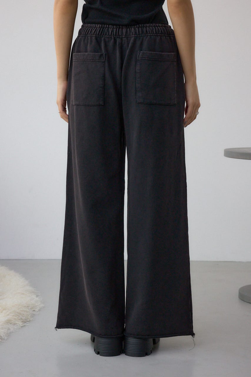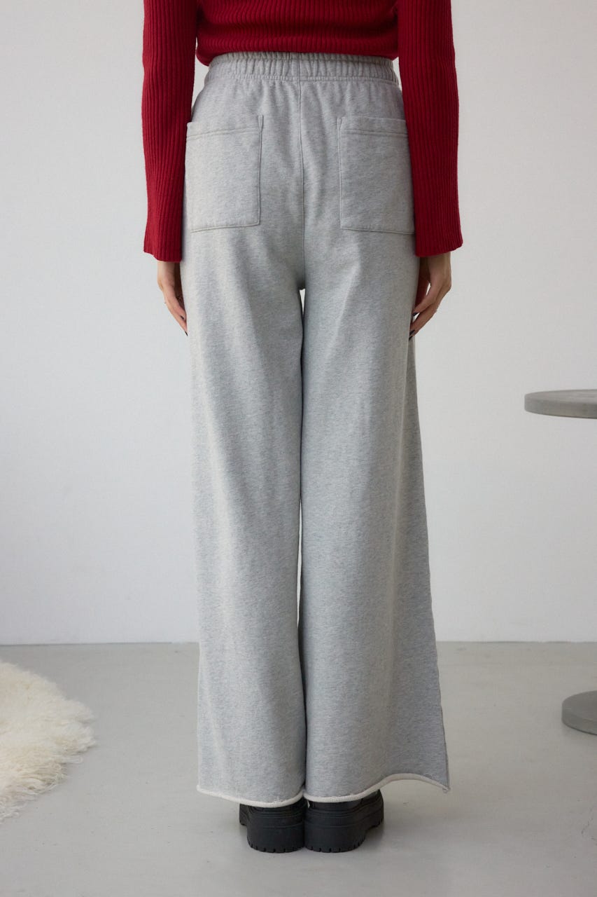 スウェット素材でカジュアルな印象もありつつ、太すぎない程よいワイドシルエットと裾のカットオフデザインがポイント。