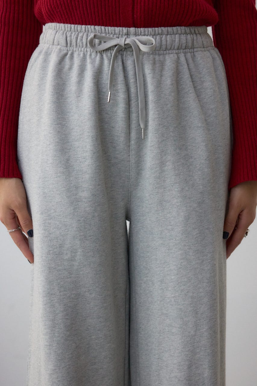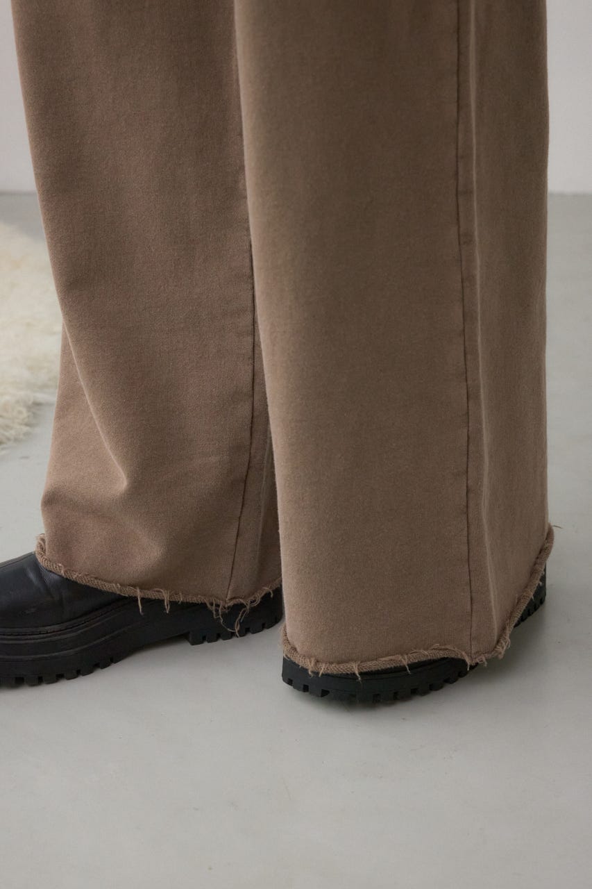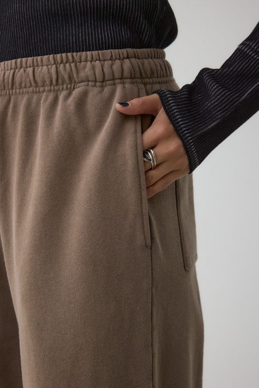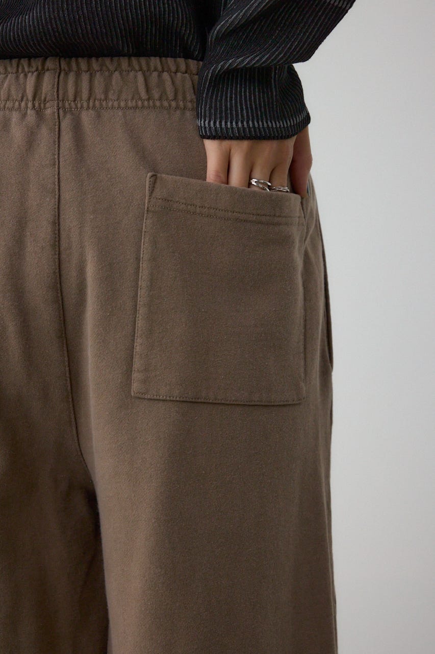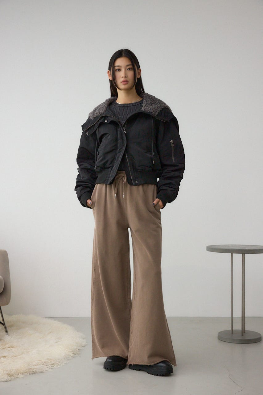 スウェット素材でカジュアルな印象もありつつ、太すぎない程よいワイドシルエットと裾のカットオフデザインがポイント。