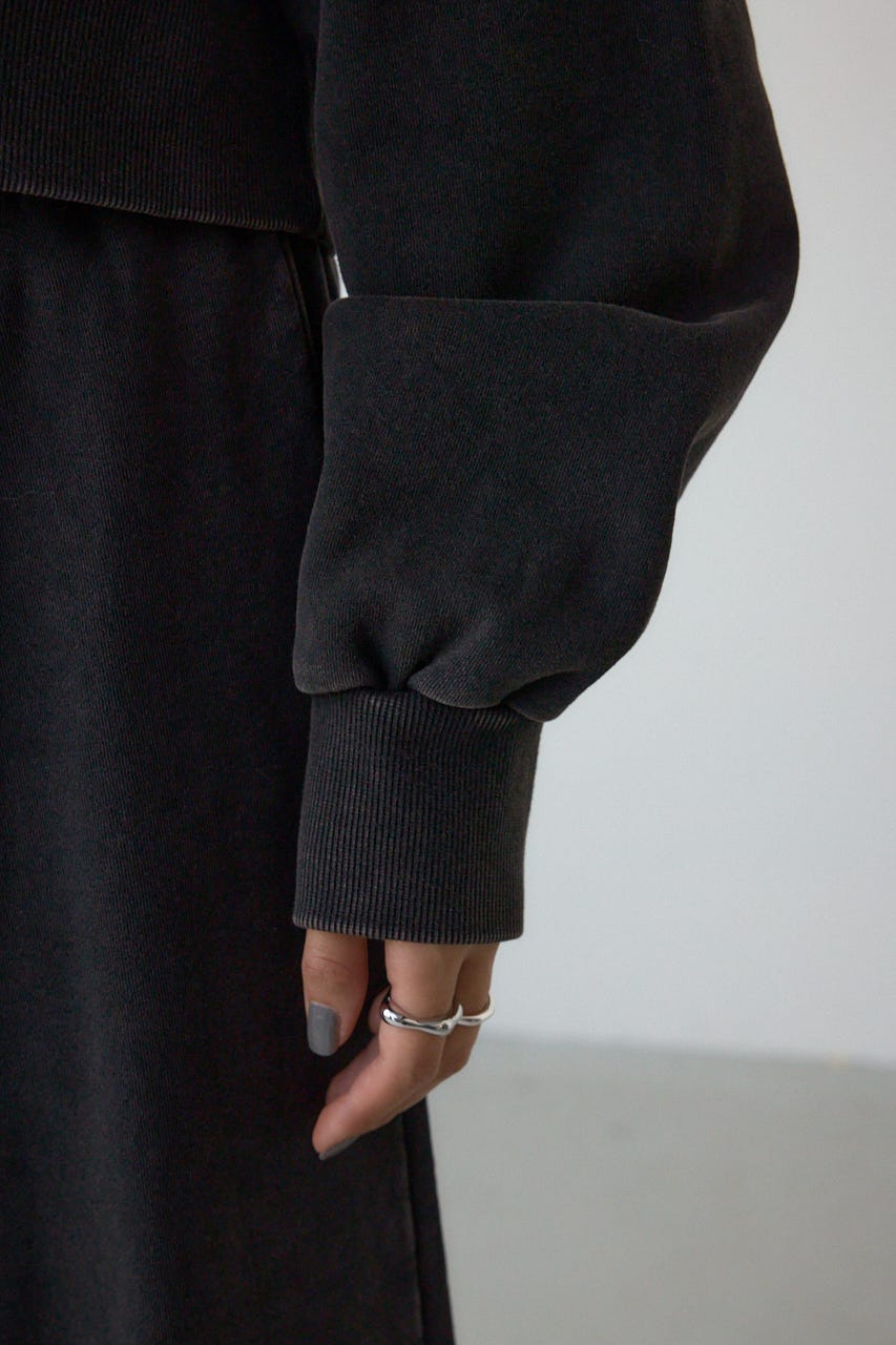 同素材のパンツ(250IAC81-1291 ヴィンテージ加工スウェットパンツ)とのセットアップ着用もおすすめです。