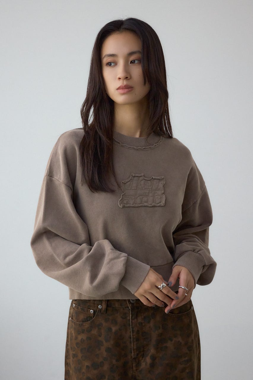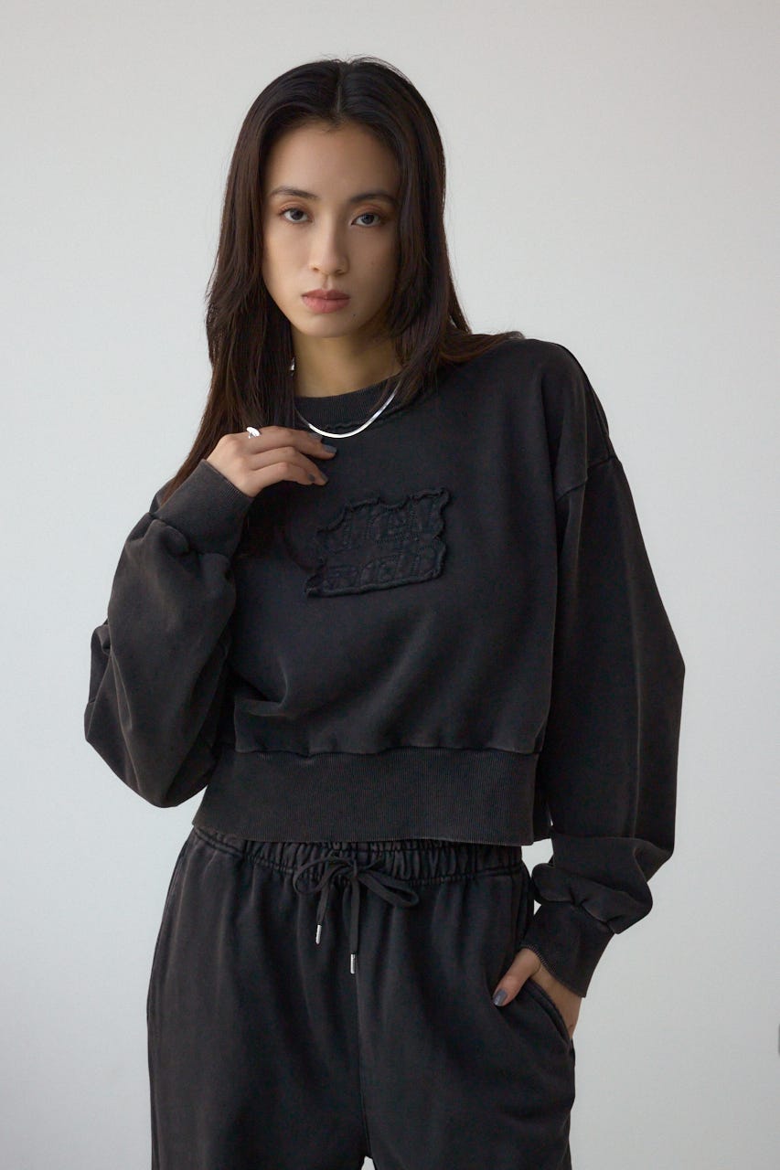 フロントにはダメージを効かせた共地のパッチロゴデザインでトレンド感を演出したスウェットトップスです。