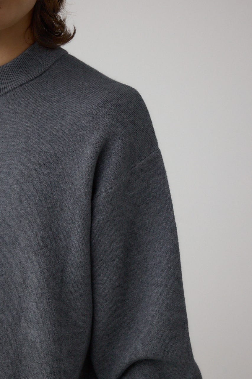 度目と風合いを細いラメを編み込みながら調整し、最終仕上げで、柔らかく仕上げたニットトップスです。