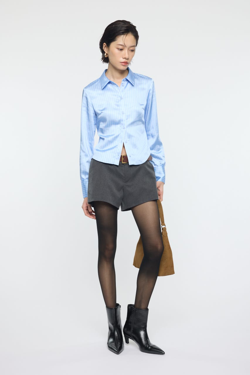 マイクロ丈のシルエットを上品なツイルTR素材で仕上げたショートパンツ。