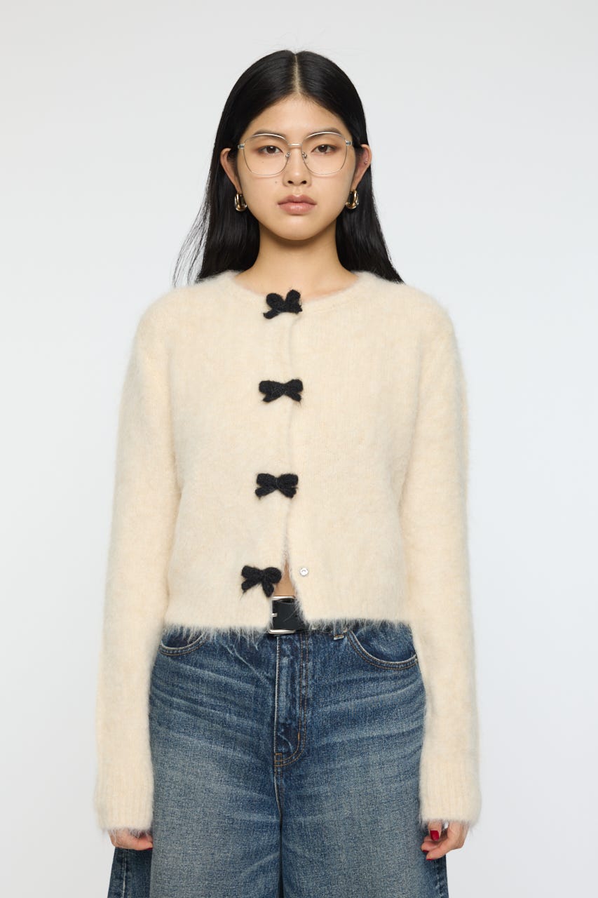 ※商品画像はサンプルのため、色味やサイズ感、素材の混率等の商品仕様に変更がある場合がございます。 【FRONT RIBBON CARDIGAN / フロントリボンカーディガン】