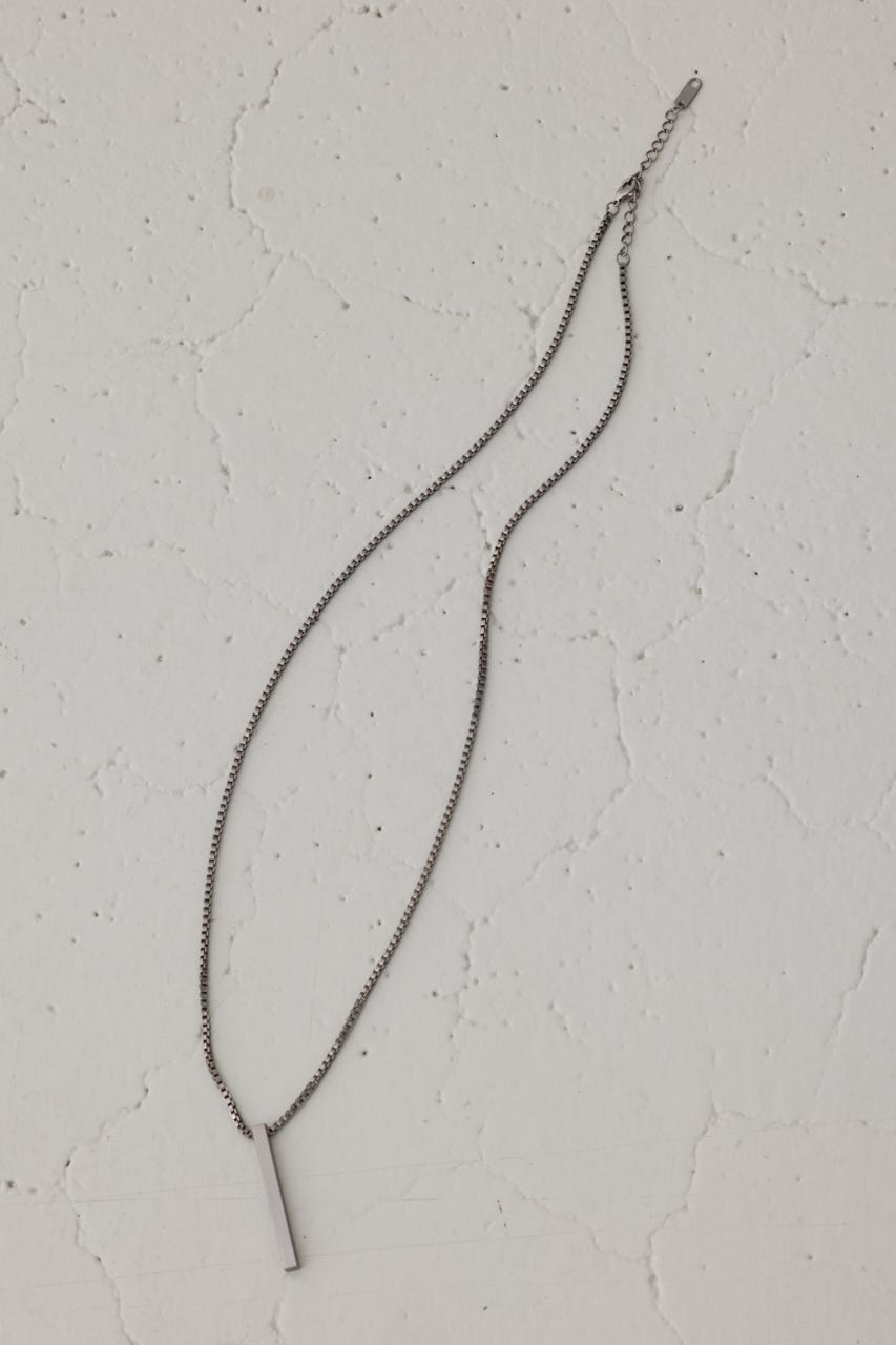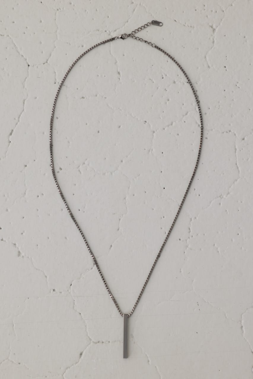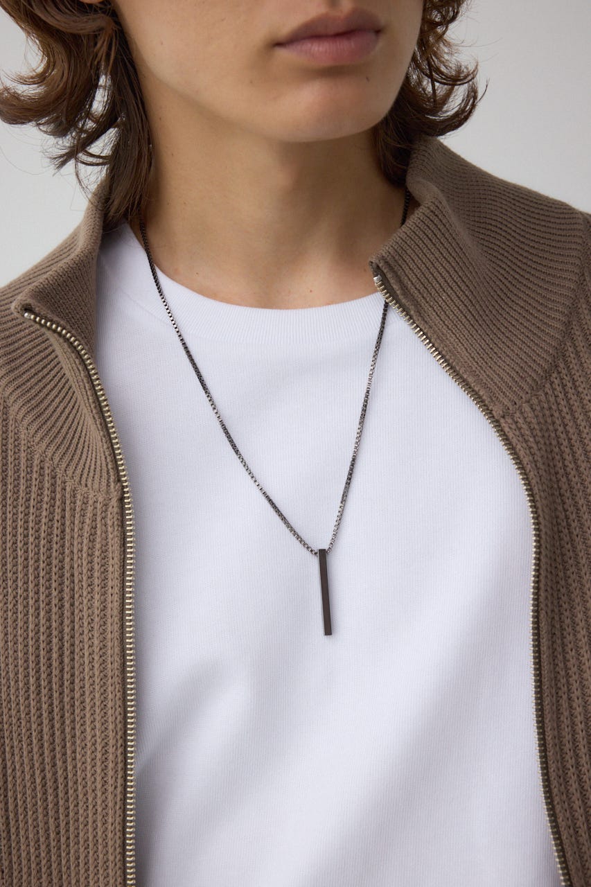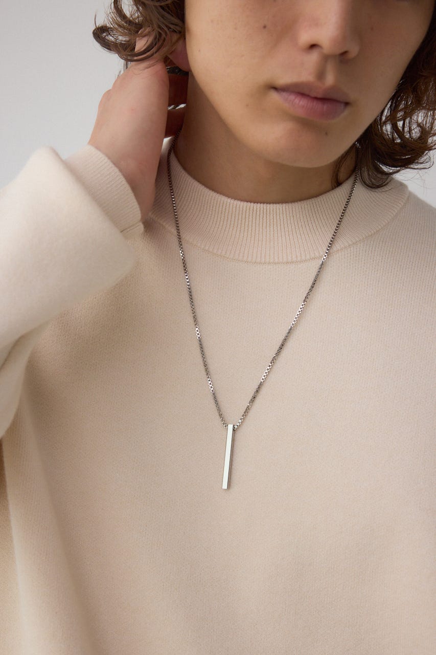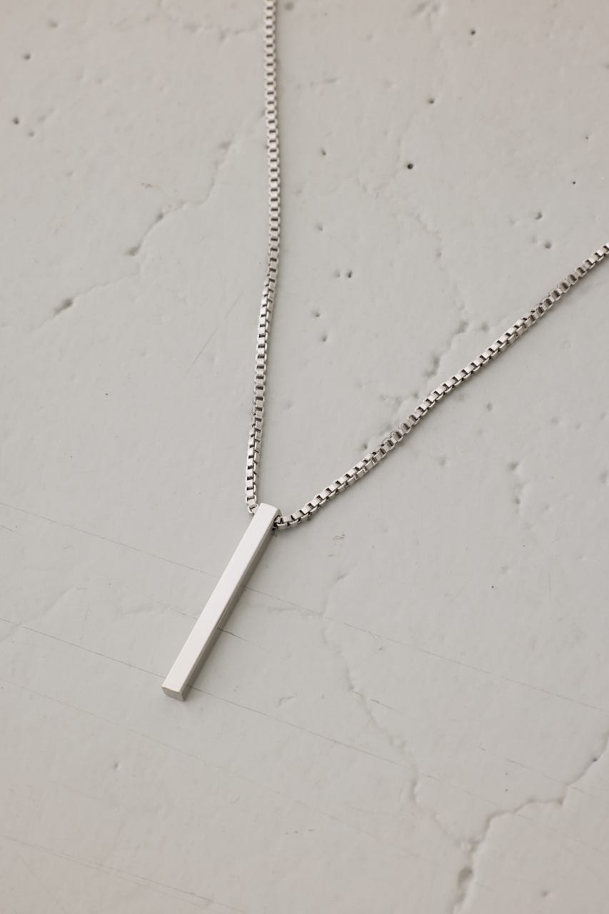 プレートチャームヘッドがワンポイントになった、目をひくミニマルなネックレスです。
