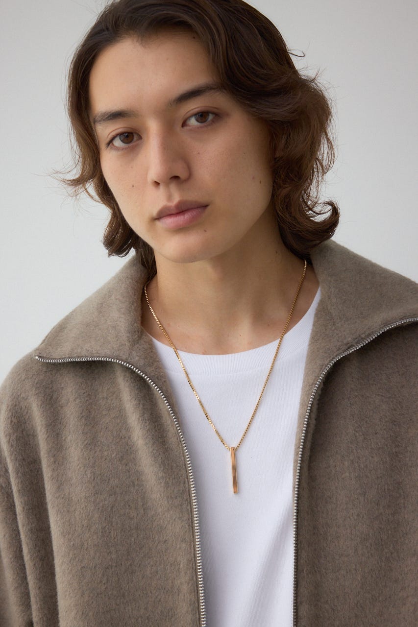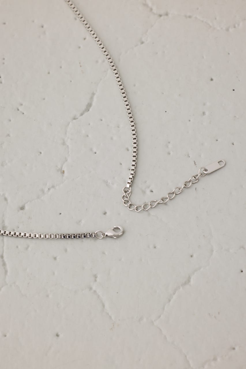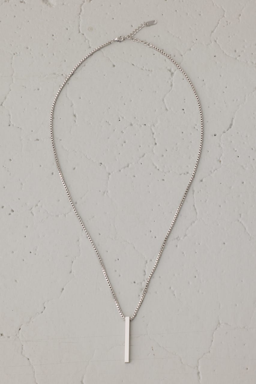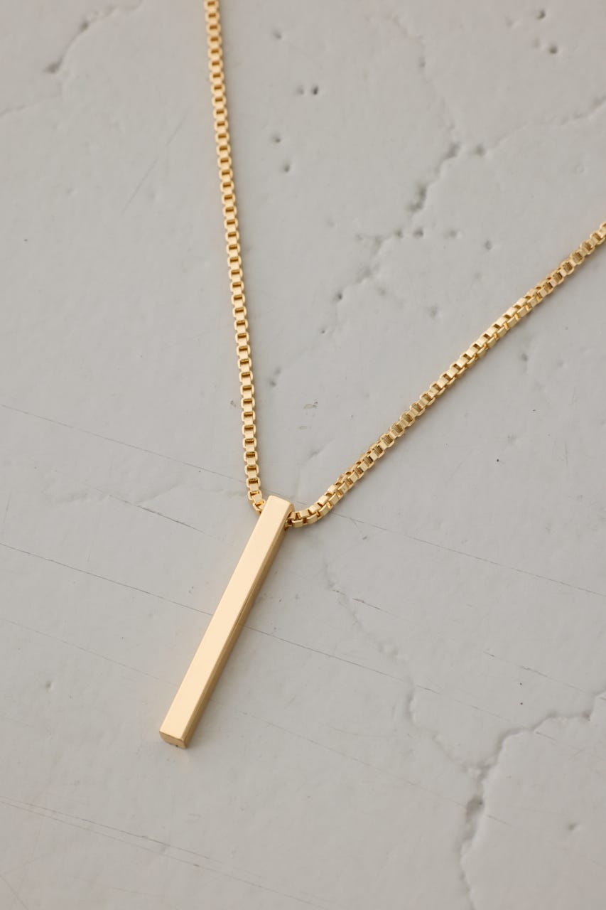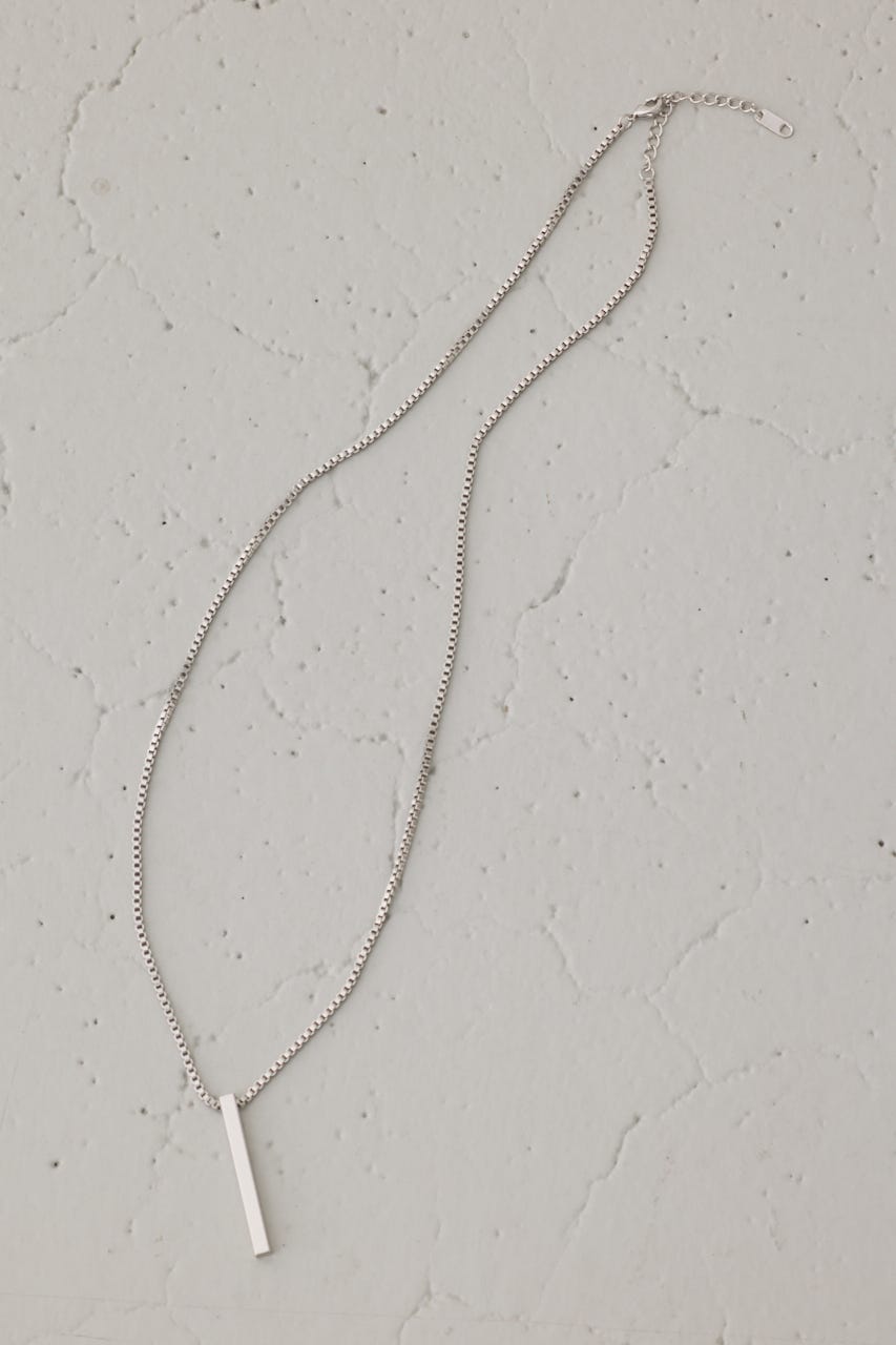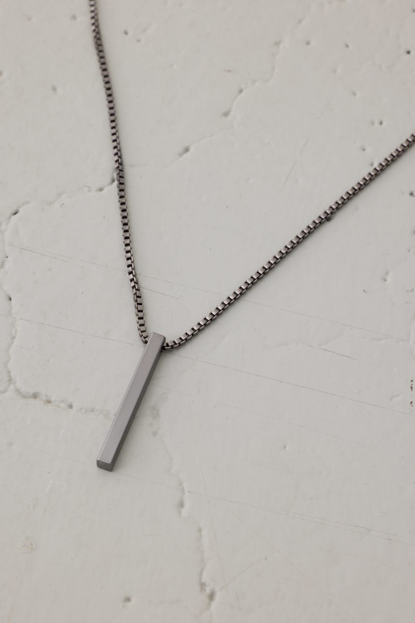 プレートチャームヘッドがワンポイントになった、目をひくミニマルなネックレスです。