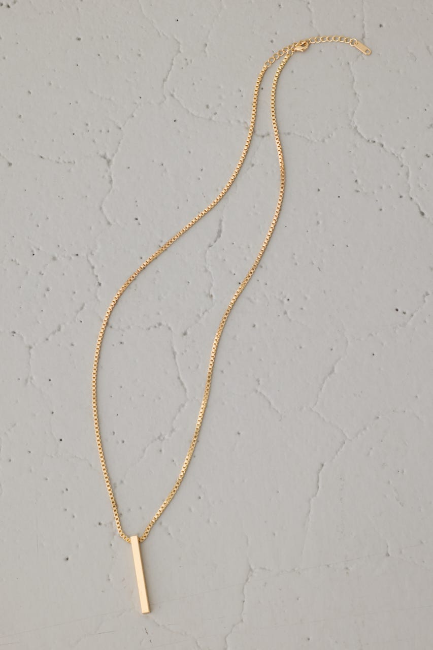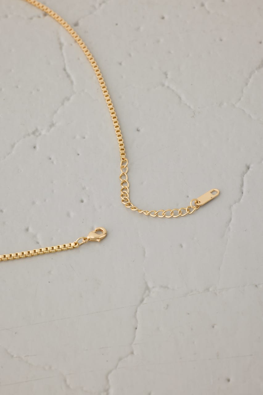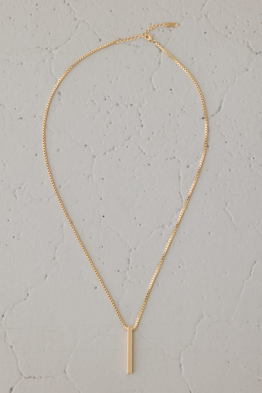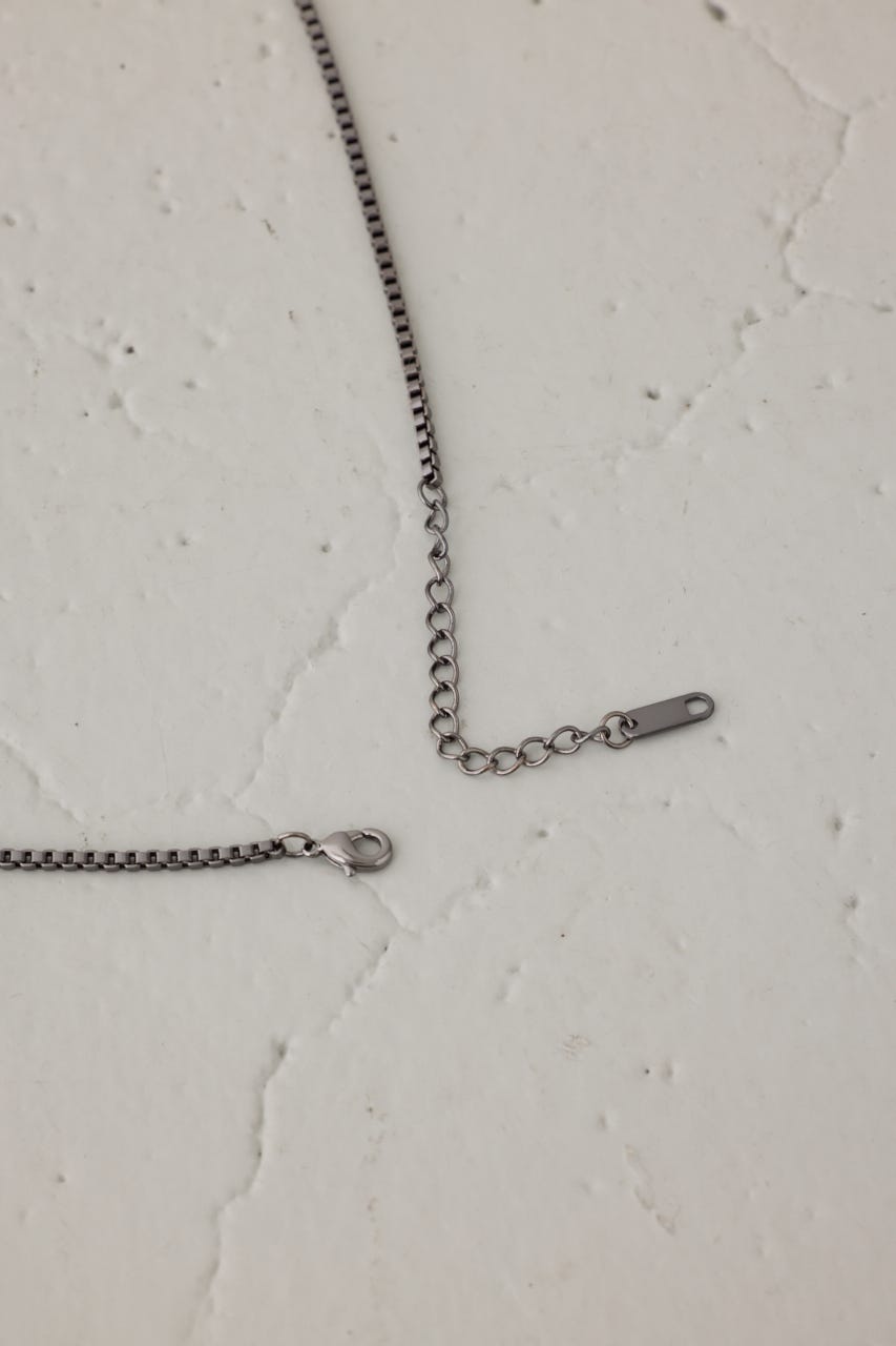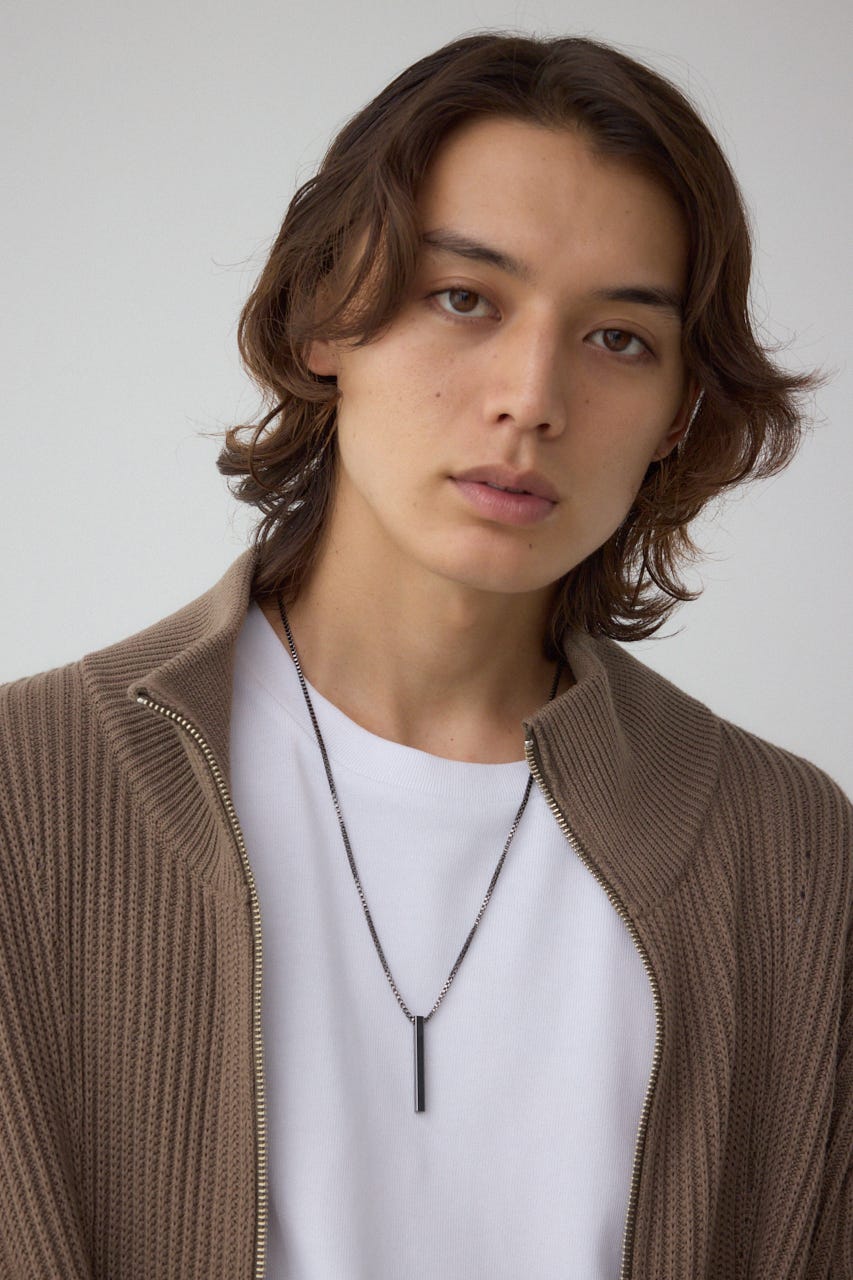 プレートチャームヘッドがワンポイントになった、目をひくミニマルなネックレスです。