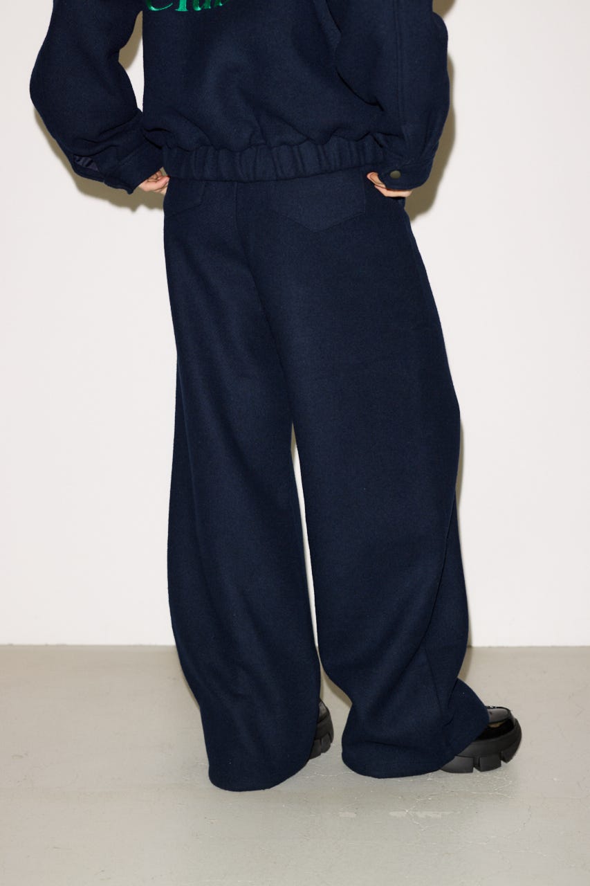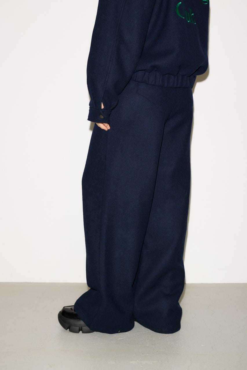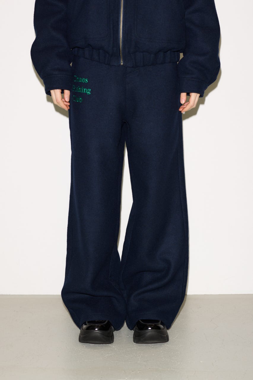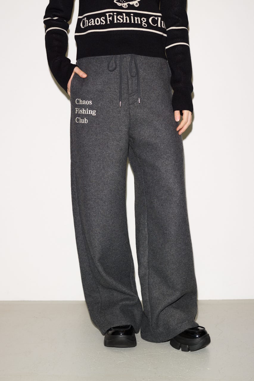 ウール混の暖かみのある素材を使用し、程よい太さのストレートシルエットでデイリー使いしやすく、ウエスト部分は後身頃がゴム使用になっているのでリラックス感のあるアイテムに。