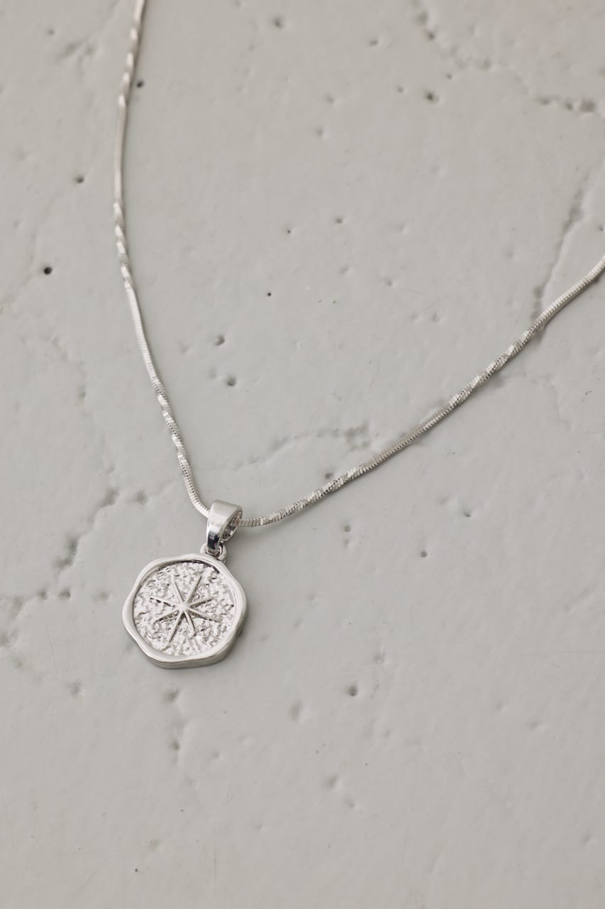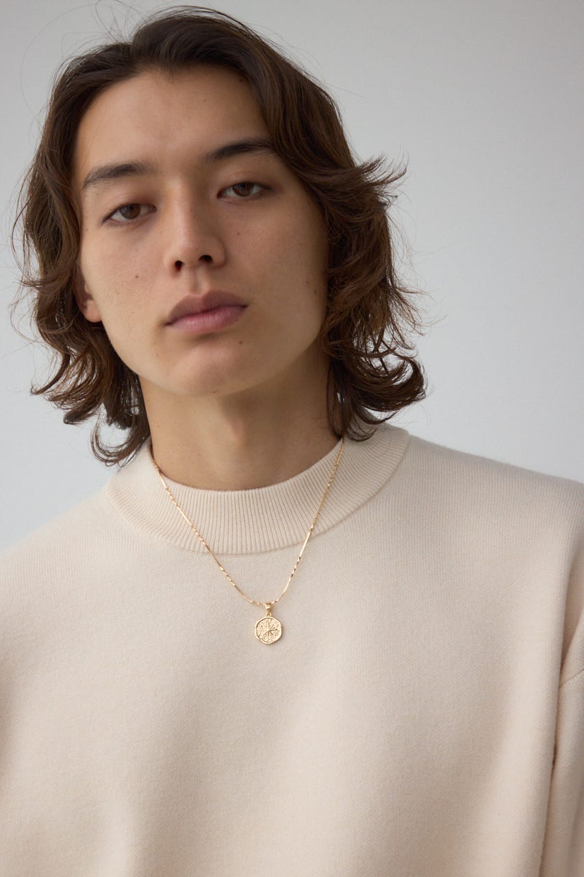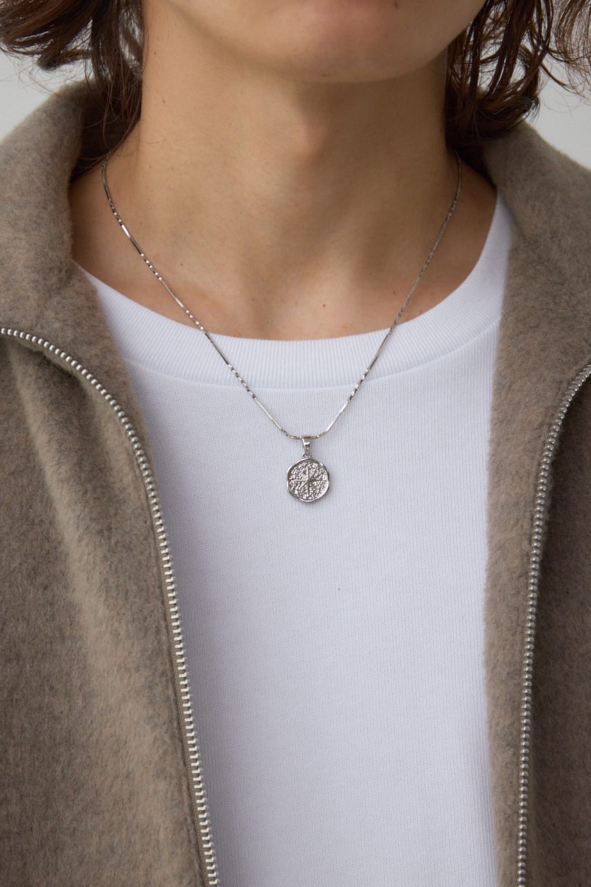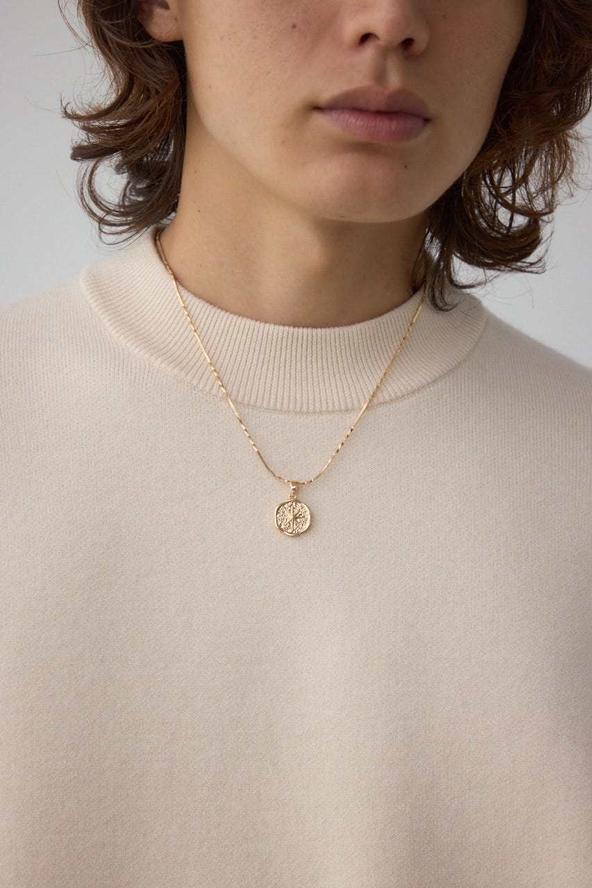 中央のコインチャームが程よい存在感を与え、ミニマルながらもクラシックな雰囲気を持つデザイン。