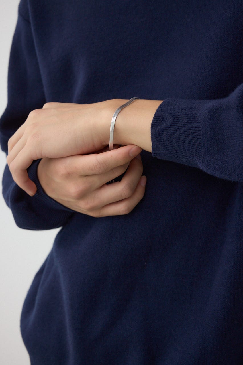 滑らかな曲線が特徴のスネークチェーンを使用したミニマルで洗練されたブレスレットです。