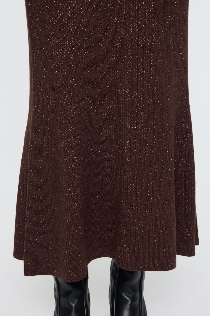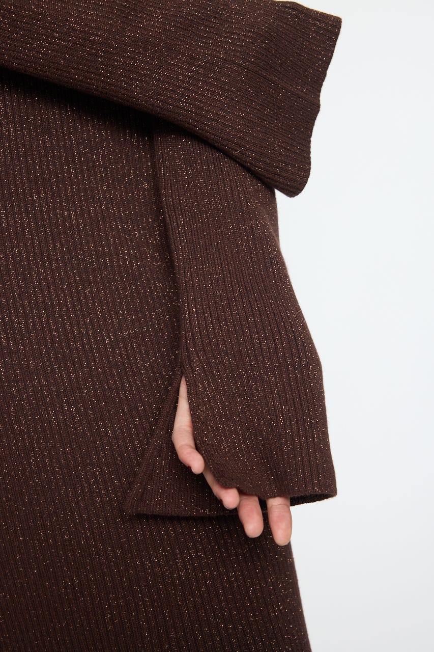 裾にかけて程よく広がるマーメイドラインと長めの袖で女性らしい柔らかな印象に。
