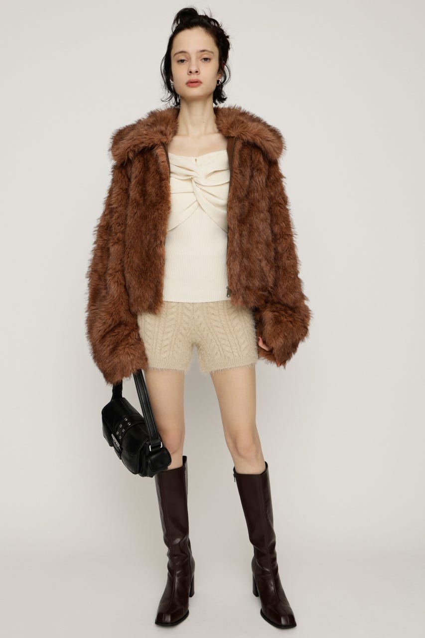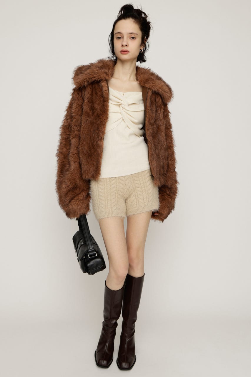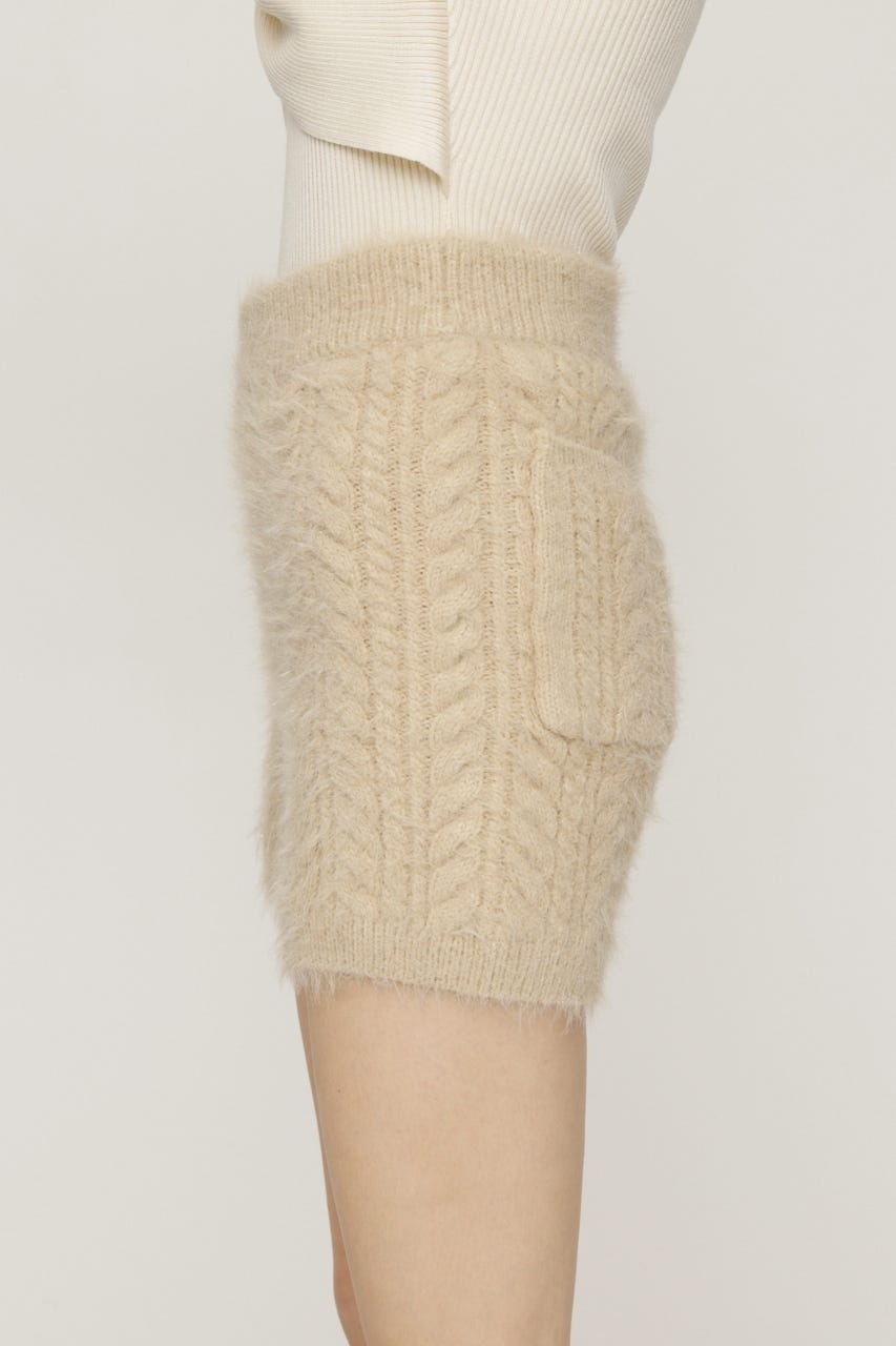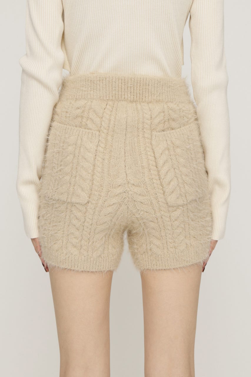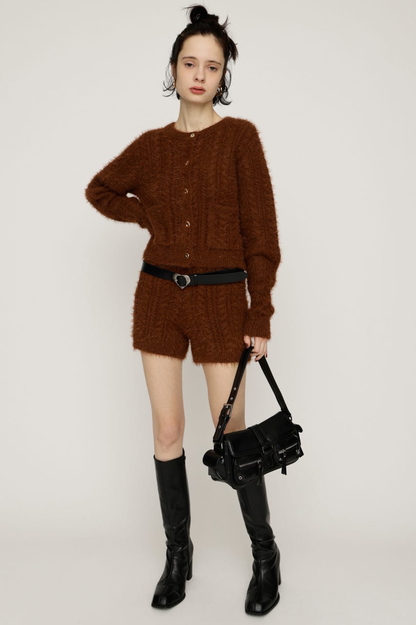 毛足のあるシャギー素材にラメ糸をミックスした、シーズンムードを高めるニットショートパンツ。