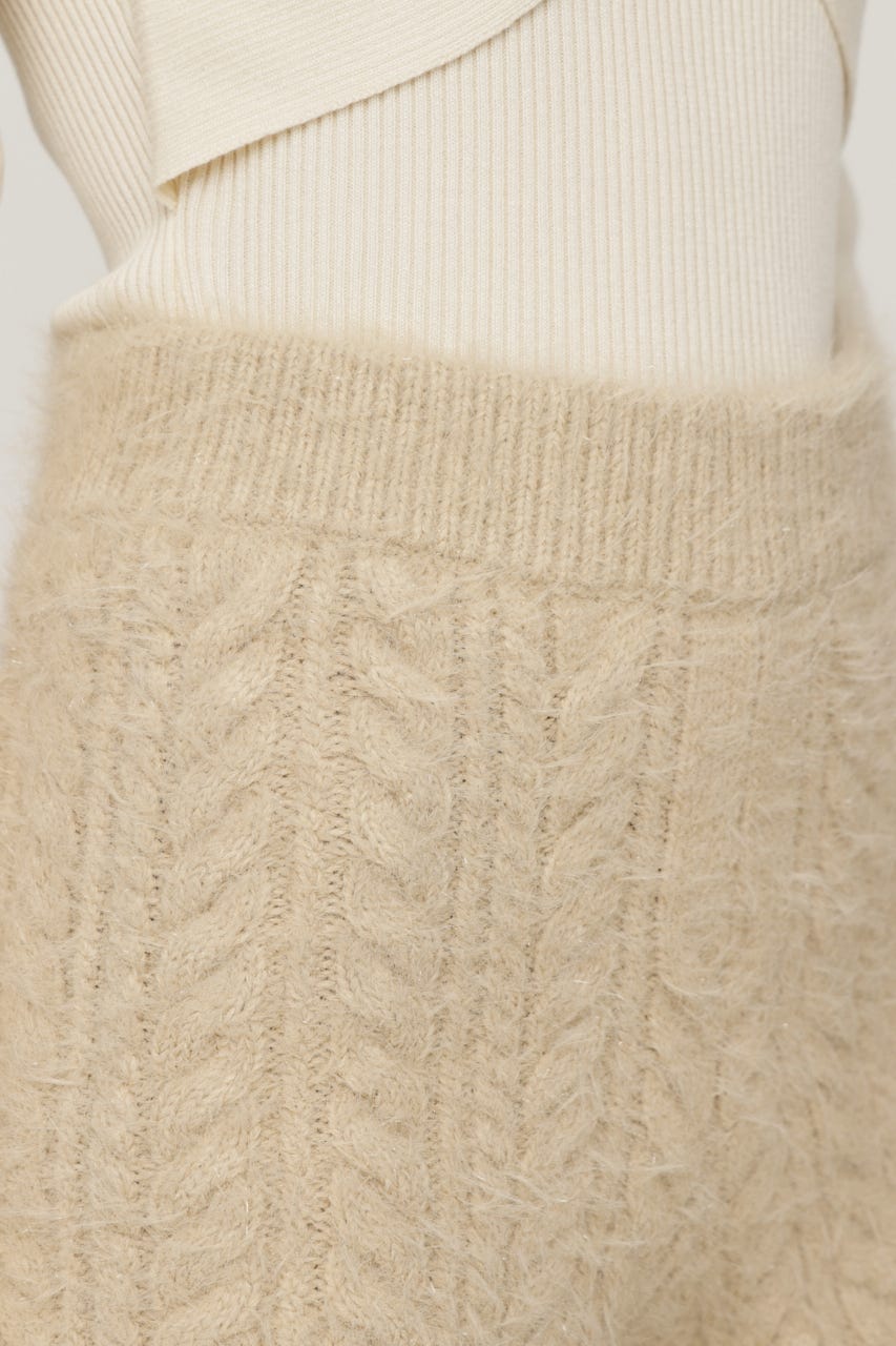 立体感のあるケーブル編みが程よく存在感を放ち、着用するだけでスタイリングを一気に華やかに仕上げます。