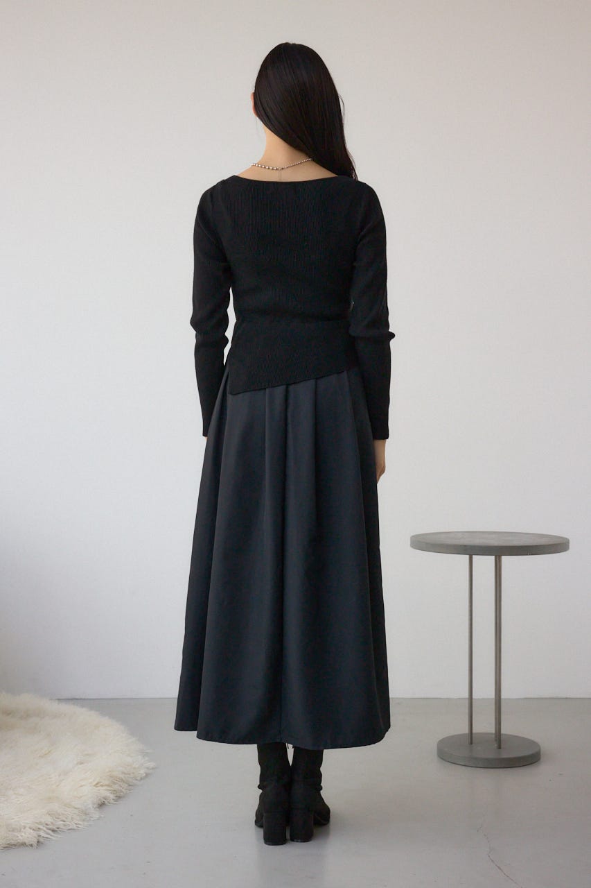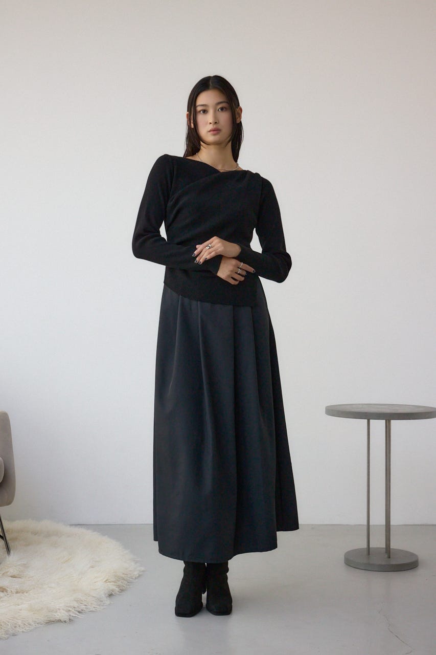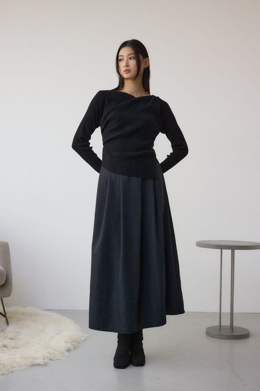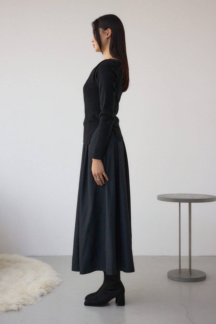 スカートはやや落ち感のある布帛を使用しタックを施すことで、立体感のあるシルエットに。