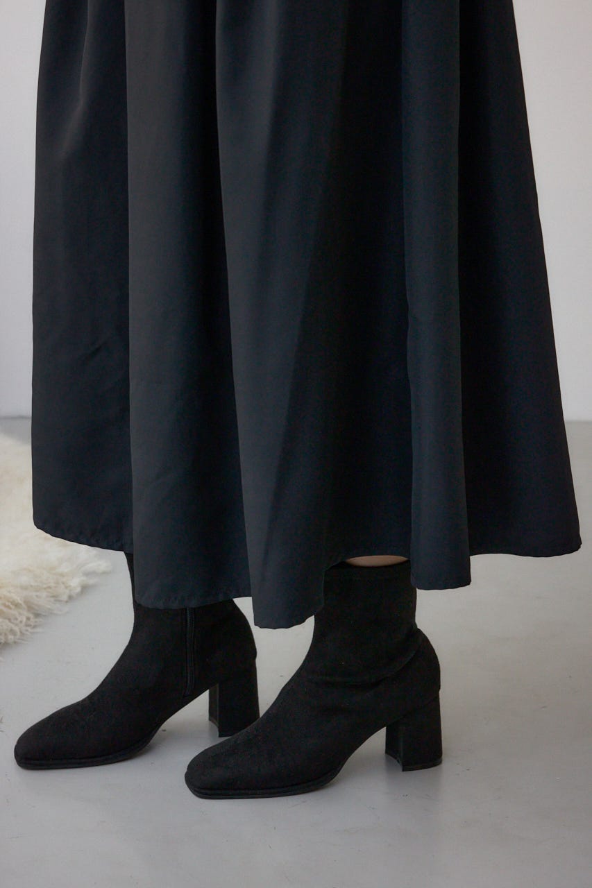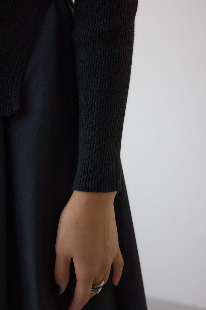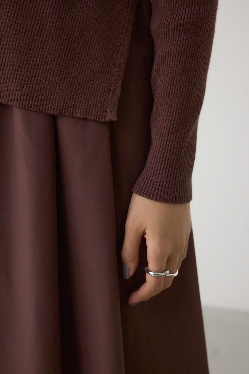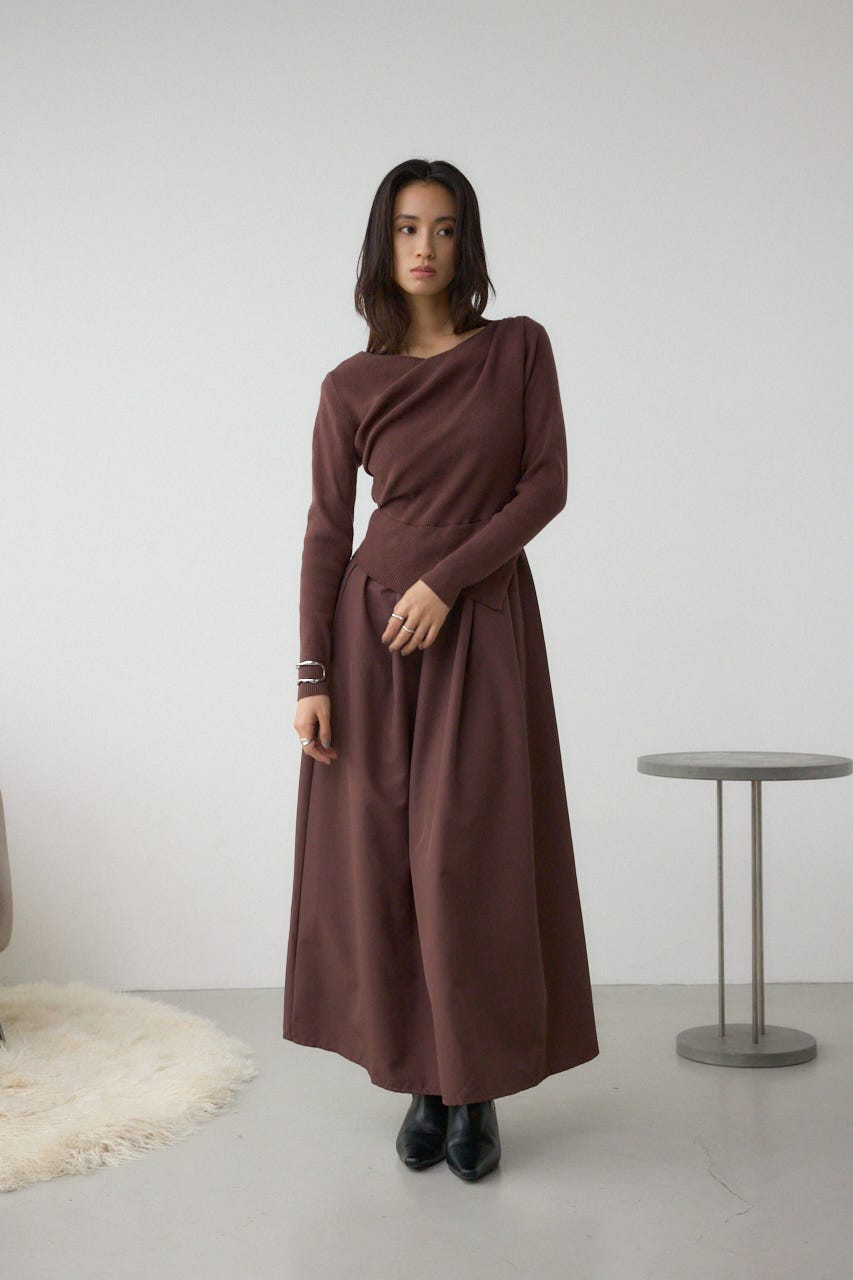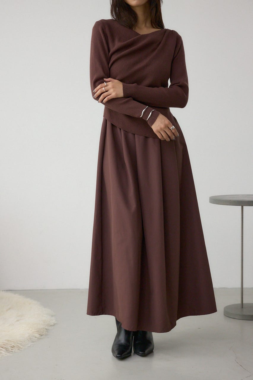 スカートはやや落ち感のある布帛を使用しタックを施すことで、立体感のあるシルエットに。