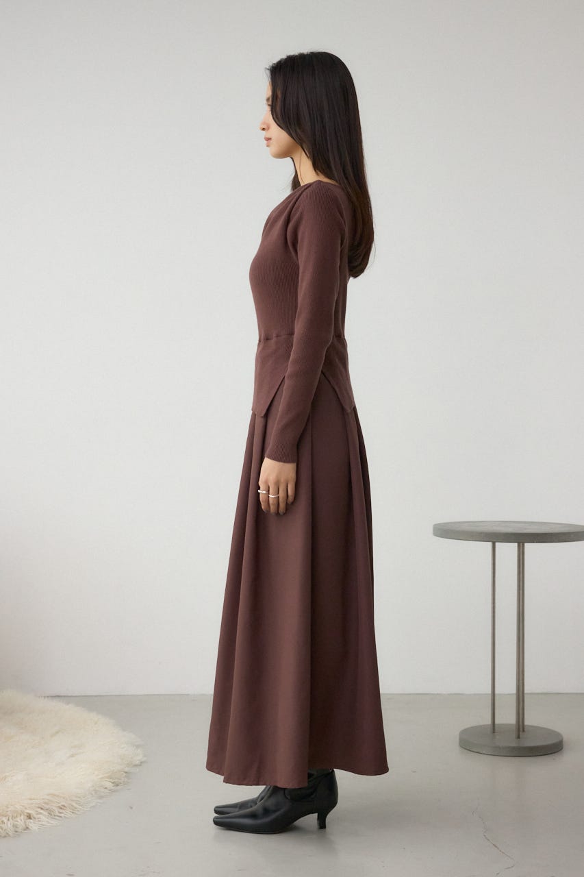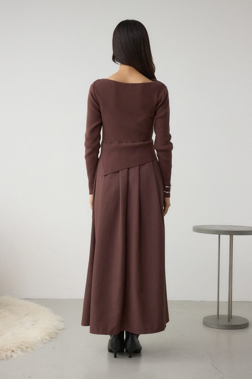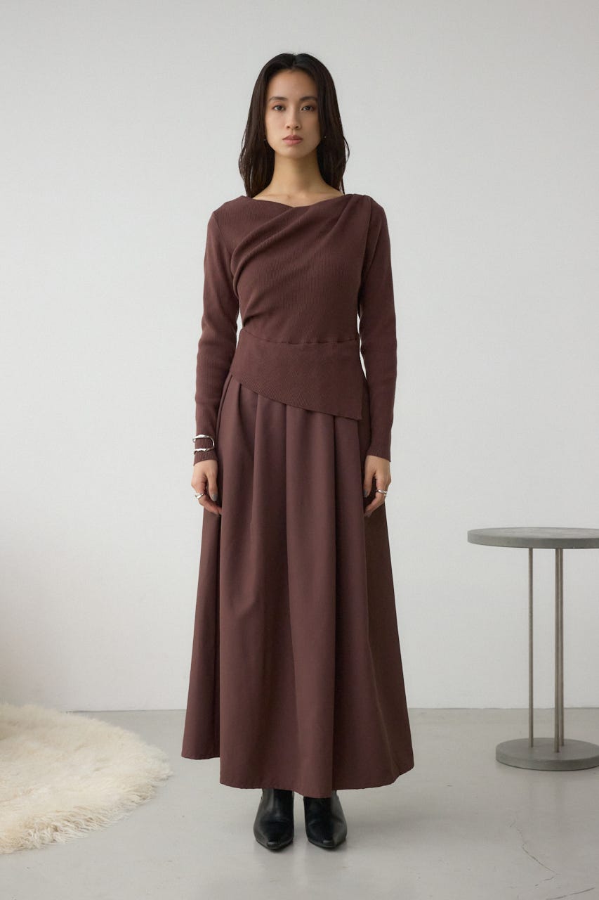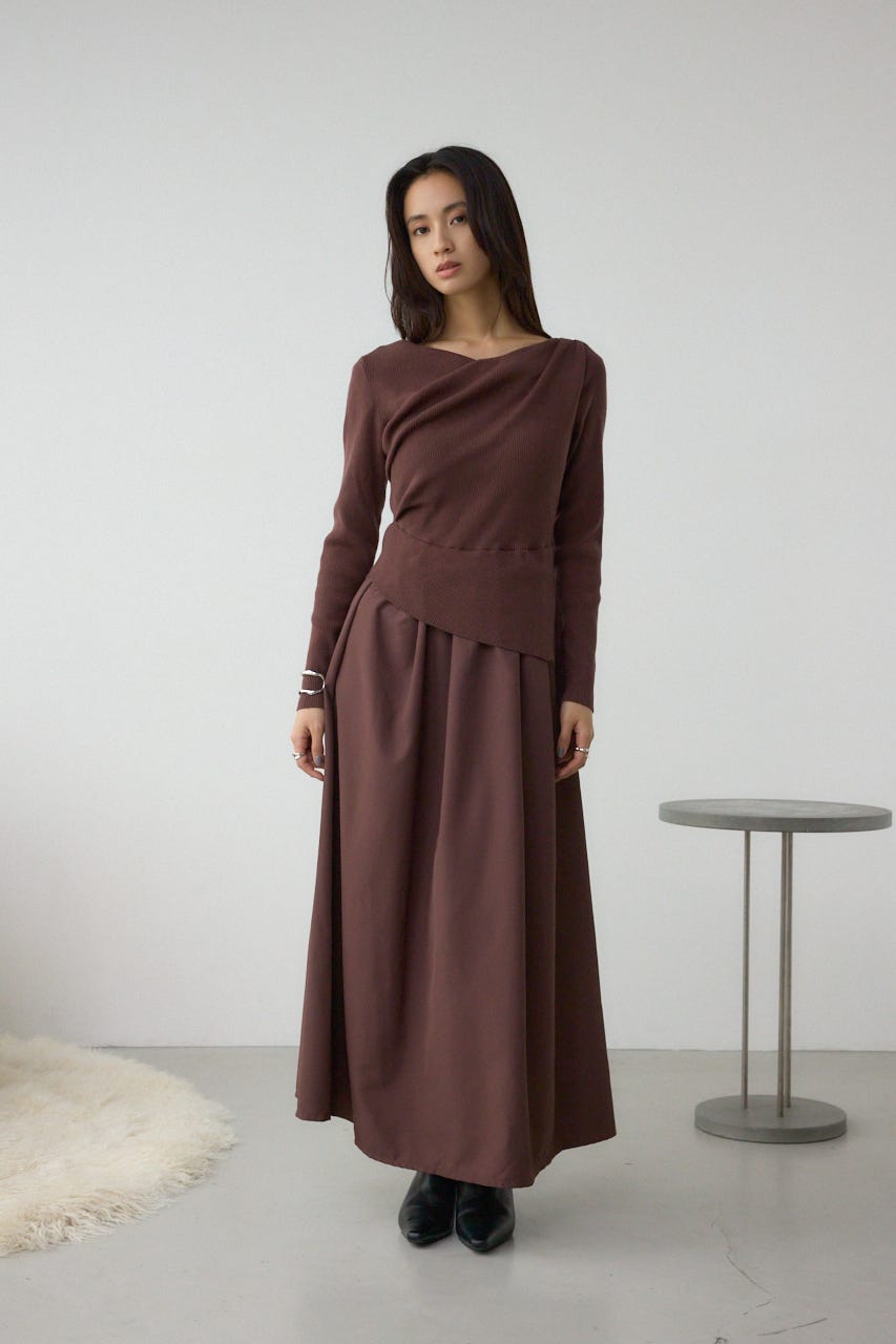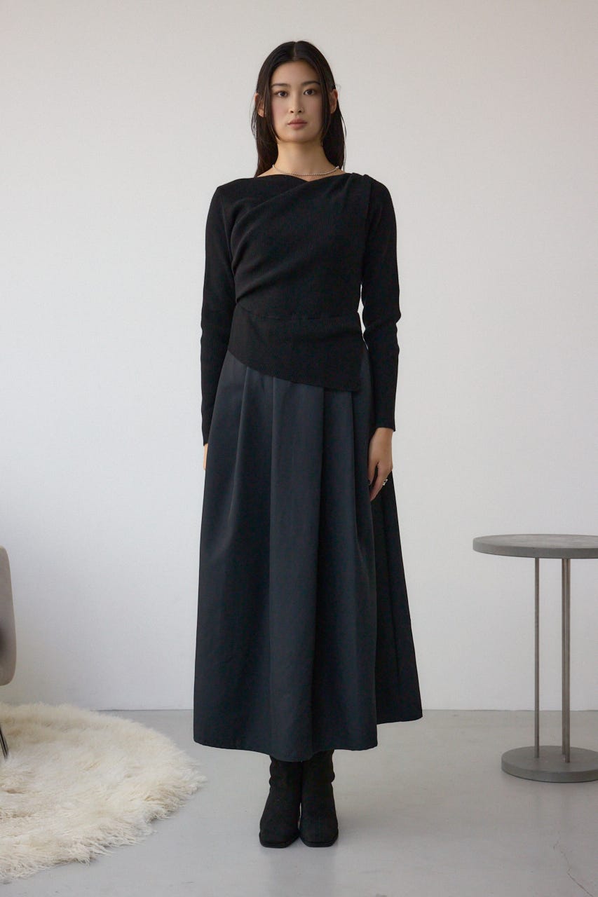 異素材ドッキング×ドレープディテールで、1枚で“きれいめモード”が完成するニットワンピース。