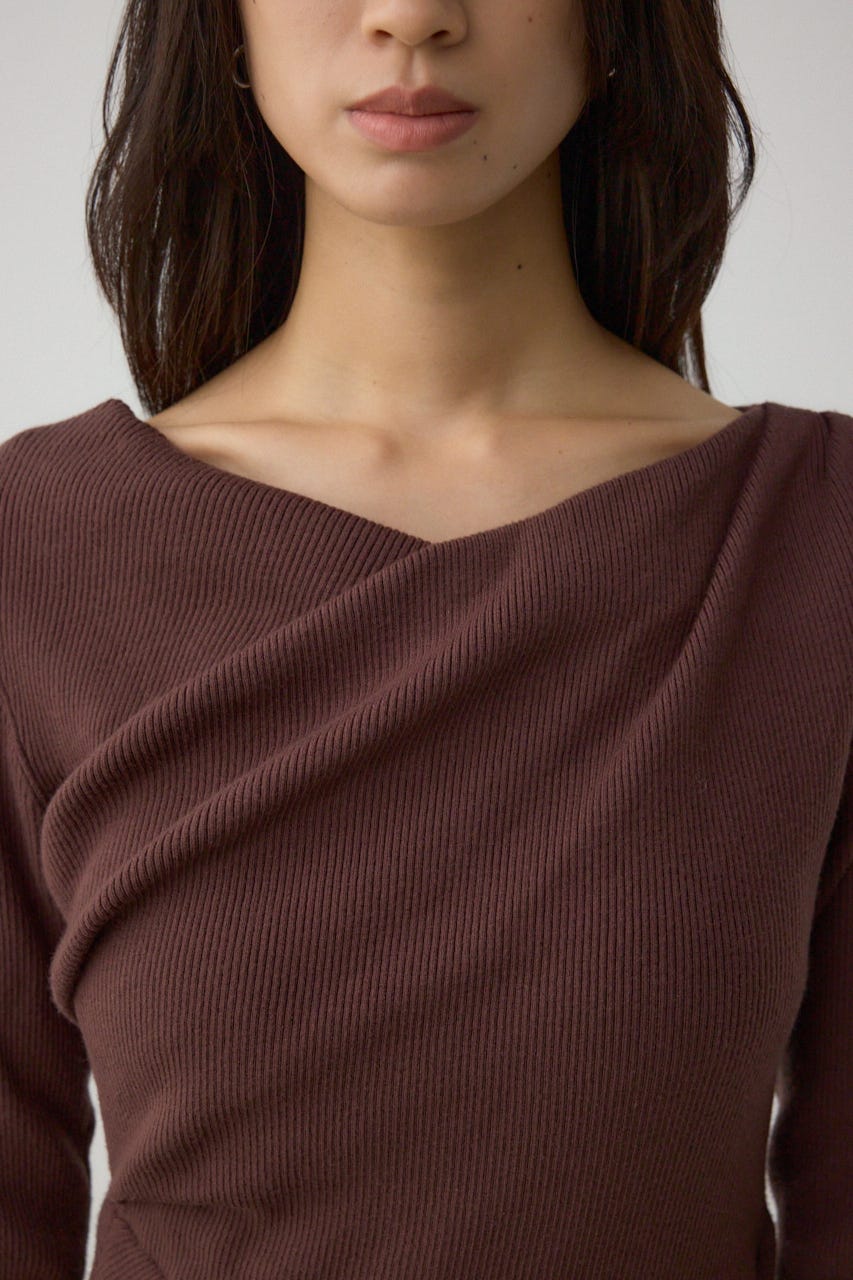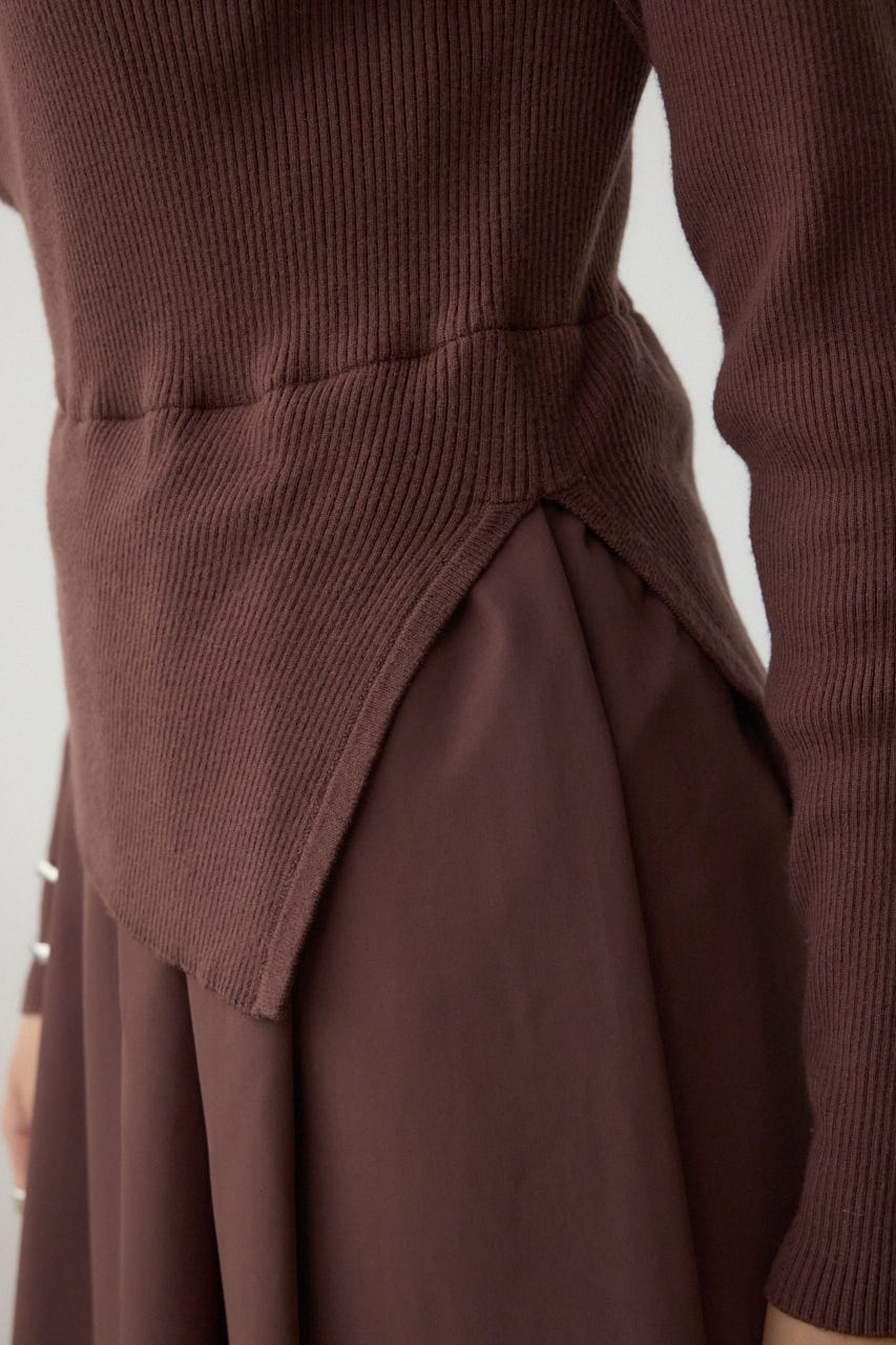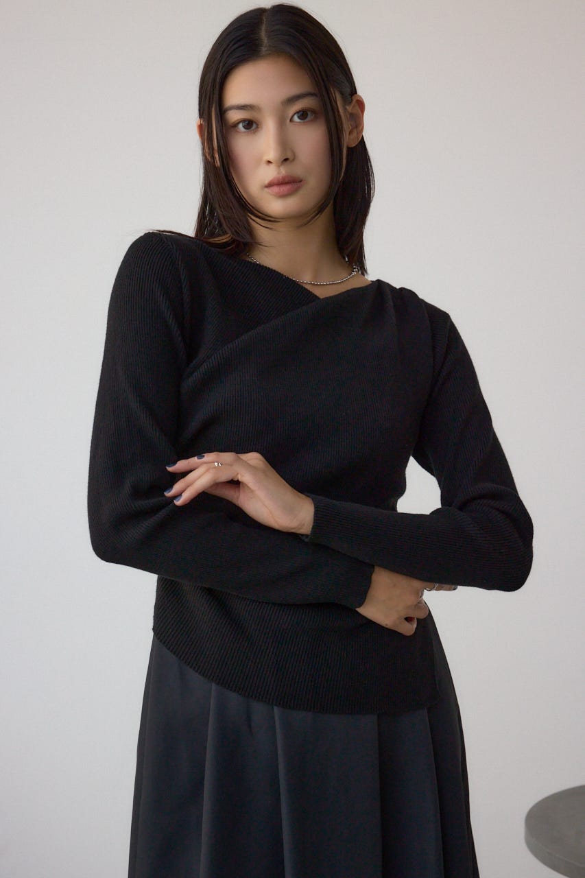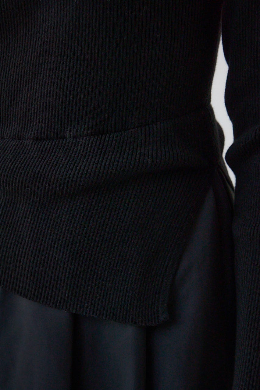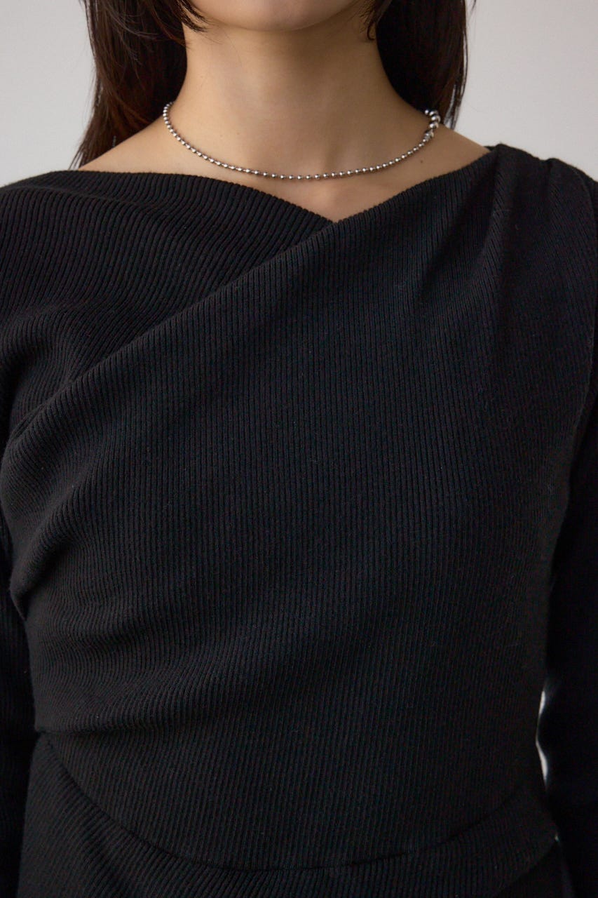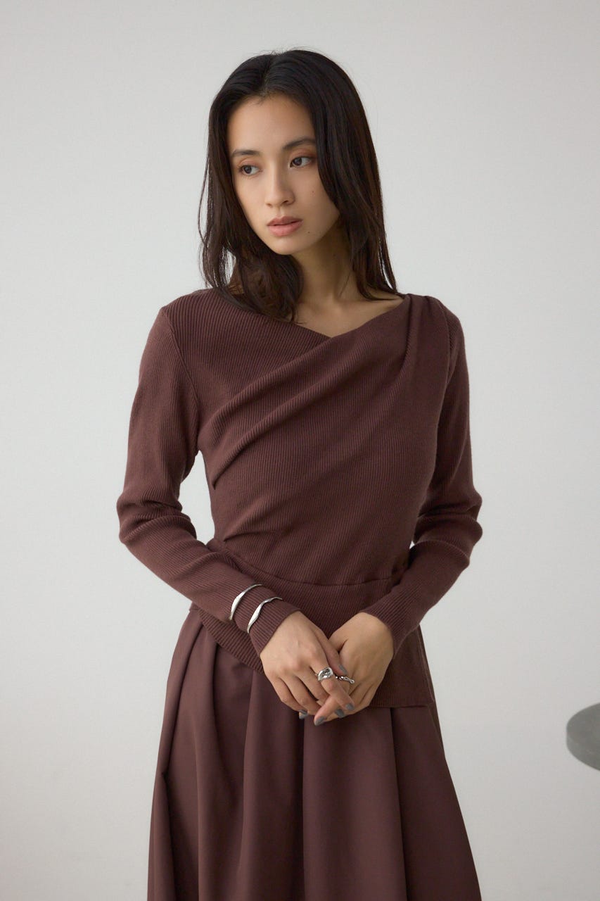 異素材ドッキング×ドレープディテールで、1枚で“きれいめモード”が完成するニットワンピース。