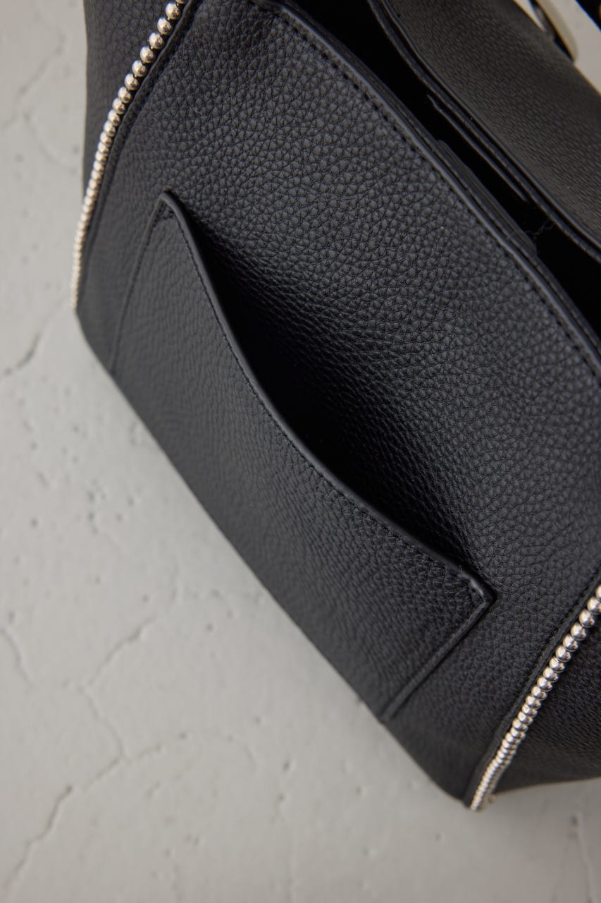 高級感のある表面感合成皮革とメタルパーツがアクセントの、上品で使いやすいミニトートバッグ。