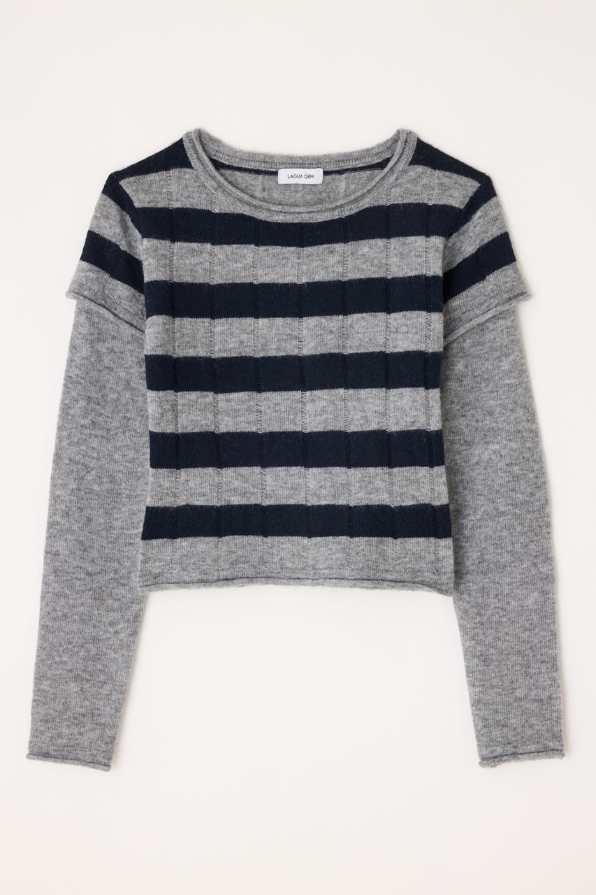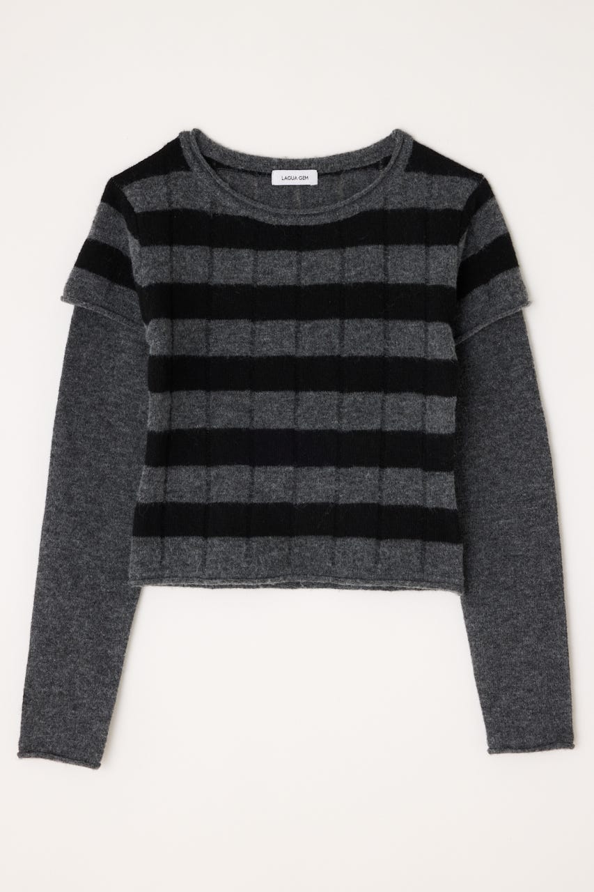 ※お届け時期:2026年1月中旬以降 ■POINT:レイヤード風のデザインでボーダ一がトレンド感をプラスできるトップス。