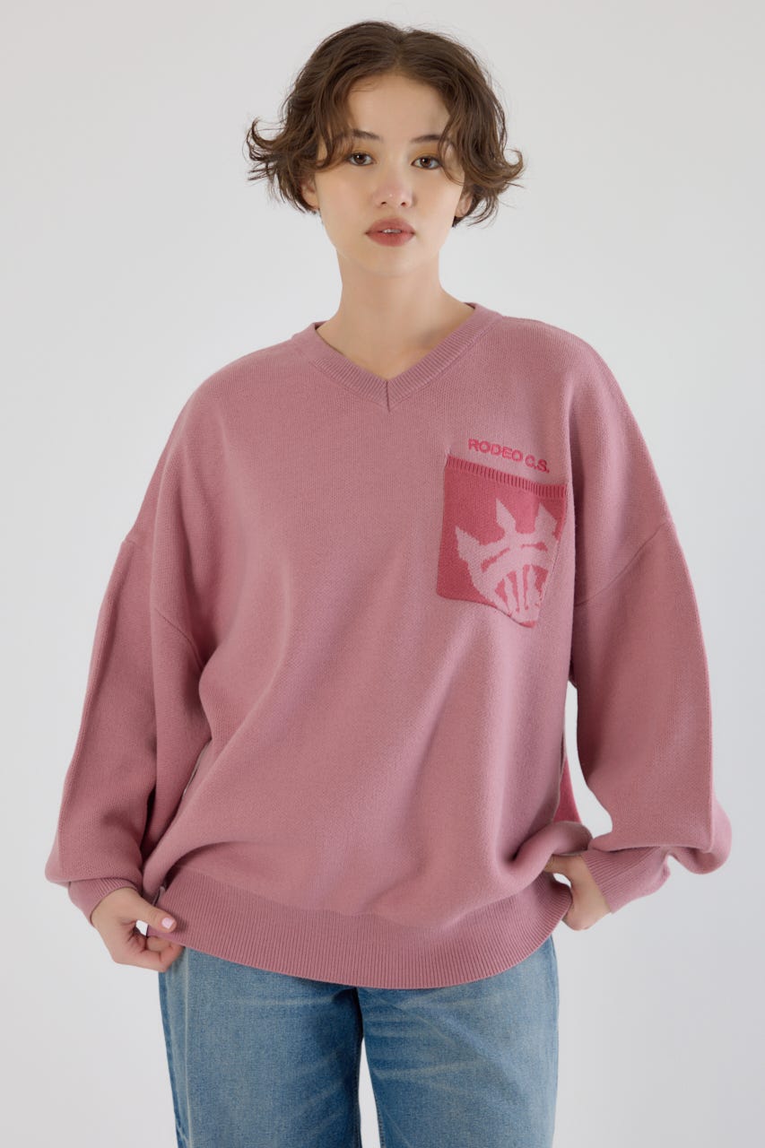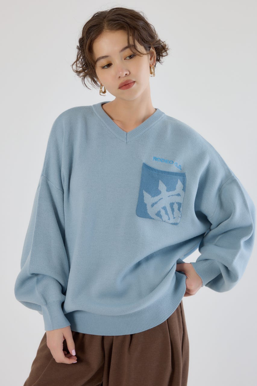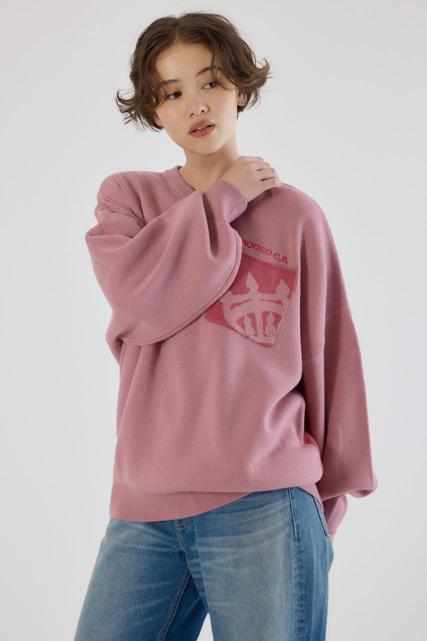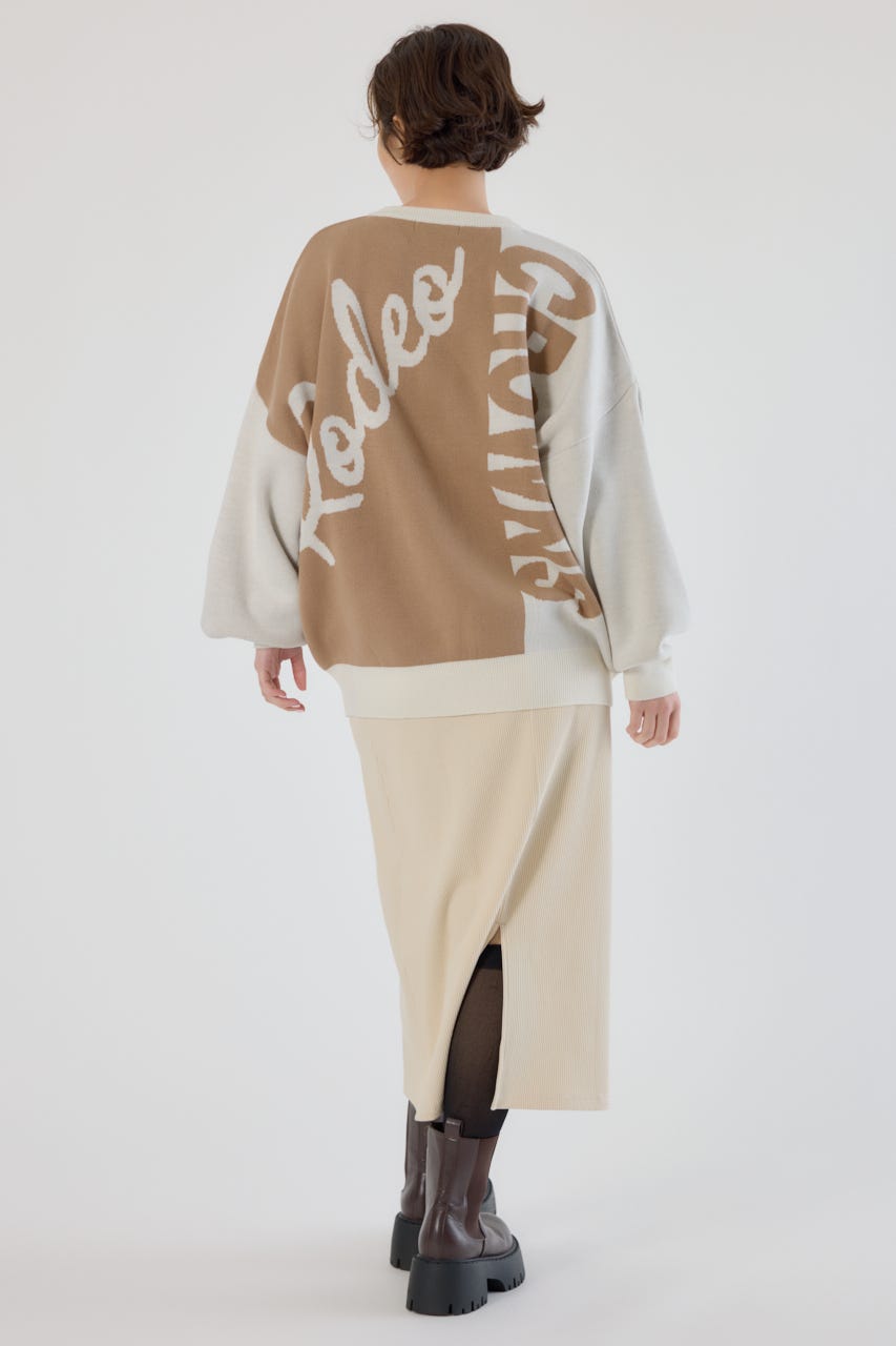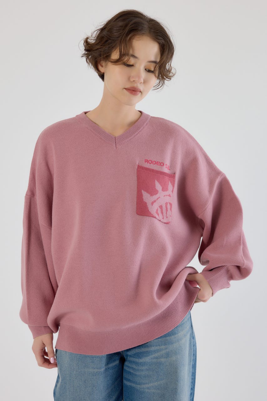 フロントには配色のポケット、バックは大胆なバイカラー仕様がRODEOらしいこだわりのニットトップスです。