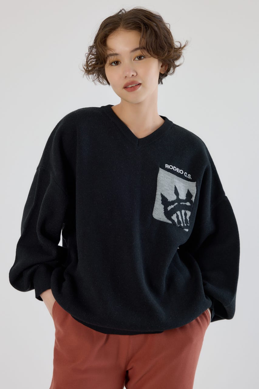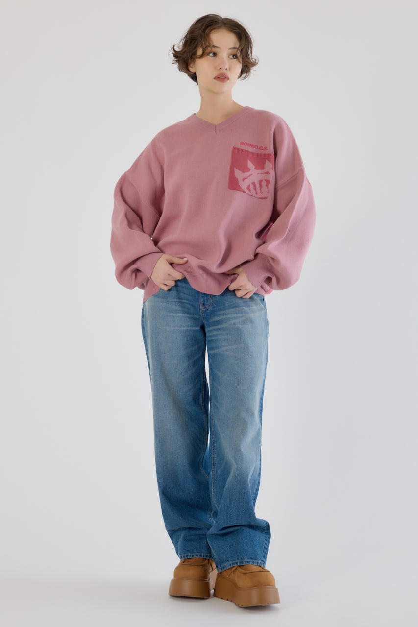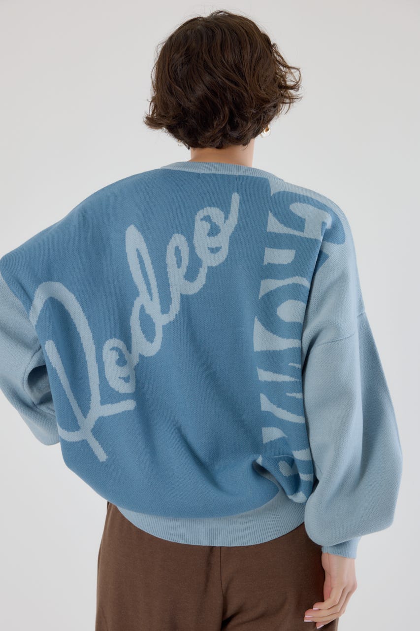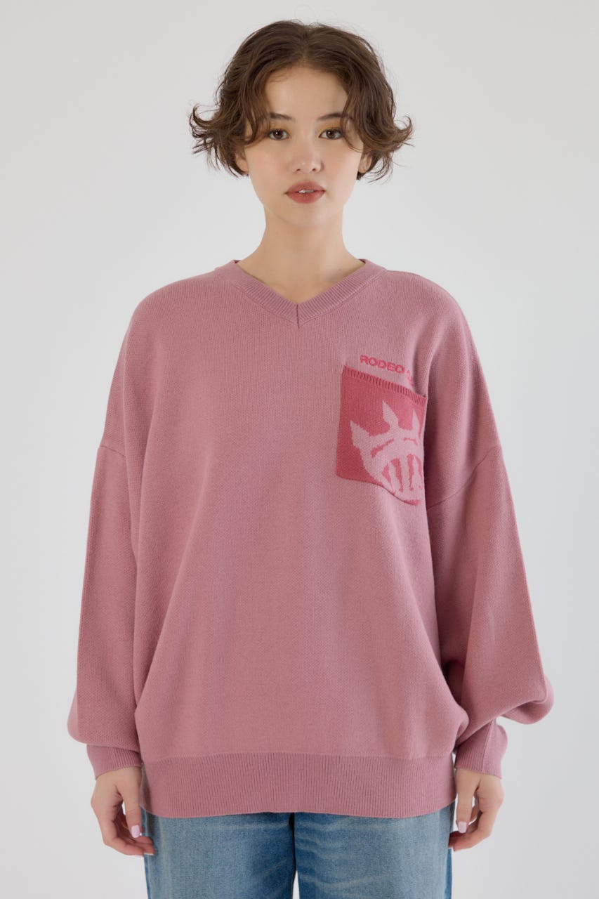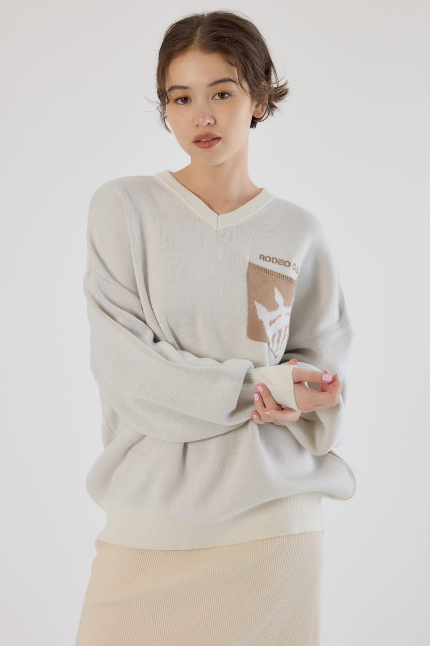 フロントには配色のポケット、バックは大胆なバイカラー仕様がRODEOらしいこだわりのニットトップスです。