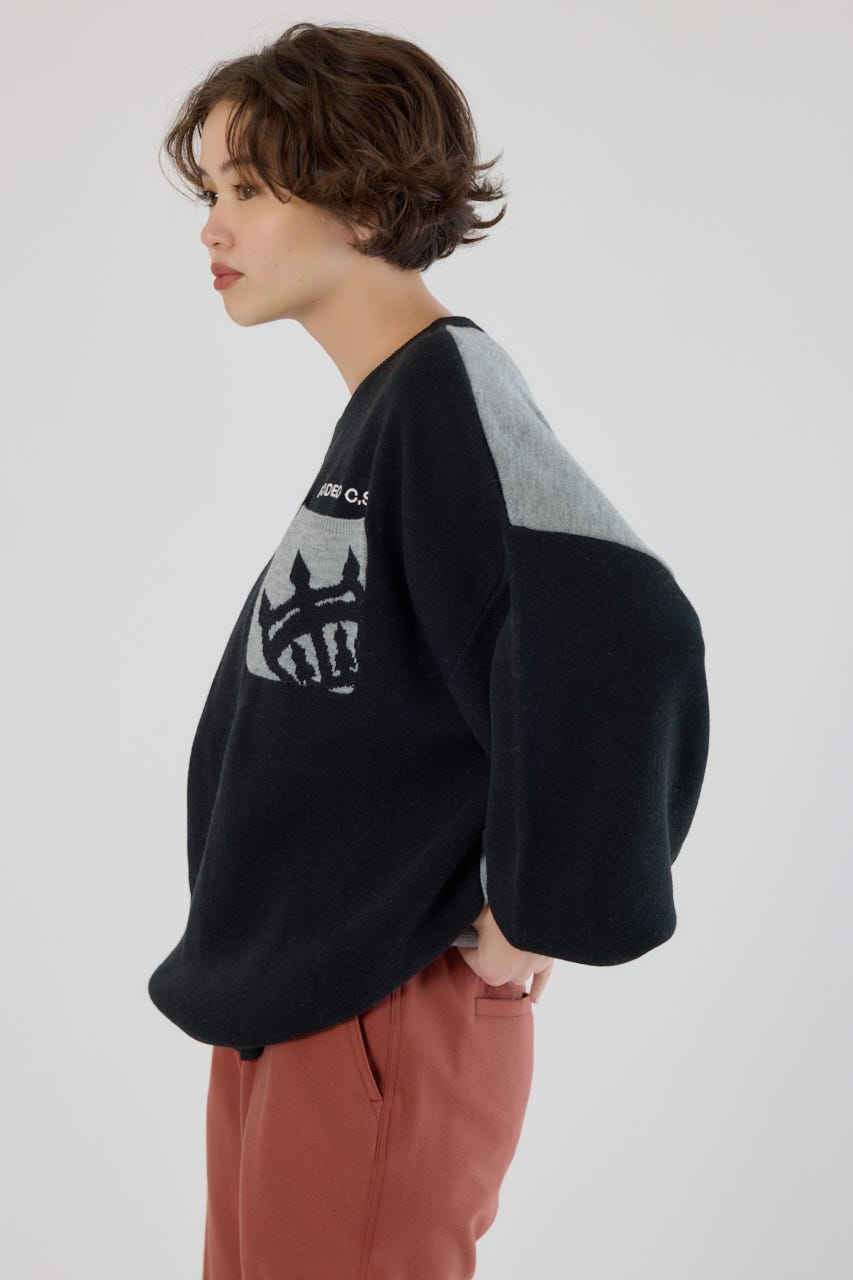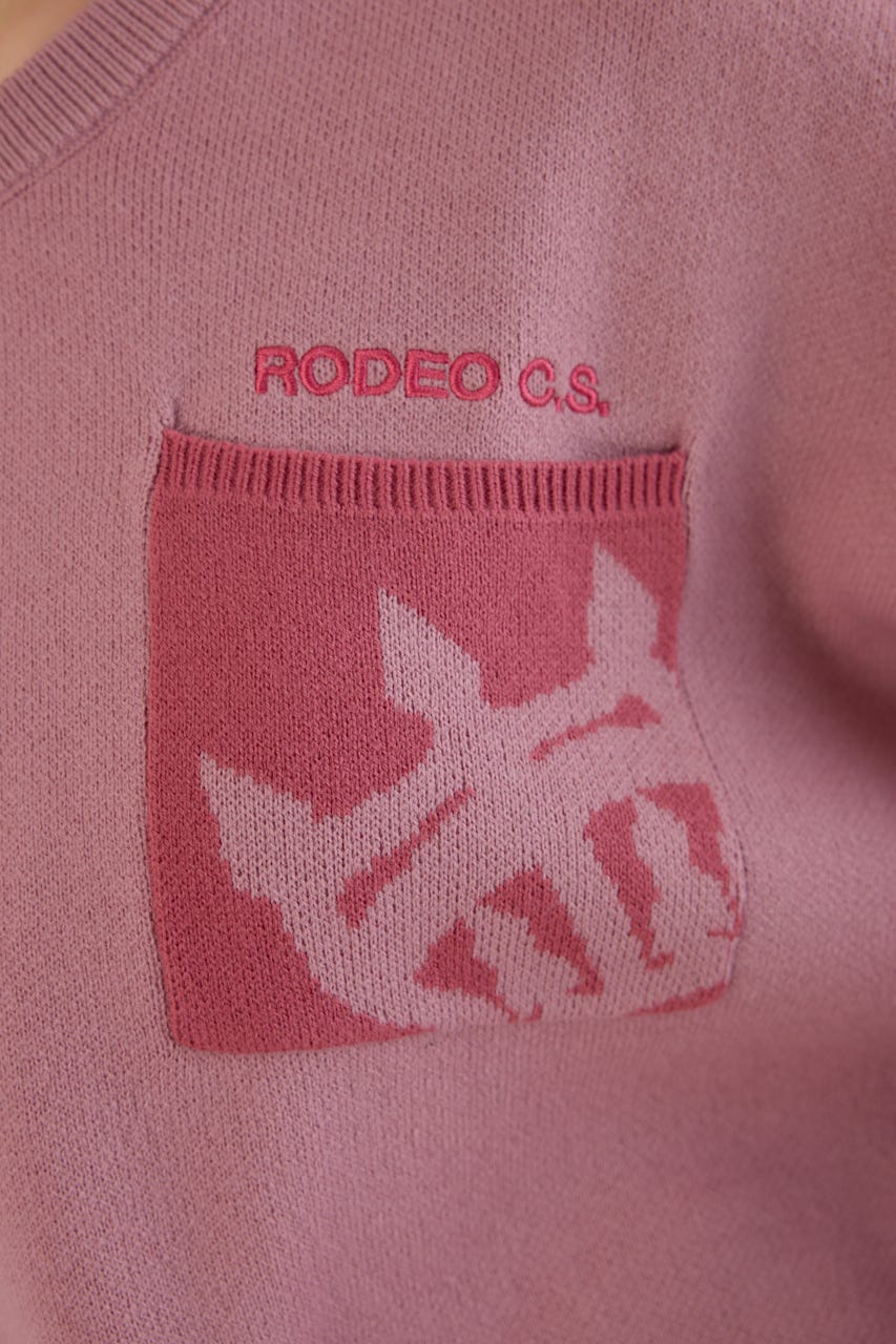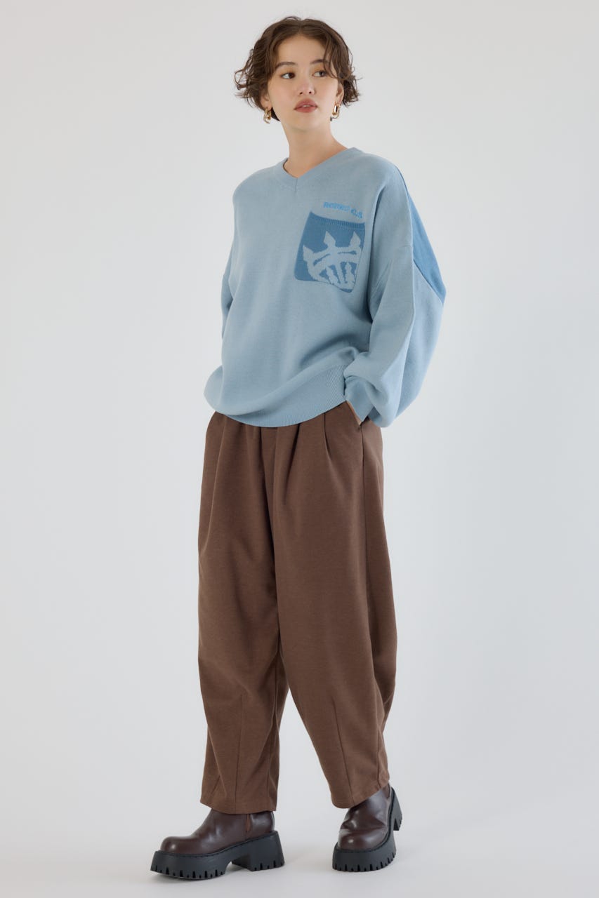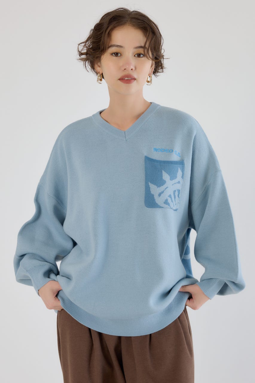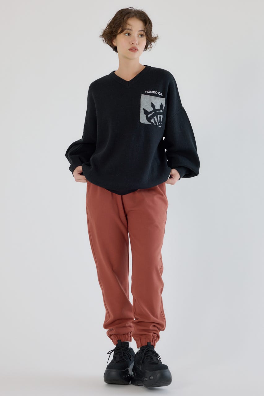 フロントには配色のポケット、バックは大胆なバイカラー仕様がRODEOらしいこだわりのニットトップスです。
