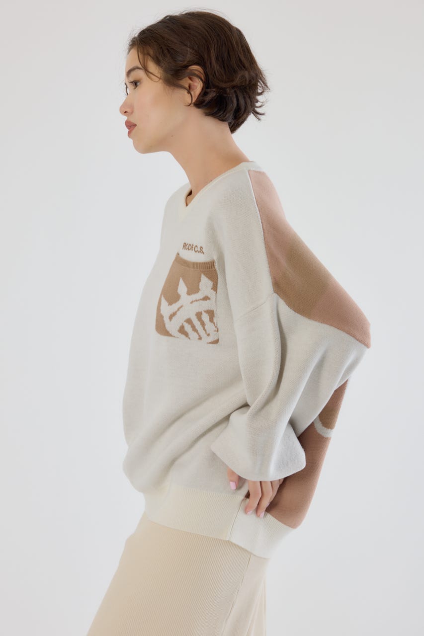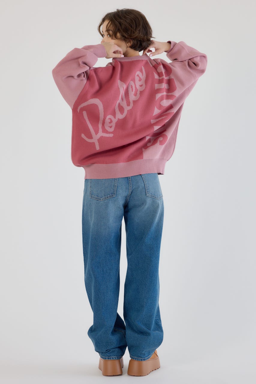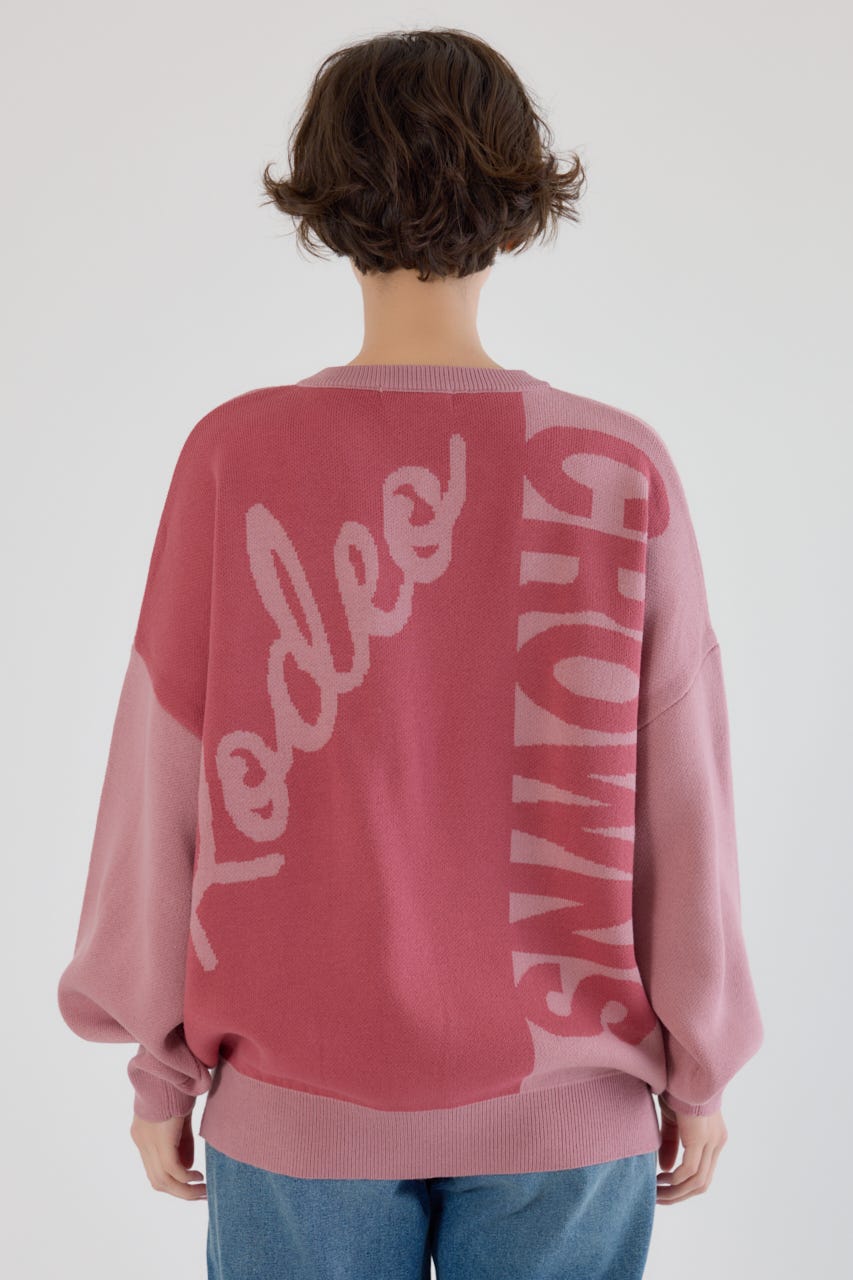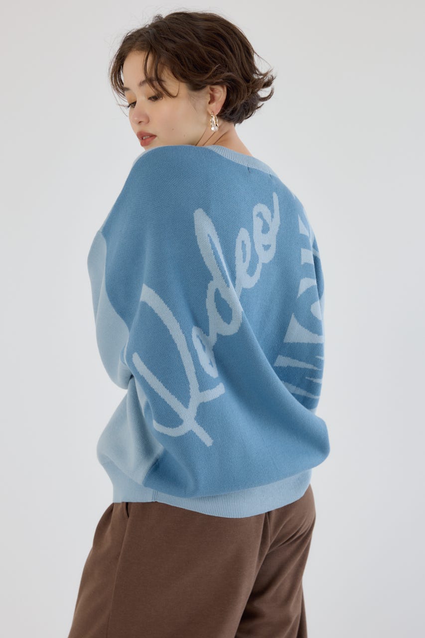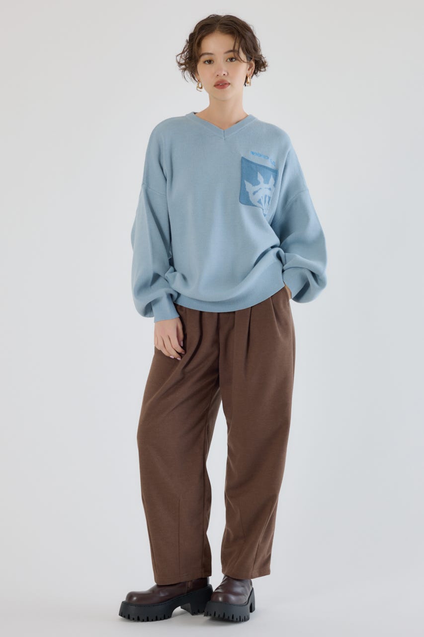 フロントには配色のポケット、バックは大胆なバイカラー仕様がRODEOらしいこだわりのニットトップスです。