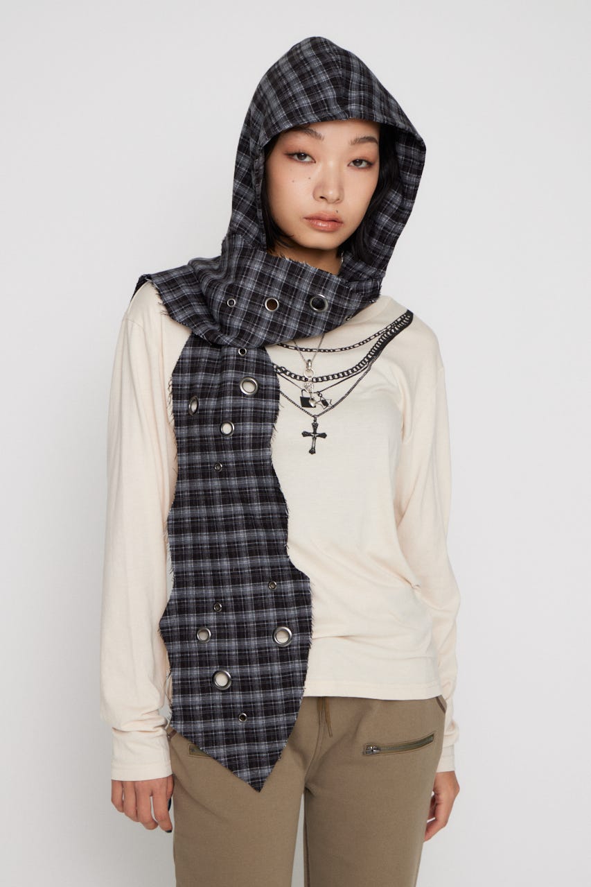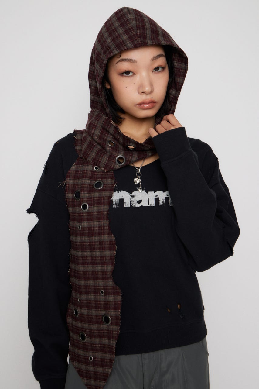 ■POINT:ギザギザにカットされたデザインに、アイレットがポイントになったフーディーストール。