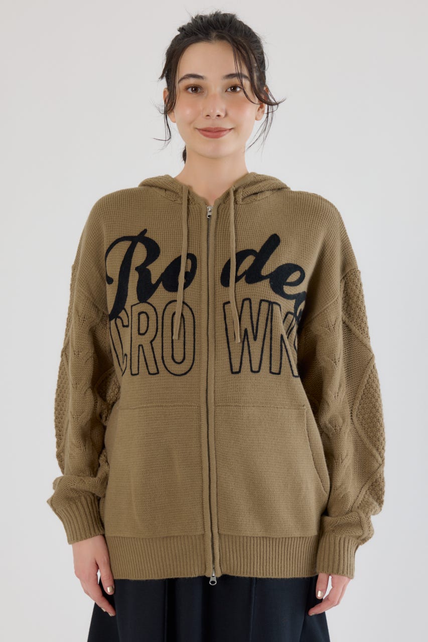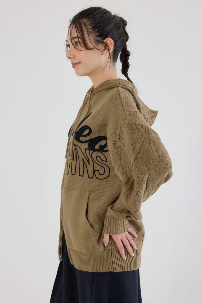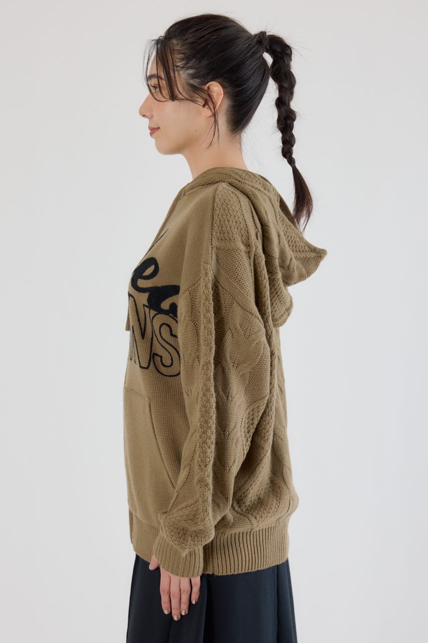 ロゴケーブルニットジップフーディー