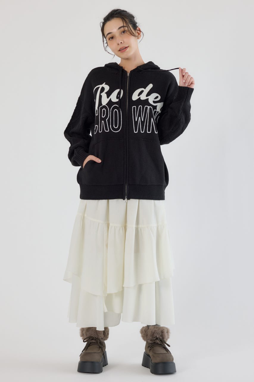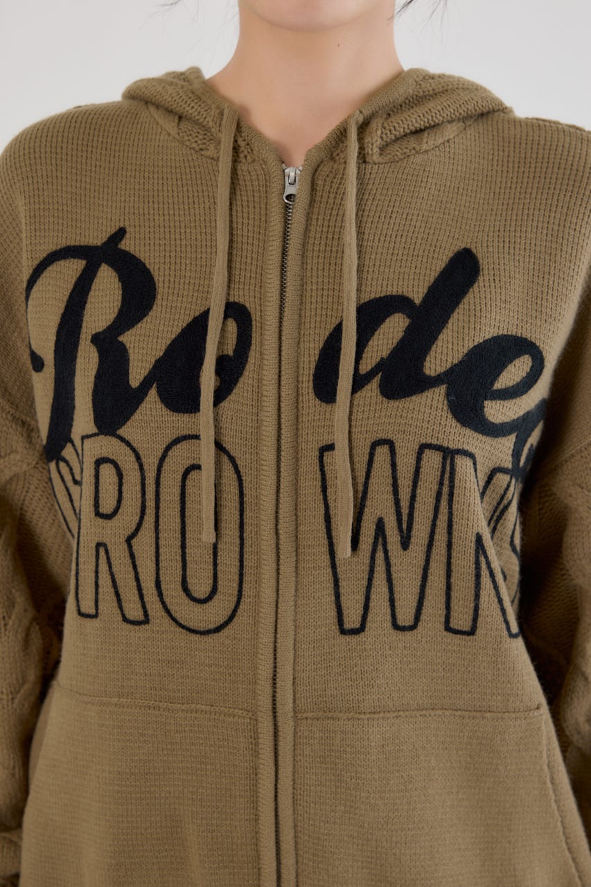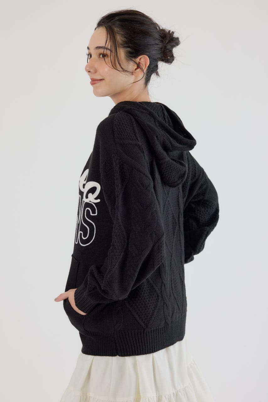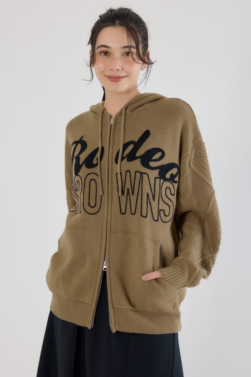 ロゴケーブルニットジップフーディー