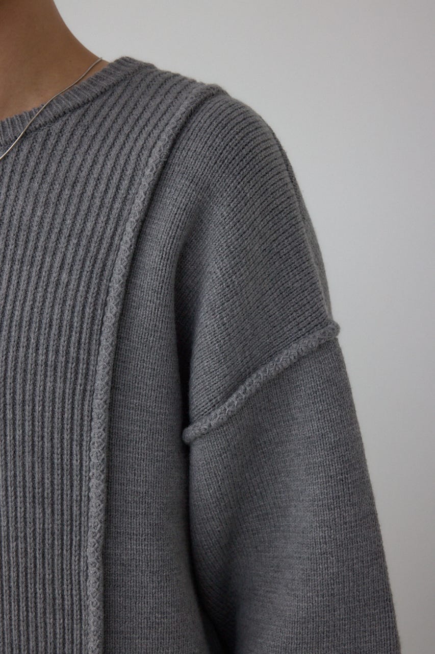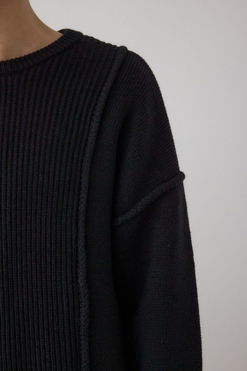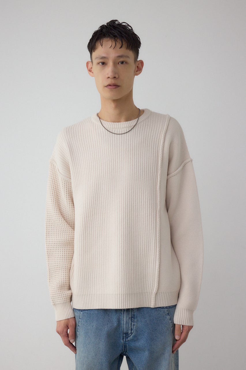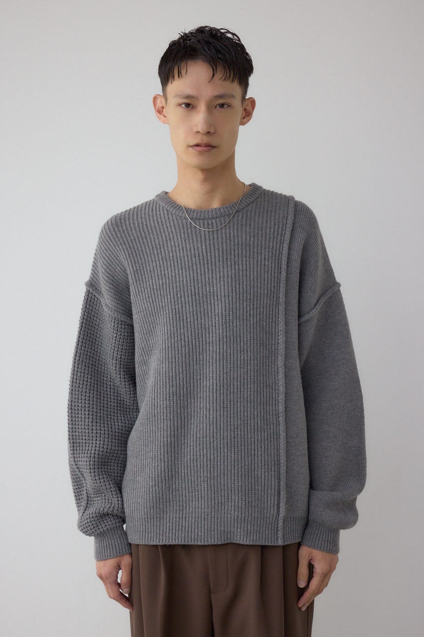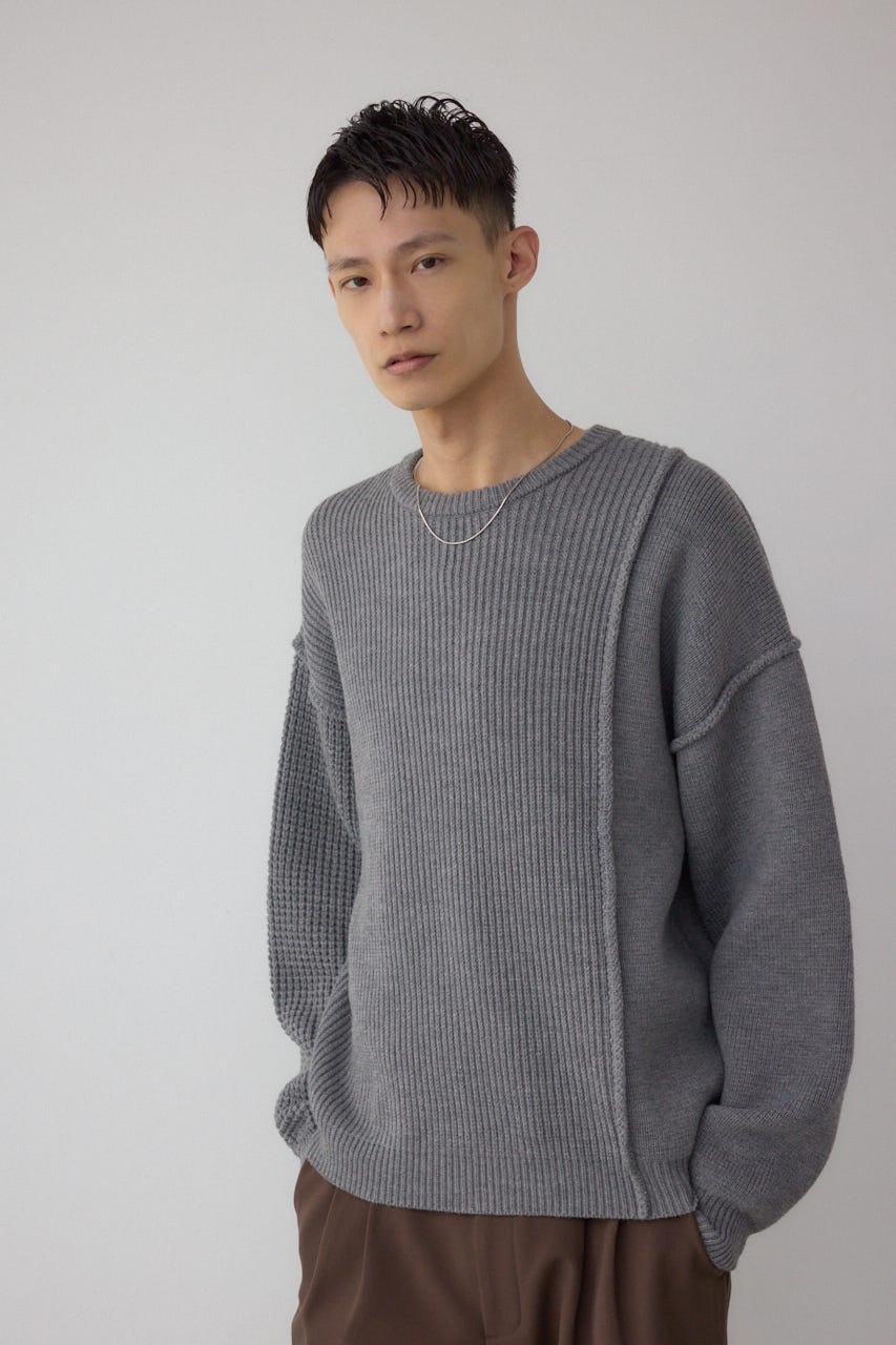 パッチワーク風の編み切り替えで表情豊かな、存在感のあるニットトップス。