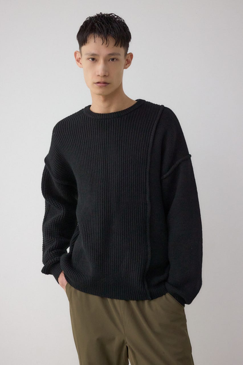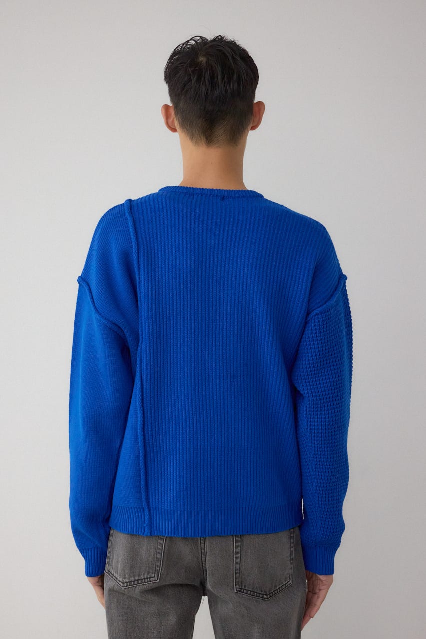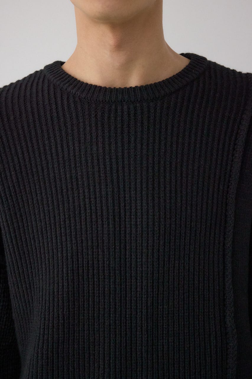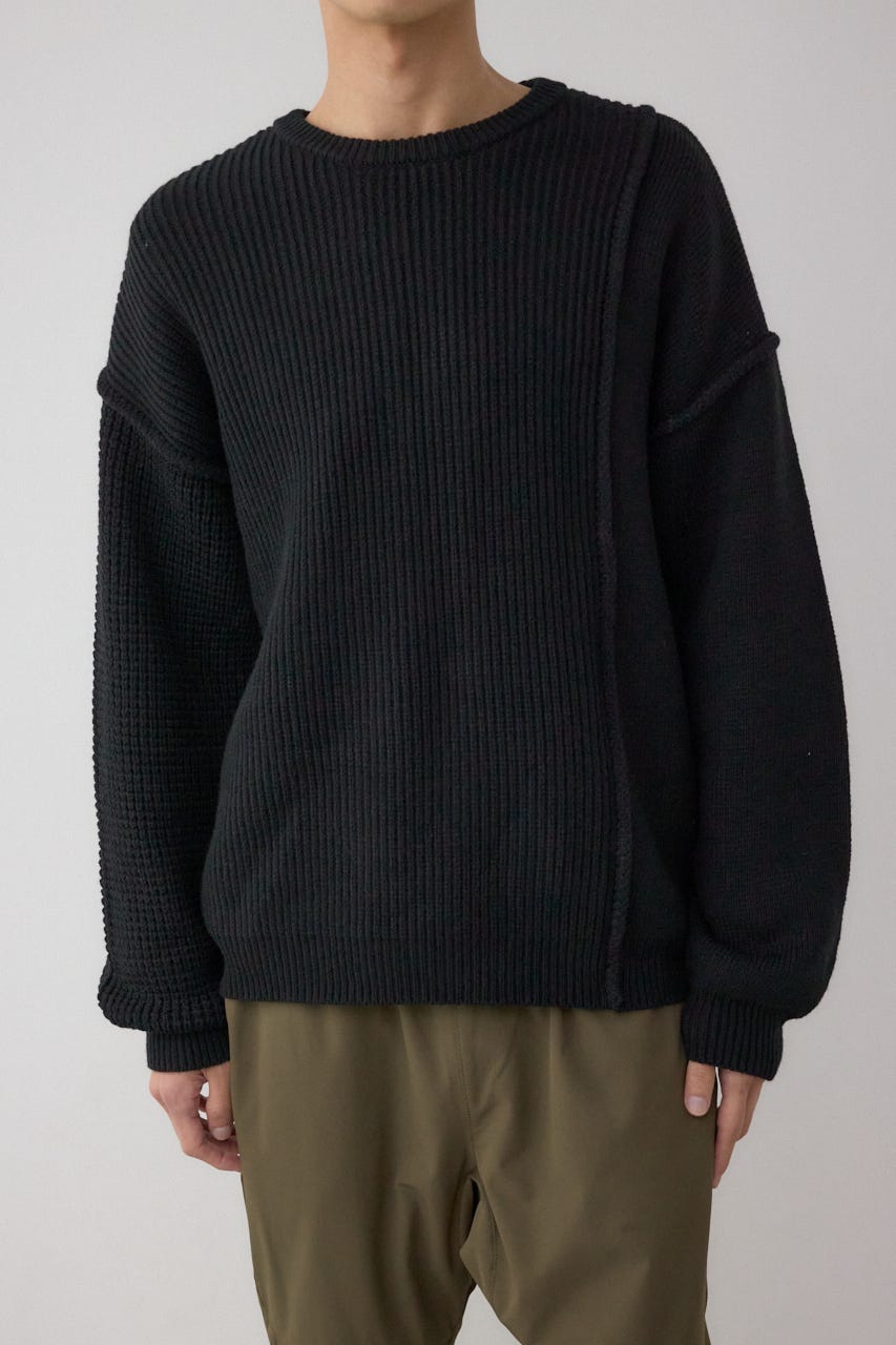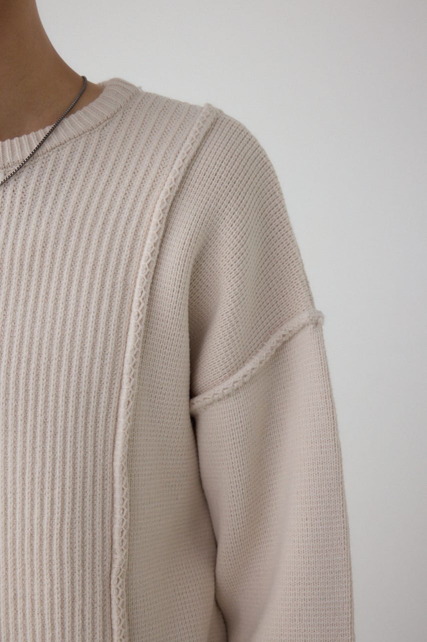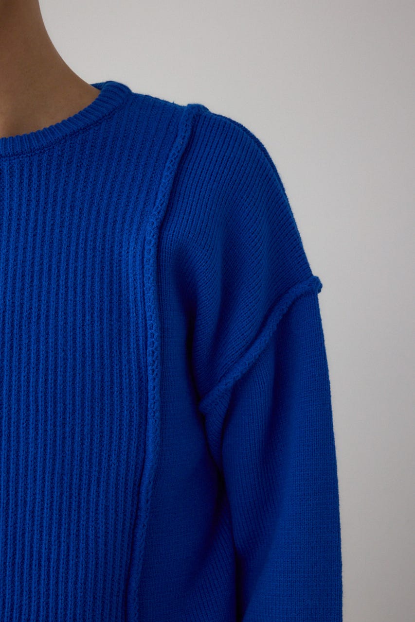 パッチワーク風の編み切り替えで表情豊かな、存在感のあるニットトップス。