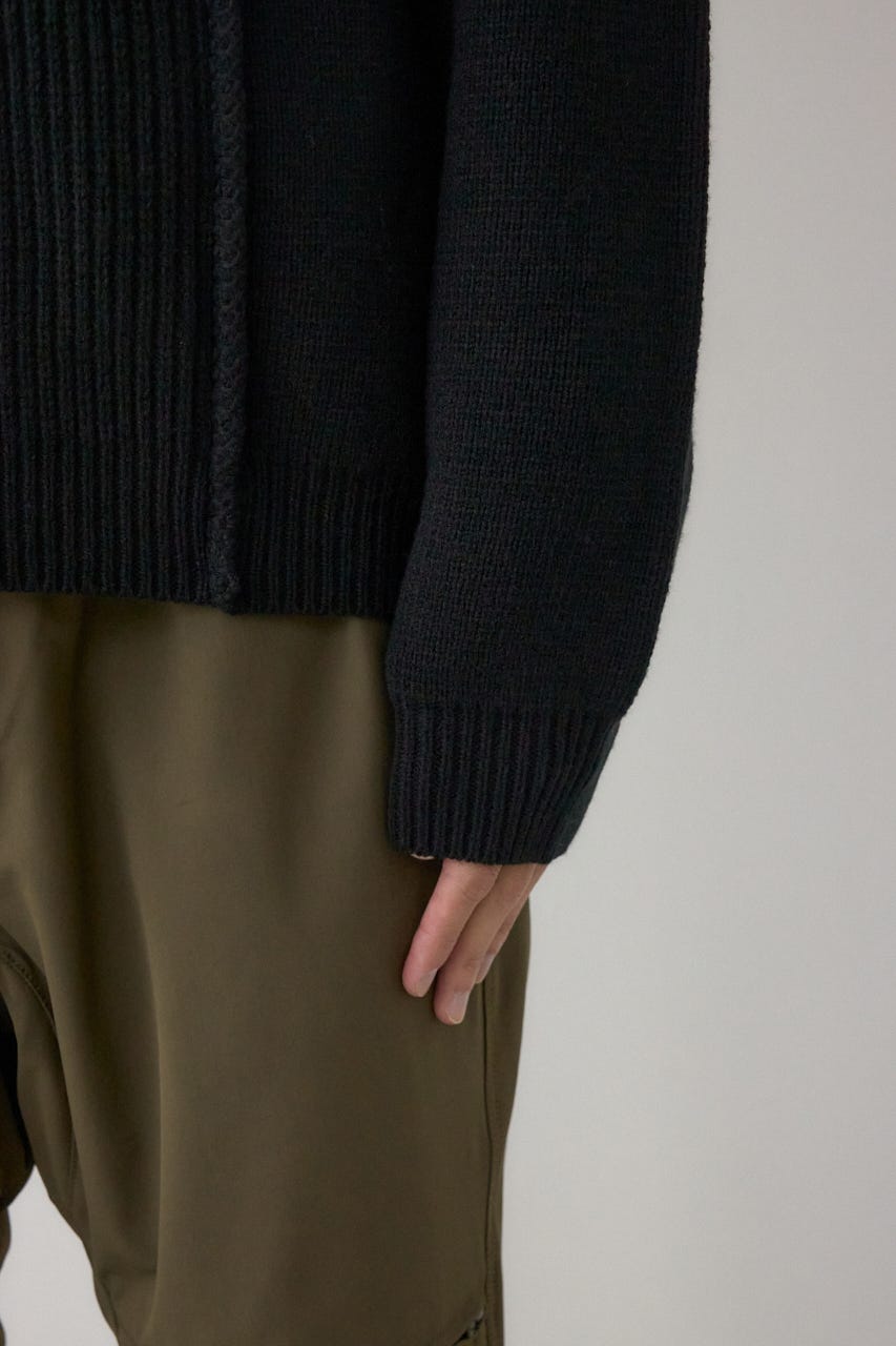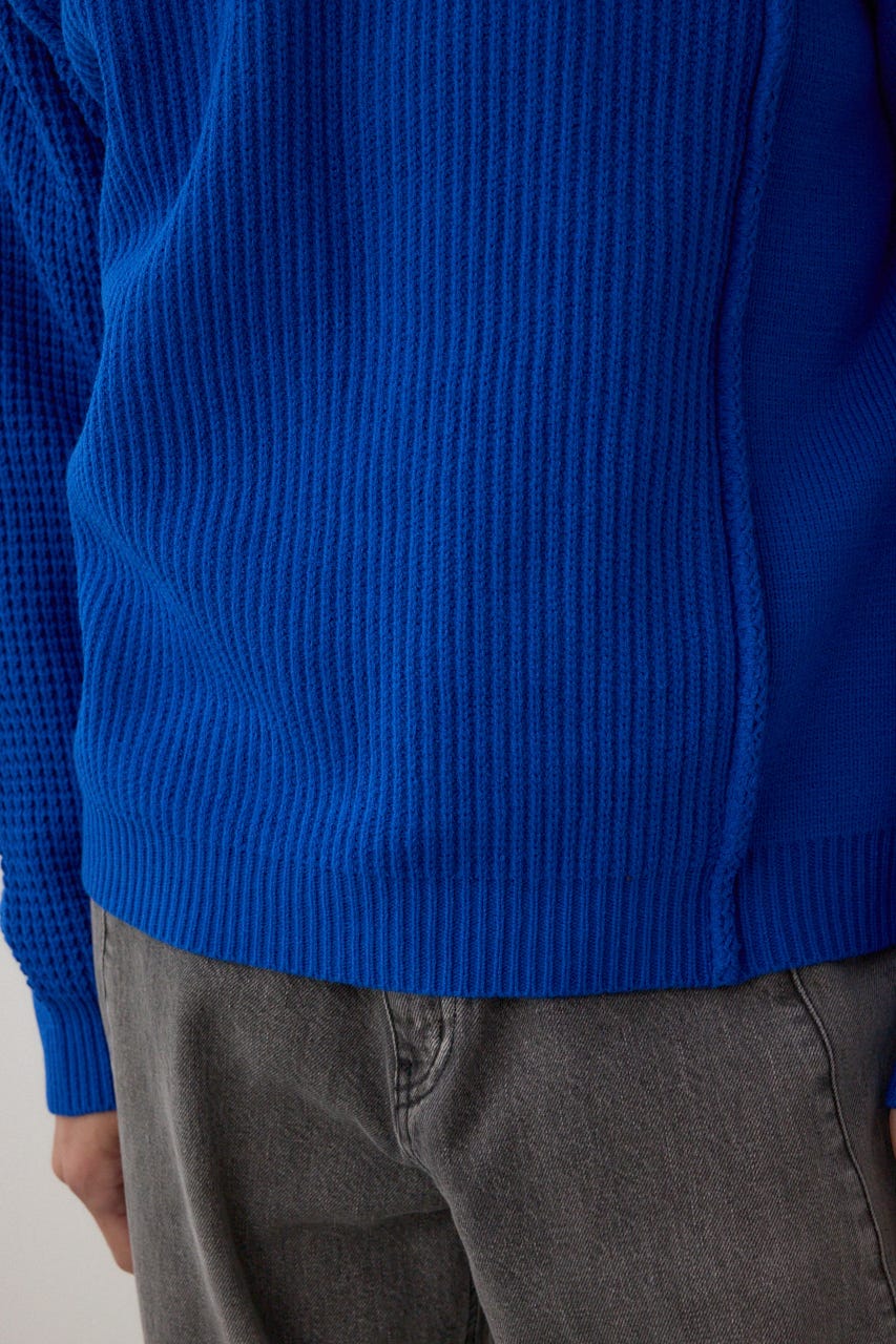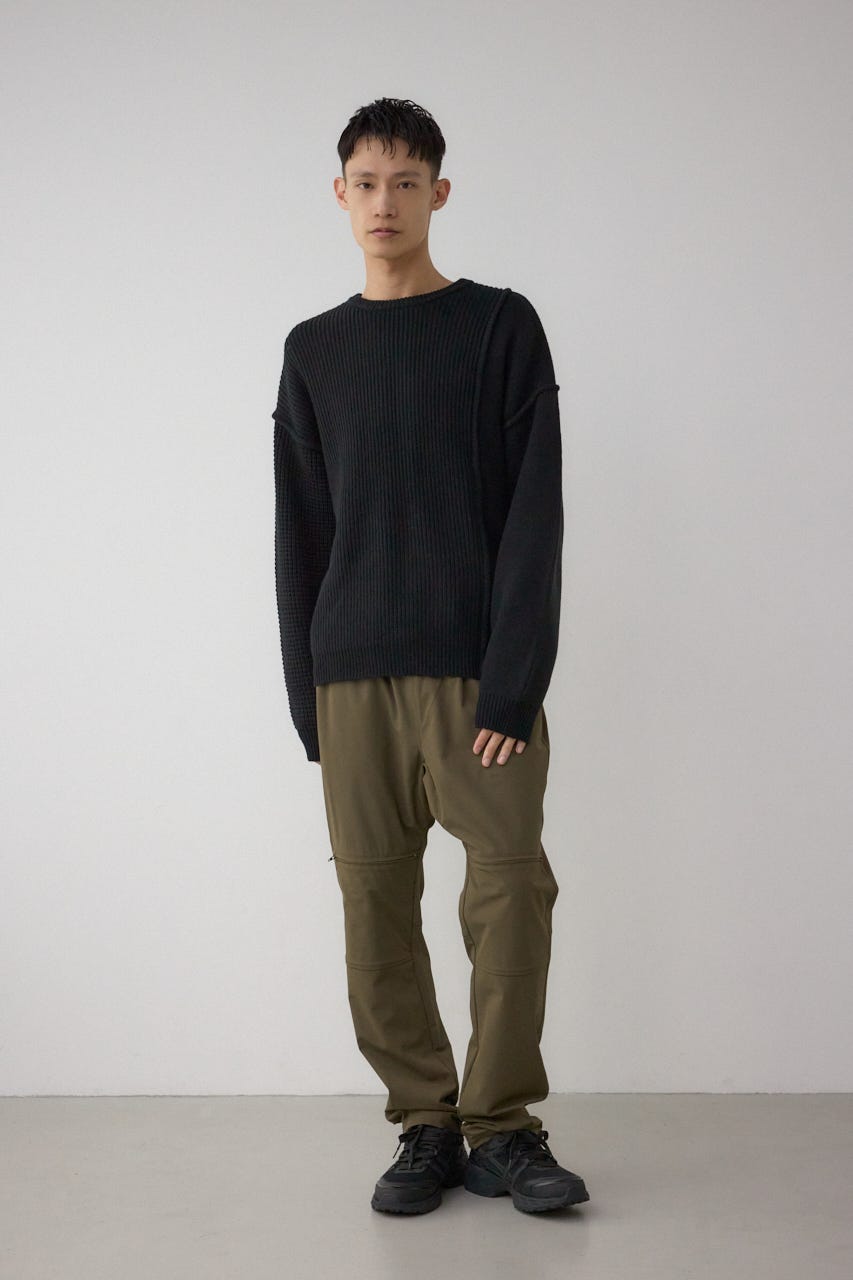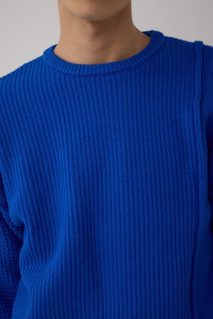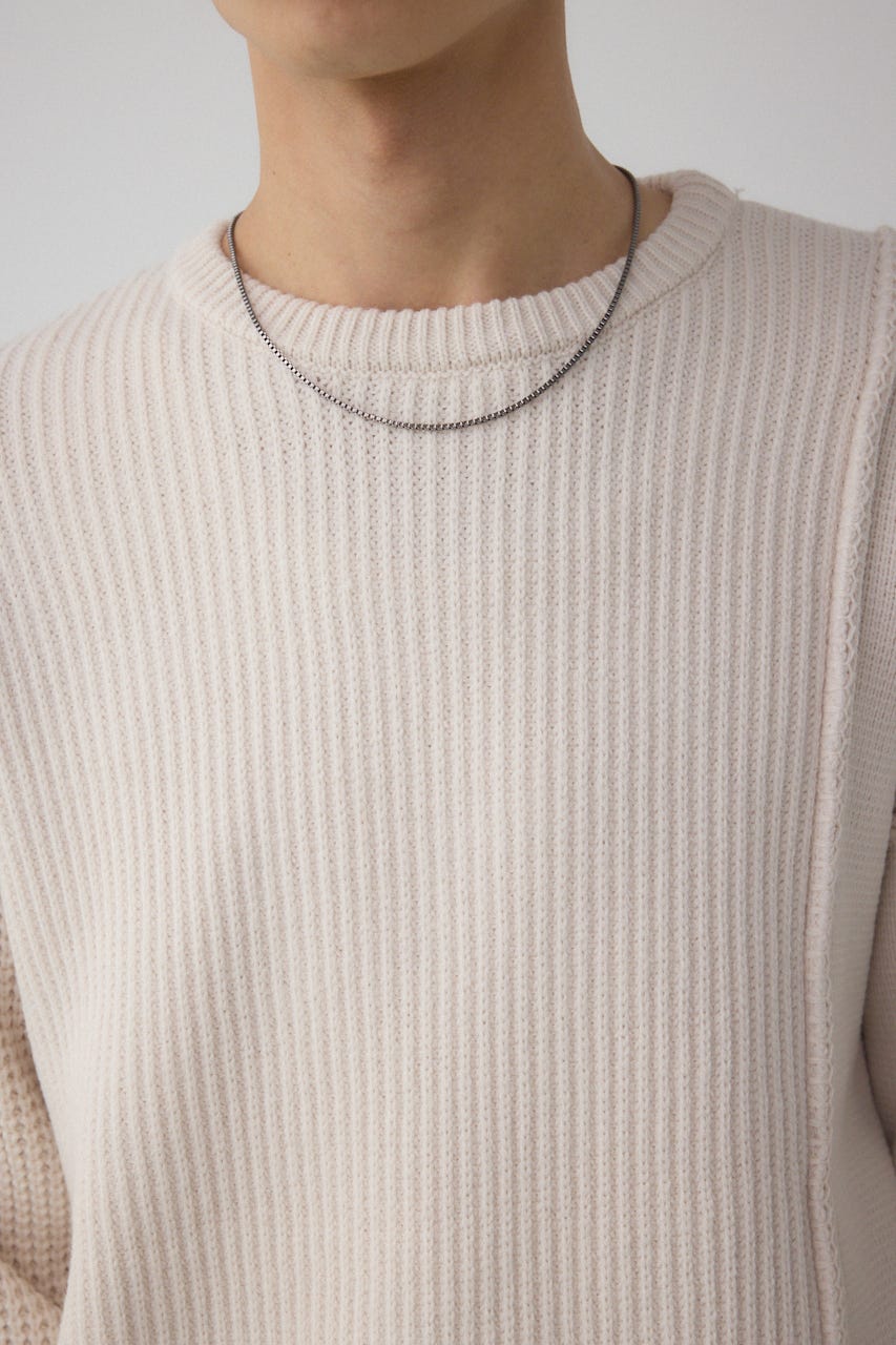 パッチワーク風の編み切り替えで表情豊かな、存在感のあるニットトップス。