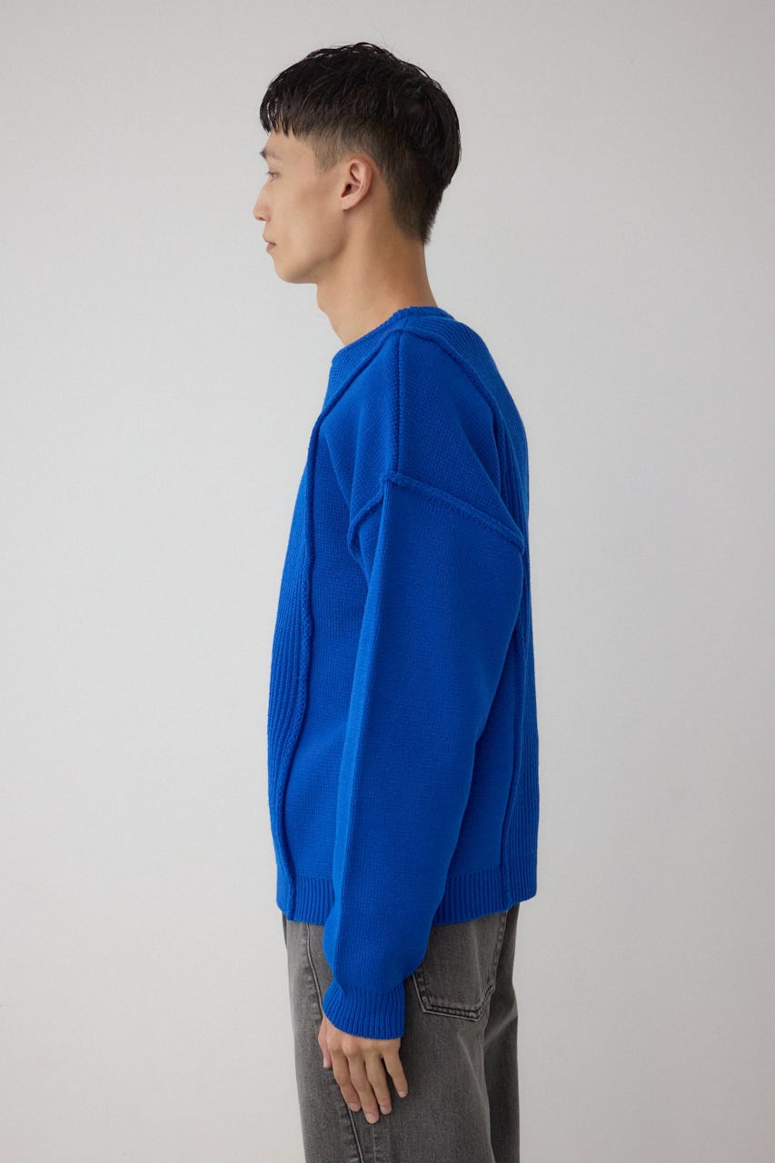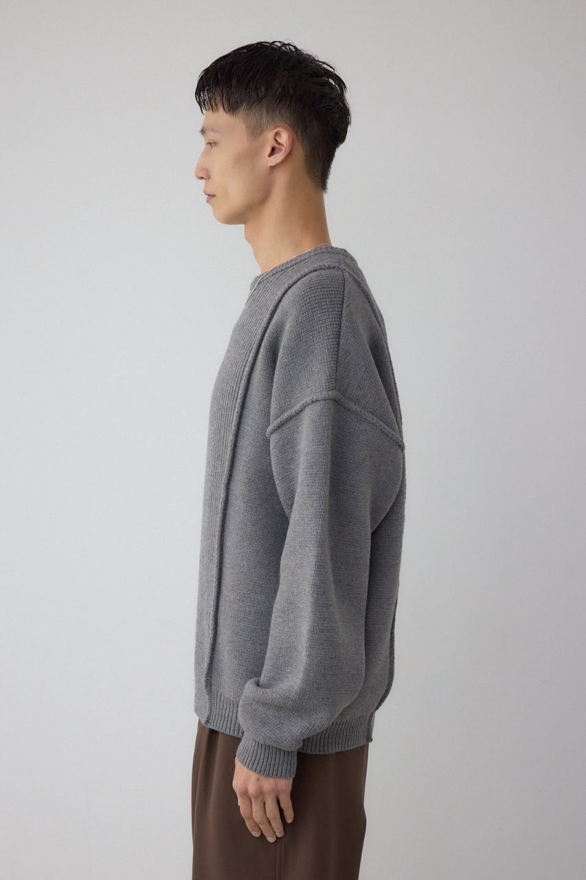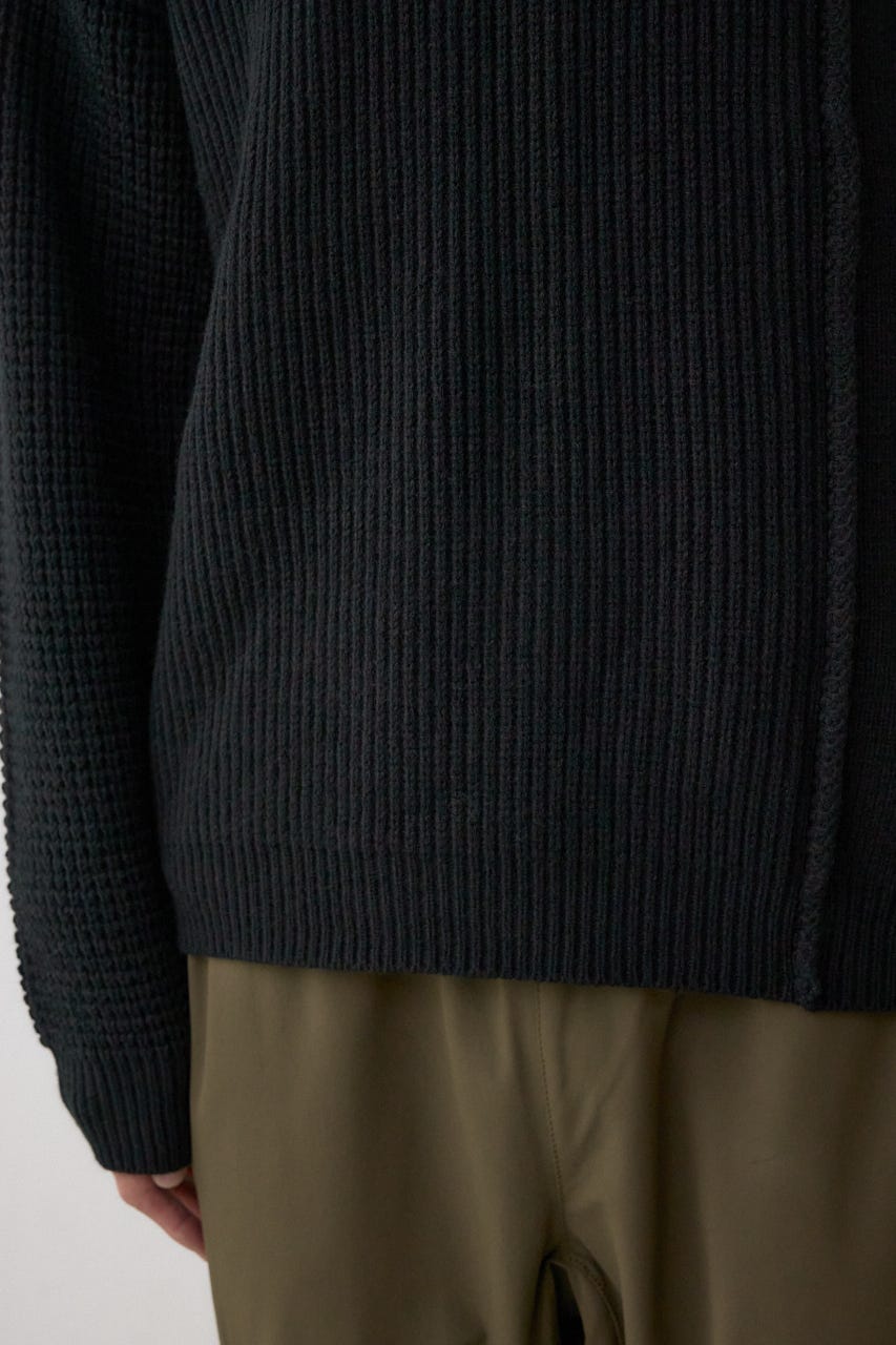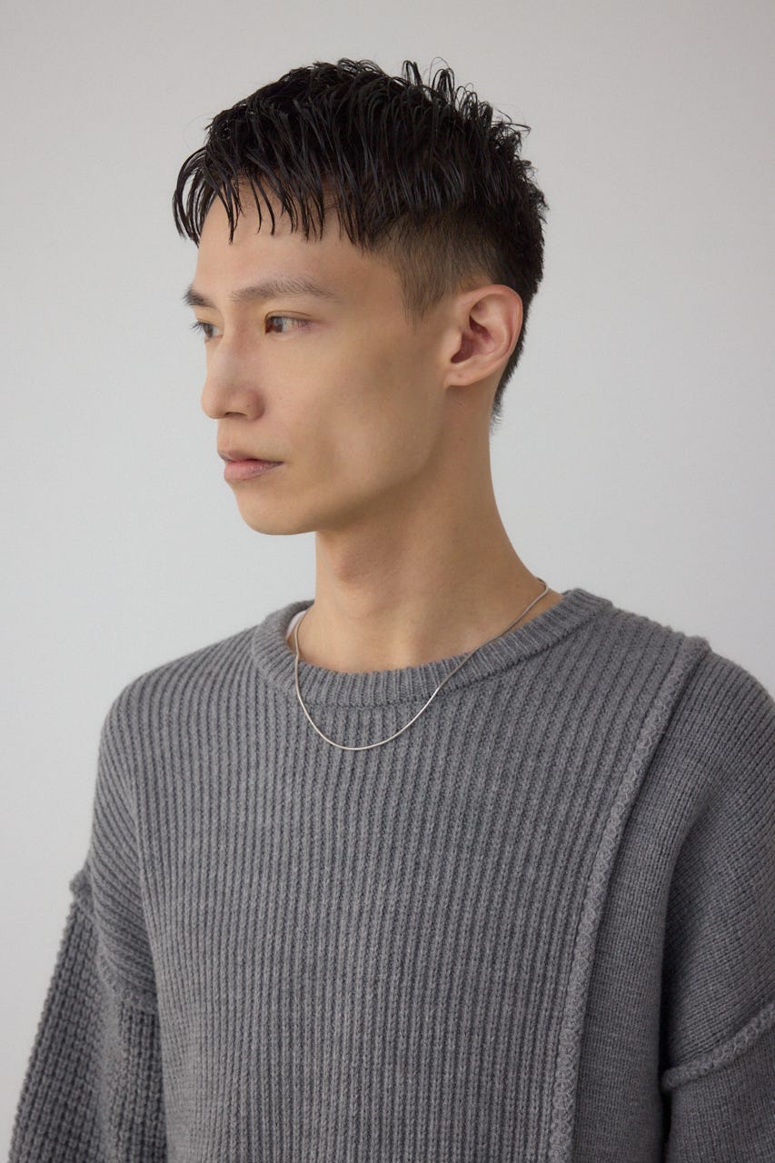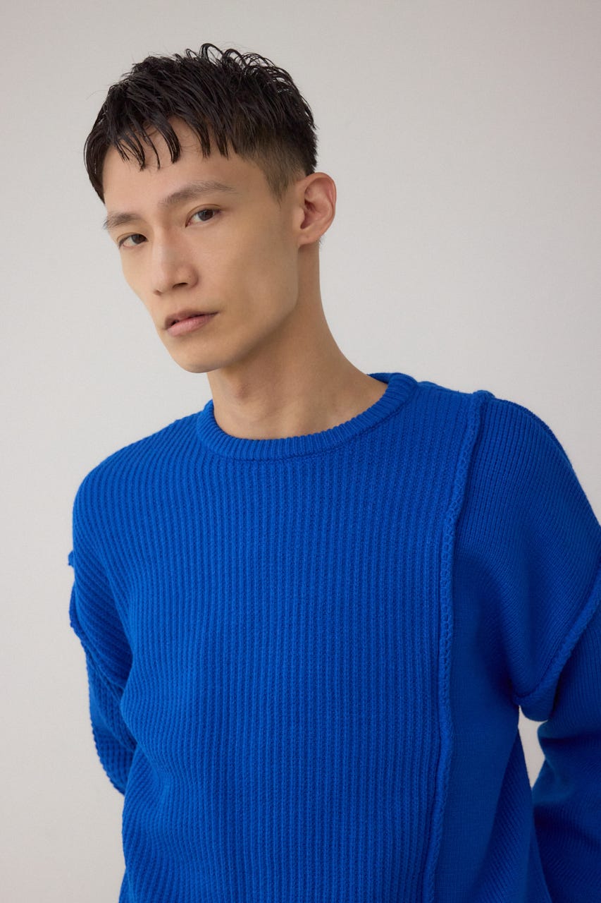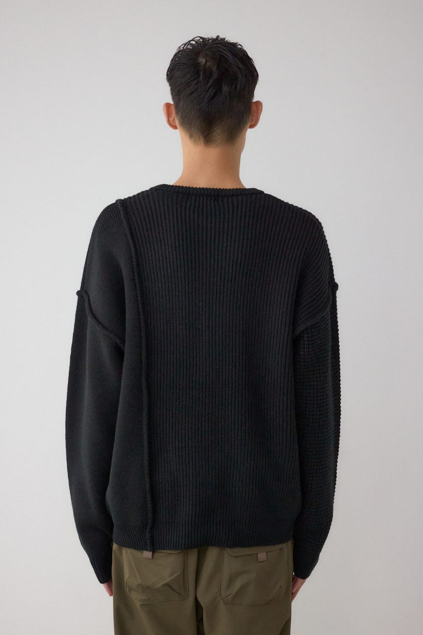 パッチワーク風の編み切り替えで表情豊かな、存在感のあるニットトップス。