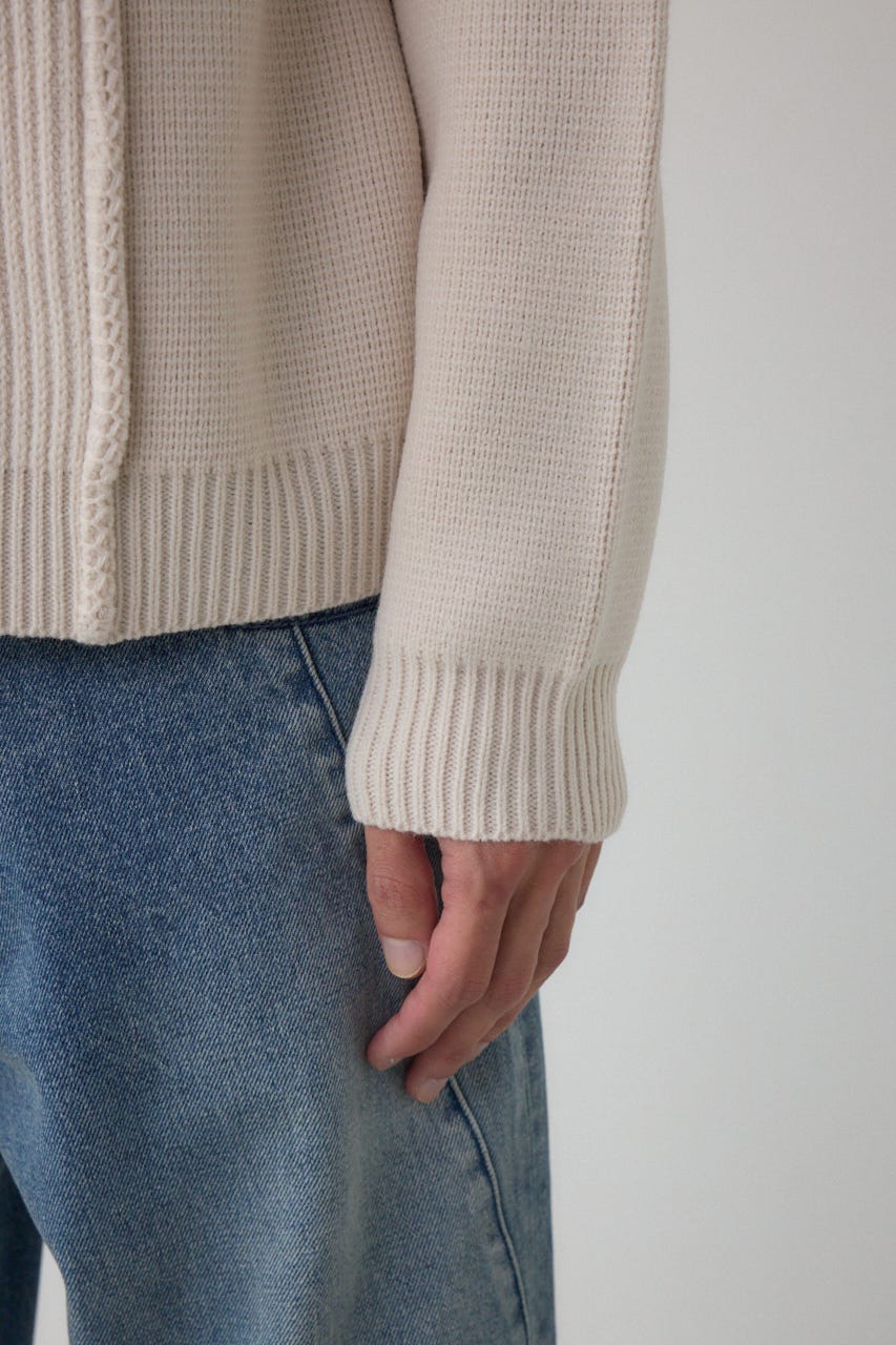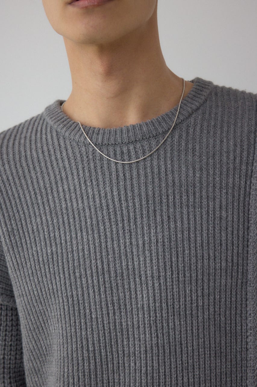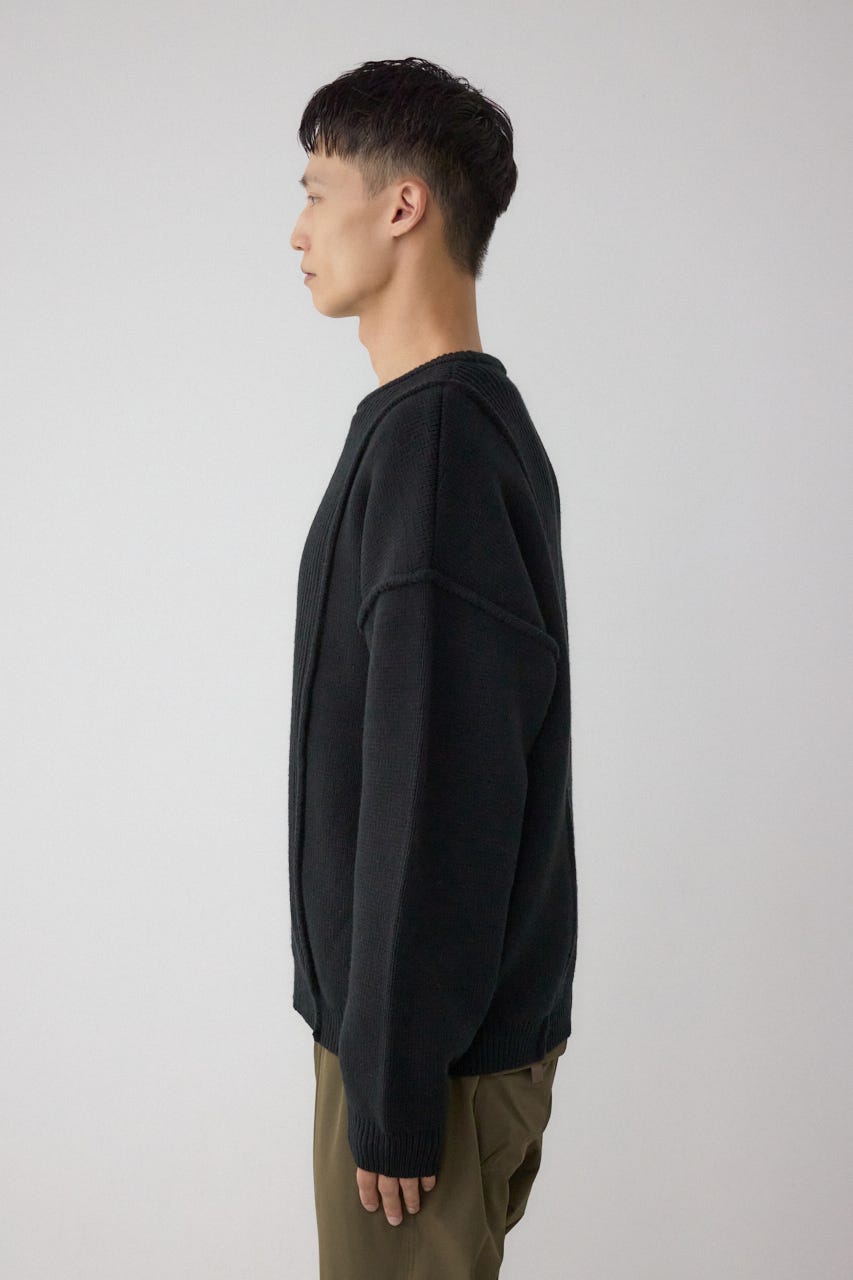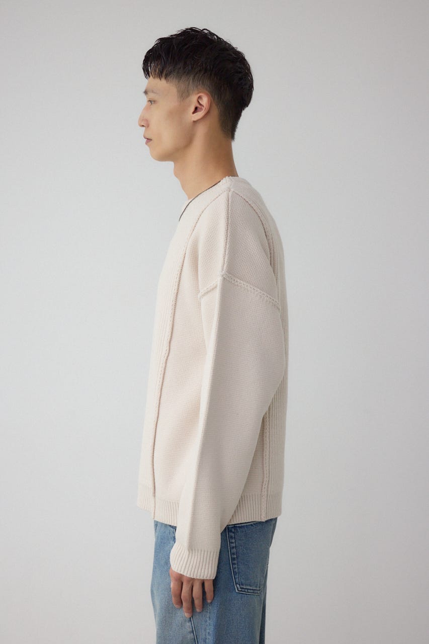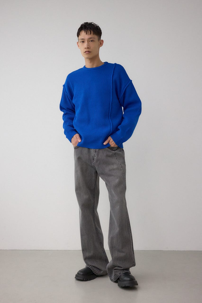 パッチワーク風の編み切り替えで表情豊かな、存在感のあるニットトップス。