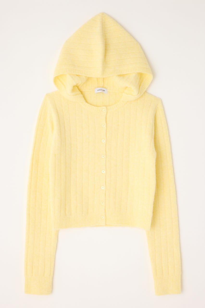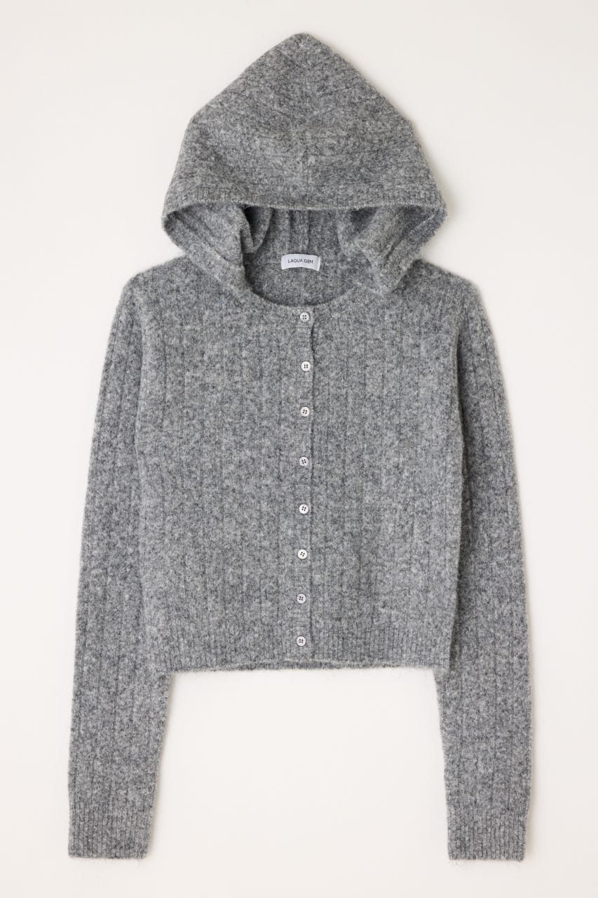 ※お届け時期:2026年1月下旬以降 ■POINT:ふわっとした着心地抜群の糸を使用したフード付きカーディガン。